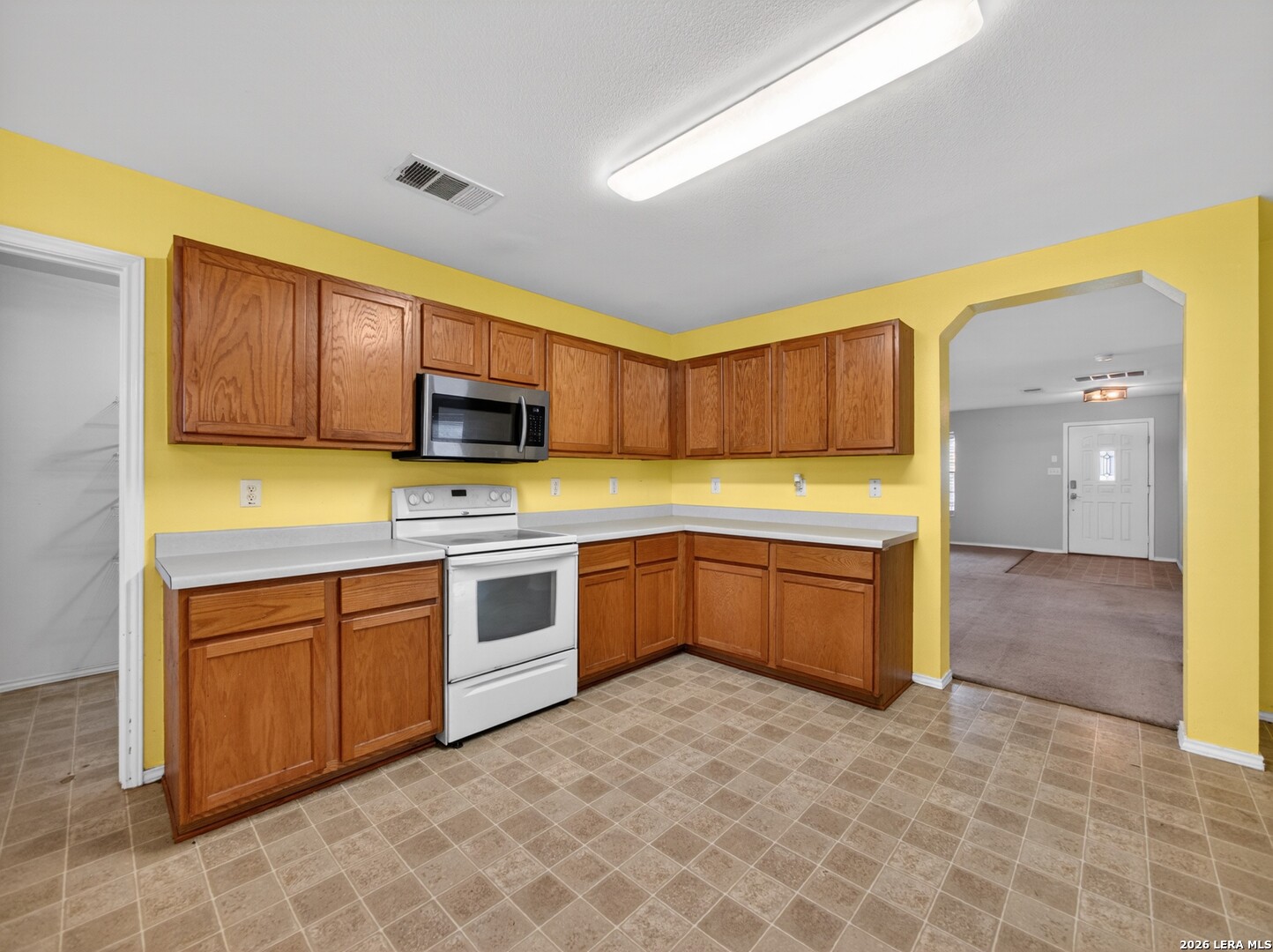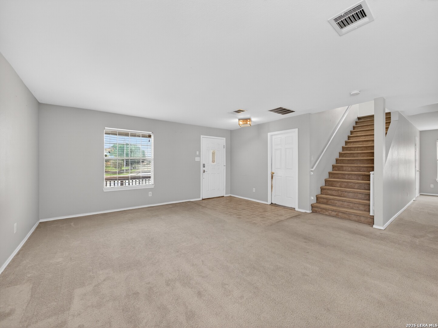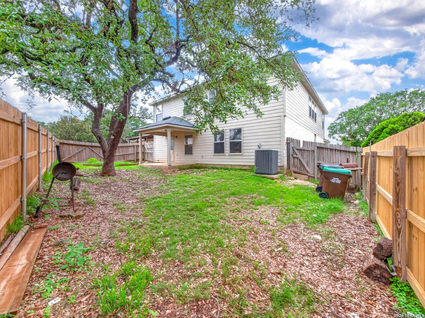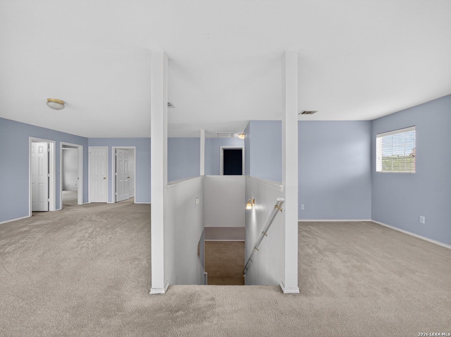 This 3-bedroom, 2.5-bathroom, two-story home offers 3,134 sq ft of functional living space and is situated in a cul-de-sac. The property features a rock-accented lower exterior, with siding throughout the remainder of the home, and a covered front-entry sitting area centered in front of the main window. The main level includes two spacious living areas, providing flexibility for everyday use and entertaining. The front living area offers space for a formal dining setup, while the kitchen includes an eat-in dining area. The kitchen is equipped with an electric stove/oven combination, microwave, and dishwasher. It also features laminate countertops, original light-colored wood cabinetry, and a large walk-in pantry that includes the laundry area. A half bathroom is located off the main living space on the first floor. Upstairs, all three bedrooms are located along with a loft area and an additional office, game room, or bonus space. The primary bedroom includes a tray ceiling with a ceiling fan and a large ensuite bathroom featuring a garden tub, separate walk-in shower, double vanity, and an oversized walk-in closet accessed through the bathroom. Each additional bedroom includes generous closet space, with one offering a sliding-door closet and the other a walk-in closet. The shared upstairs bathroom includes a tub/shower combination. The home includes tile flooring in wet areas, with carpet throughout the remaining living spaces. The carpet is in poor condition and will require full replacement due to visible staining and significant pet-related damage. Additional features include a 2-car garage, covered backyard porch, and fencing on three sides, with two sides recently replaced. Major system updates include a 2023 A/C unit, a 2019 water heater, and a brand-new 50-year roof installed in 2025. And just a few minutes away from Specht Elementary School.
