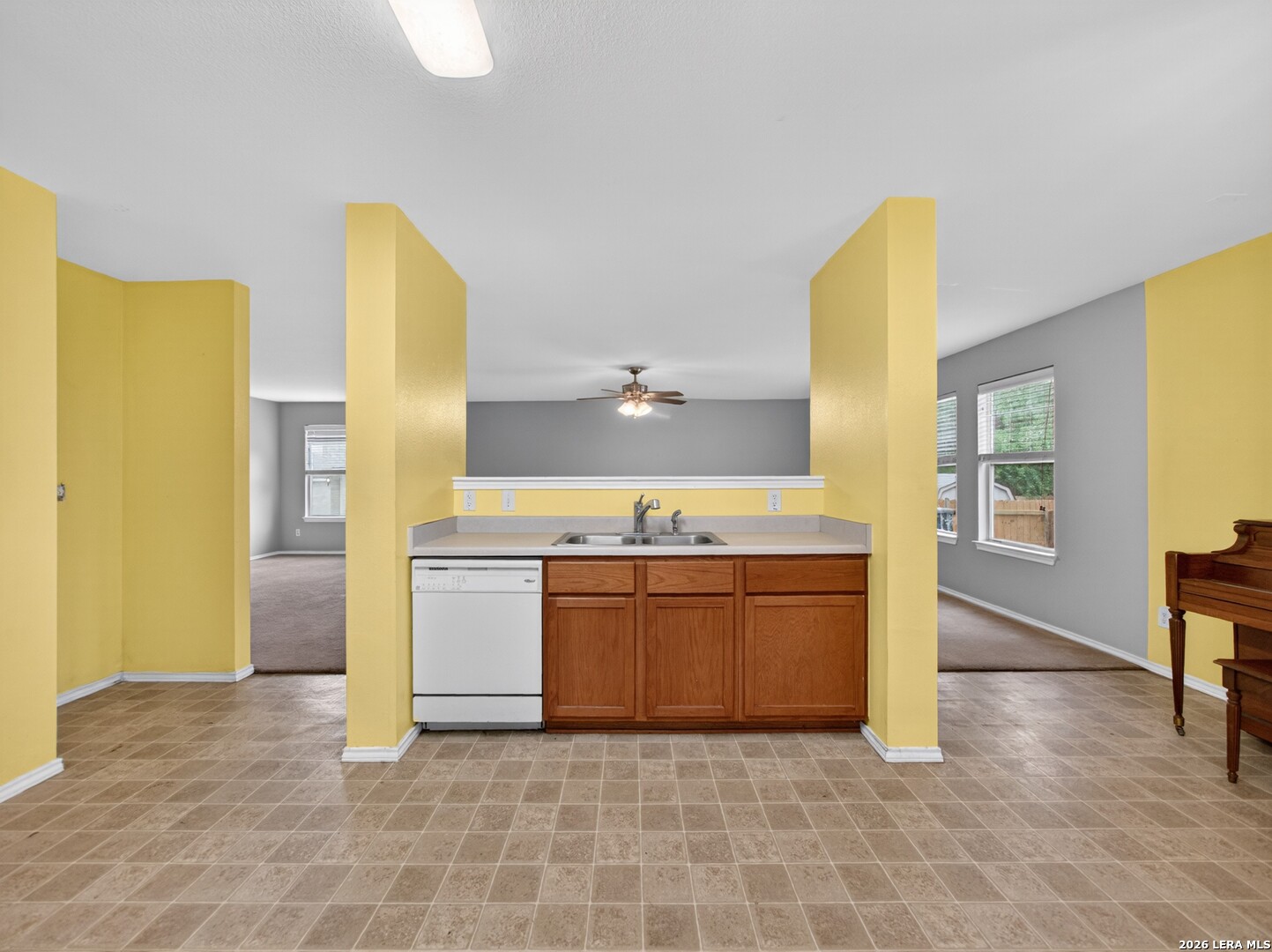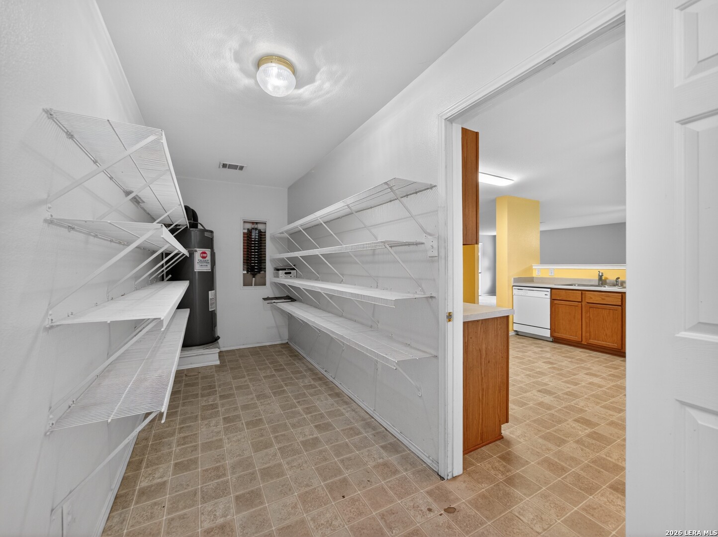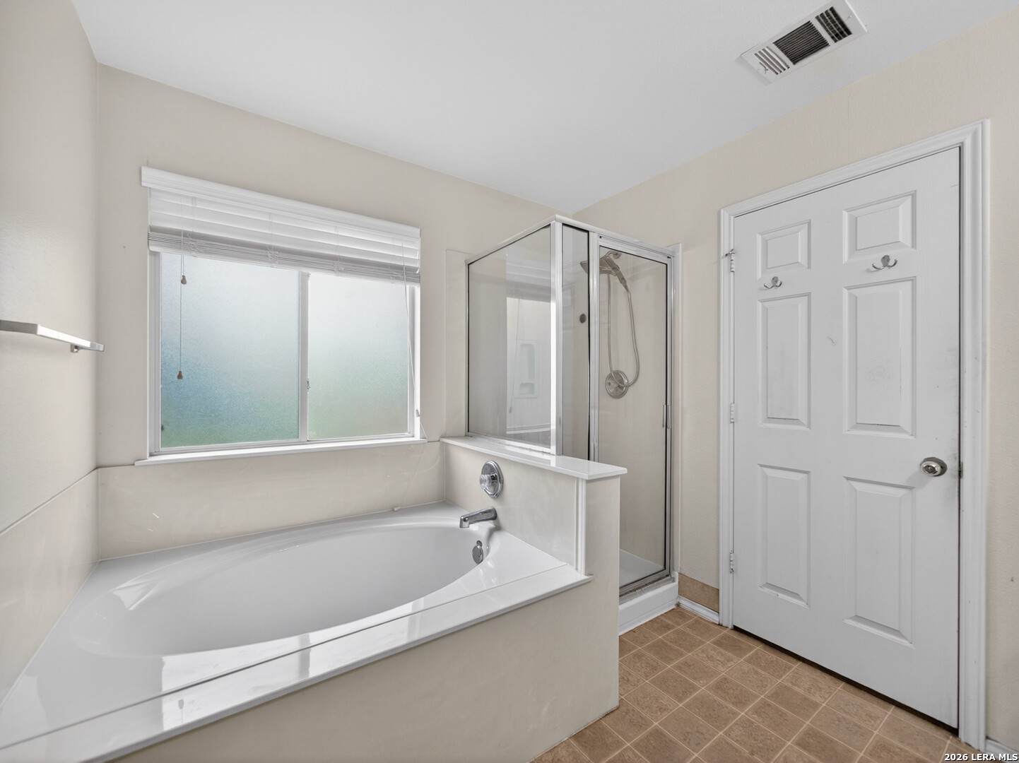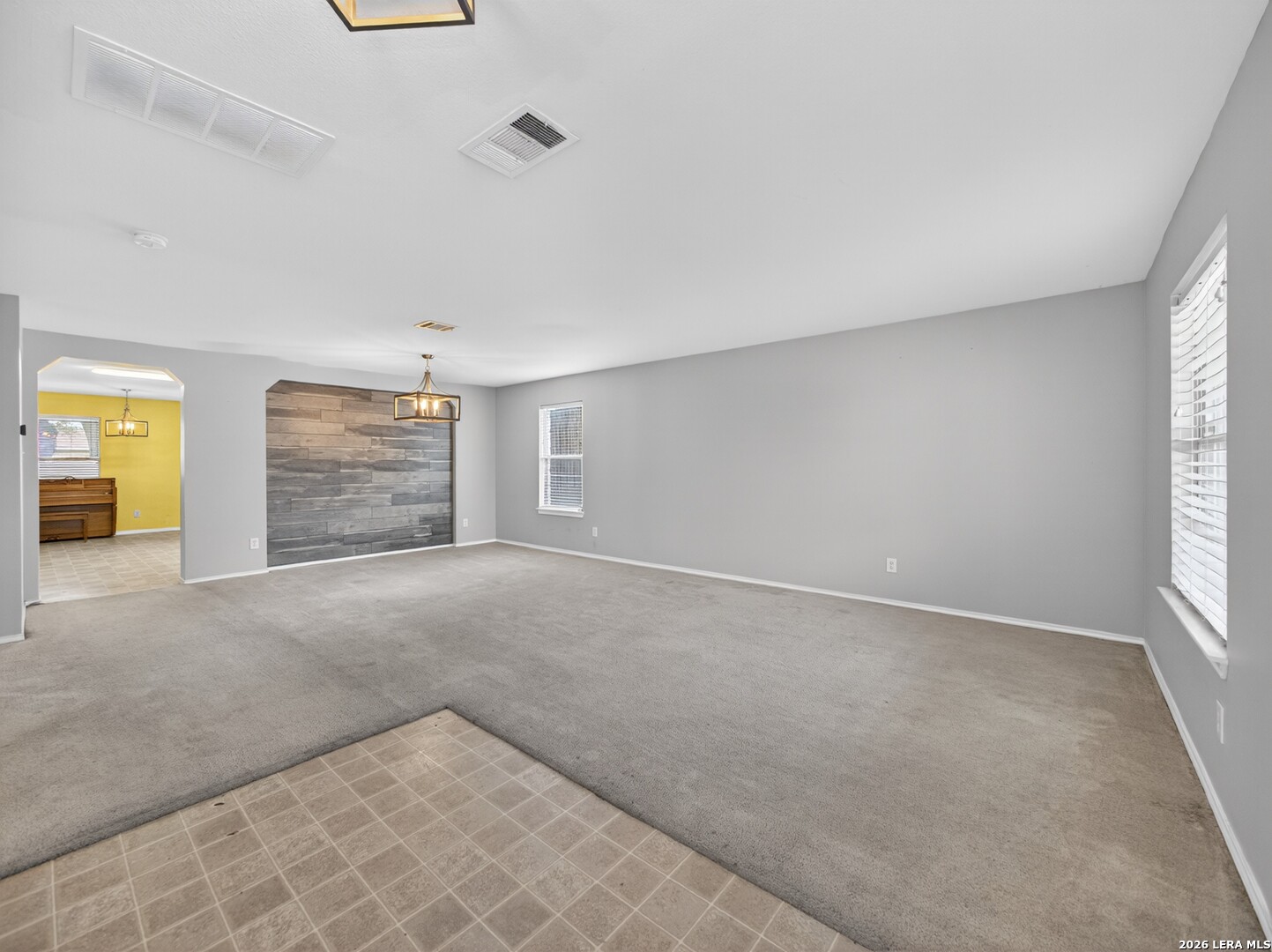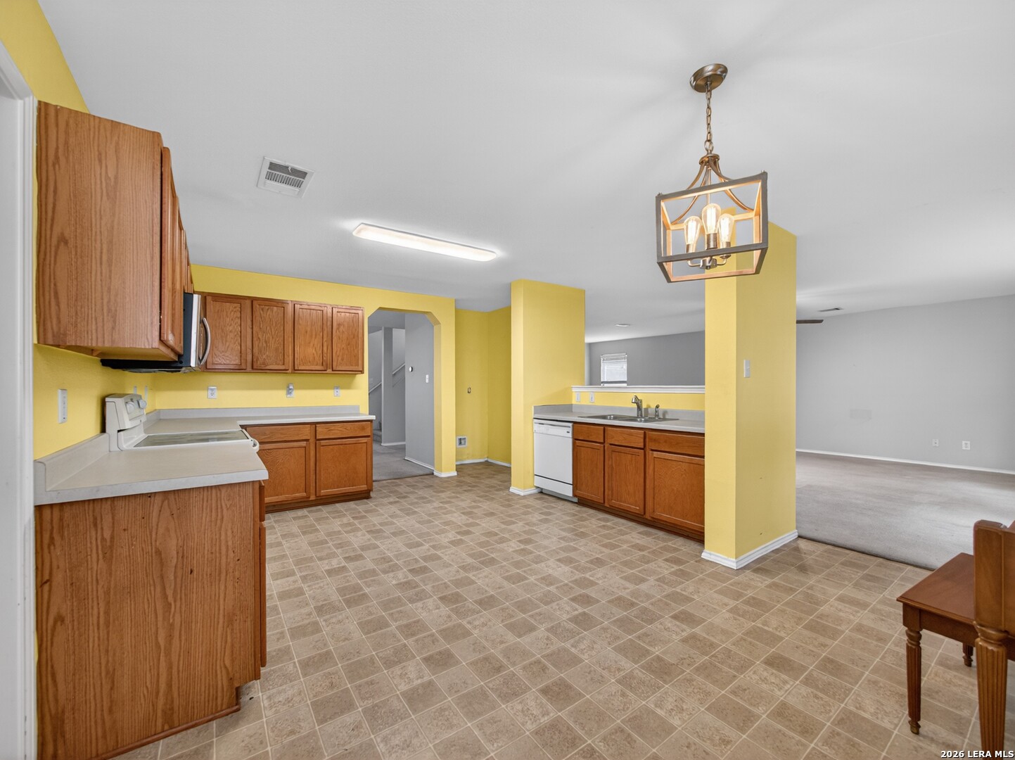 This 3-bedroom, 2.5-bathroom, two-story home offers 3,134 sq ft of functional living space and is situated in a cul-de-sac. The property features a rock-accented lower exterior, with siding throughout the remainder of the home, and a covered front-entry sitting area centered in front of the main window. The main level includes two spacious living areas, providing flexibility for everyday use and entertaining. The front living area offers space for a formal dining setup, while the kitchen includes an eat-in dining area. The kitchen is equipped with an electric stove/oven combination, microwave, and dishwasher. It also features laminate countertops, original light-colored wood cabinetry, and a large walk-in pantry that includes the laundry area. A half bathroom is located off the main living space on the first floor. Upstairs, all three bedrooms are located along with a loft area and an additional office, game room, or bonus space. The primary bedroom includes a tray ceiling with a ceiling fan and a large ensuite bathroom featuring a garden tub, separate walk-in shower, double vanity, and an oversized walk-in closet accessed through the bathroom. Each additional bedroom includes generous closet space, with one offering a sliding-door closet and the other a walk-in closet. The shared upstairs bathroom includes a tub/shower combination. The home includes tile flooring in wet areas, with carpet throughout the remaining living spaces. The carpet is in poor condition and will require full replacement due to visible staining and significant pet-related damage. Additional features include a 2-car garage, covered backyard porch, and fencing on three sides, with two sides recently replaced. Major system updates include a 2023 A/C unit, a 2019 water heater, and a brand-new 50-year roof installed in 2025. And just a few minutes away from Specht Elementary School.