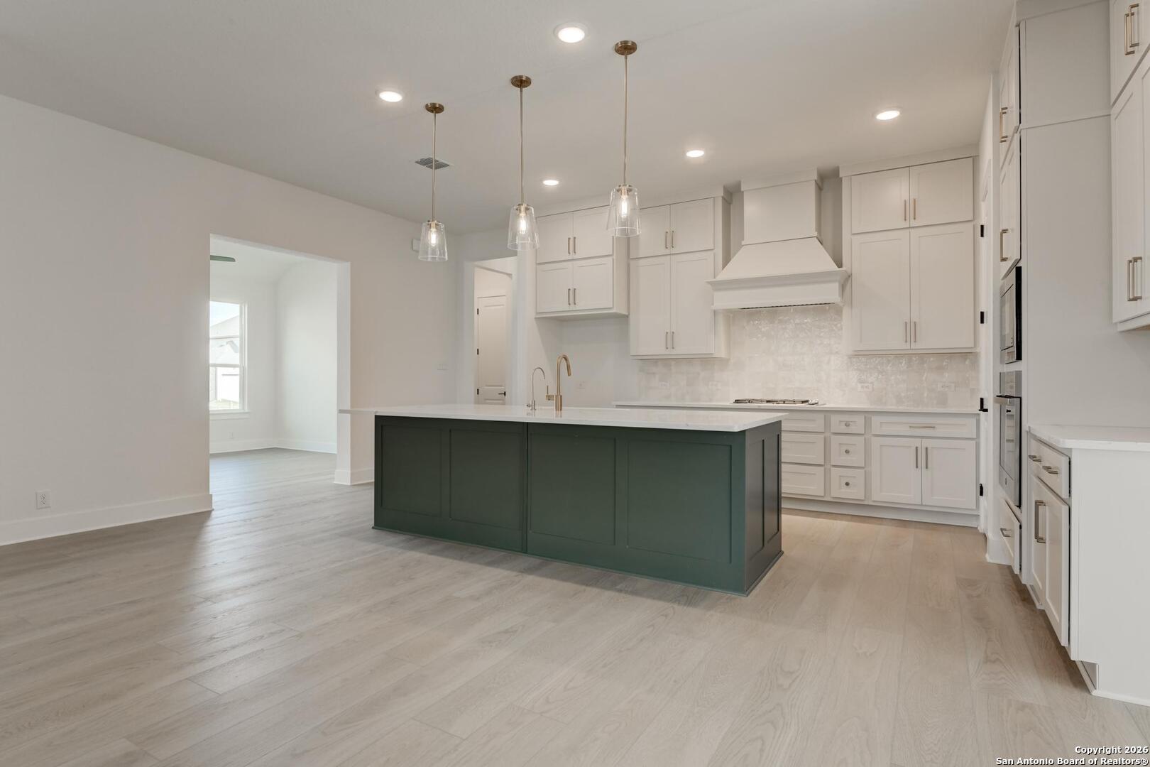Step into the Alexander II, a home designed to bring focus, connection, and relaxation together under one roof. Just off the entry, a private study creates the perfect spot for working from home, managing daily tasks, or enjoying a quiet reading nook away from the main living areas. The entry flows into a stunning gourmet kitchen with a walk-in pantry, upgraded finishes, and a generous center island that naturally draws everyone in. Whether you're hosting friends for a casual dinner or savoring a peaceful morning coffee, the open layout keeps the kitchen, breakfast area, and family room seamlessly connected. Three large windows fill the space with light and offer calming views of the backyard, creating an inviting setting for everyday living. A covered patio just off the living area makes it easy to enjoy time outdoors. The primary suite offers a true retreat with a garden tub, separate vanities, and two walk-in closets that provide both comfort and convenience. With thoughtful design elements throughout and a three-car garage that adds extra storage or workspace, the Alexander II supports your lifestyle with ease. Every space feels intentional, from the welcoming study to the bright communal areas and relaxing private retreat, making this home ideal for both busy weekdays and slow weekends. This home features design selections thoughtfully curated by our professional studio team. Each finish, from flooring and cabinetry to countertops and special touches, is chosen with care to create a cohesive and beautifully balanced look. Guided by timeless design principles and inspired by modern lifestyles, the result is a home that is both stylish and welcoming from the moment you step inside. This home is located in Megan's Landing, a vibrant family-friendly community nestled in the scenic Texas Hill Country. Enjoy quick access to shopping, dining, and entertainment, plus nearby outdoor escapes like the Medina River and Government Canyon State Natural Area. With top-rated Medina Valley ISD schools, Megan's Landing offers the perfect blend of natural beauty, convenience, and community for your family's next chapter.