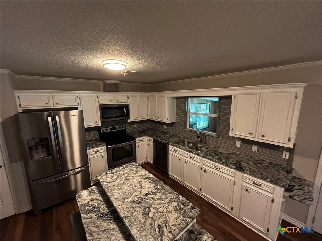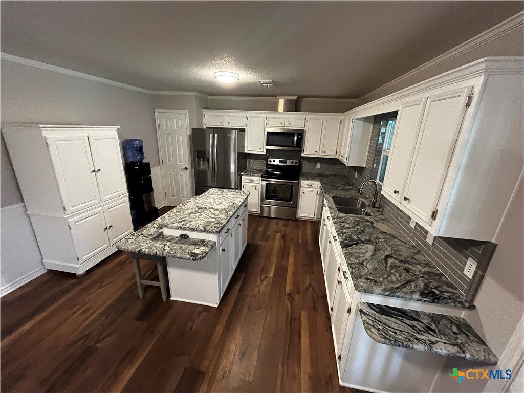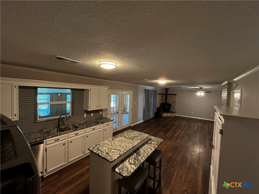 Beautiful 3bd 2 bath home on a large lot in an established quiet neighborhood. Enter the home into a large open floor plan with wood burning stove and an upgraded kitchen accented by granite countertops and glass tile backsplash. Kitchen also has access to double car garage with lots of storage cabinets. The large living area opens into the game or work room which has access to the privately fenced back yard that contains a storage building. Also, the yard stays irrigated with an in-ground sprinkler system. The spacious master bedroom includes a bath with granite features and a walk-in shower. The main full bathroom features the same granite as in the master bath and serves the two additional bedrooms. This home has new laminate flooring throughout and recently replaced 30-year architectural shingle roof. There is a new HVAC (heat/air) system. In addition to all these attributes, water is supplied by a private well for the homes use. A rare find you must see!