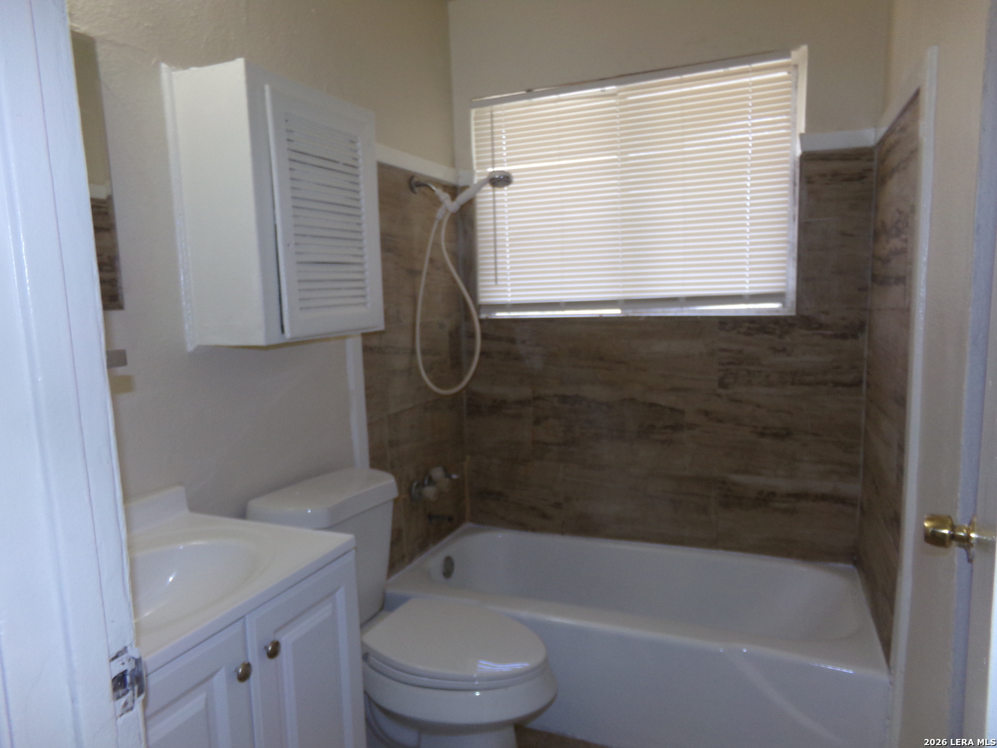 Freshly painted inside and outside. New custom lower kitchen cabinets (to be installed week of March 23, 2026) and counter top. New lavatory and sink. Refinished tub. Home has central heat. Open eat-in kitchen. No carpet vinyl throughout. Covered carport parking. Fenced back yard with storage shed. Gas and electric dryer connections in storage area under carport. Washer connections in bathroom. Convenient to Lackland Air Force Base, shopping, schools and major streets and highways.