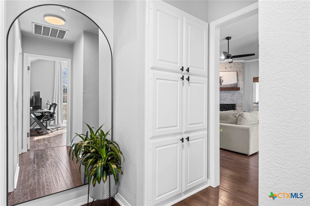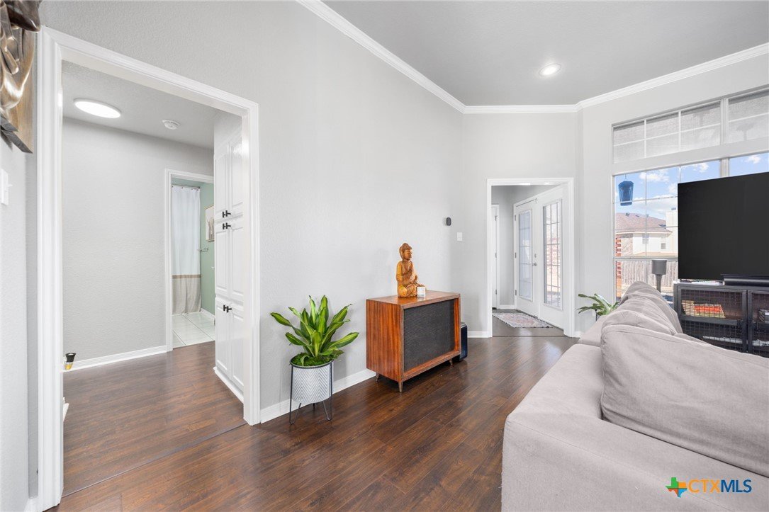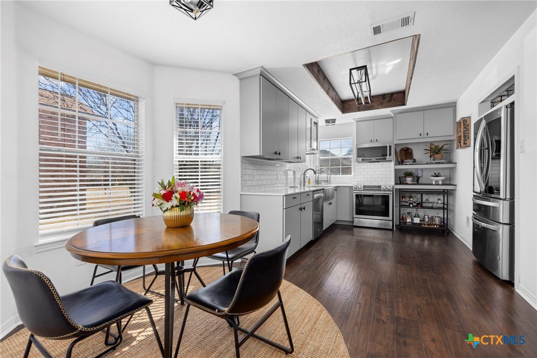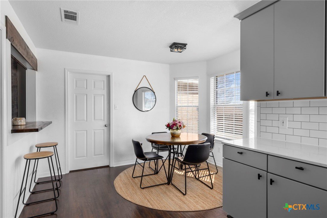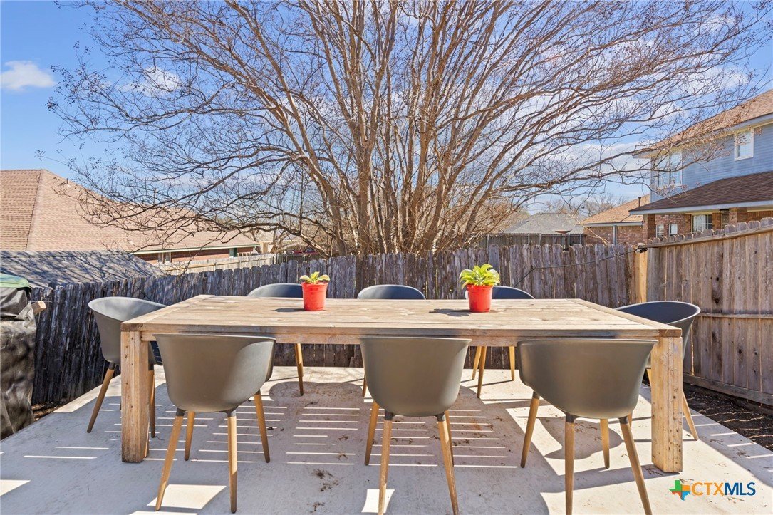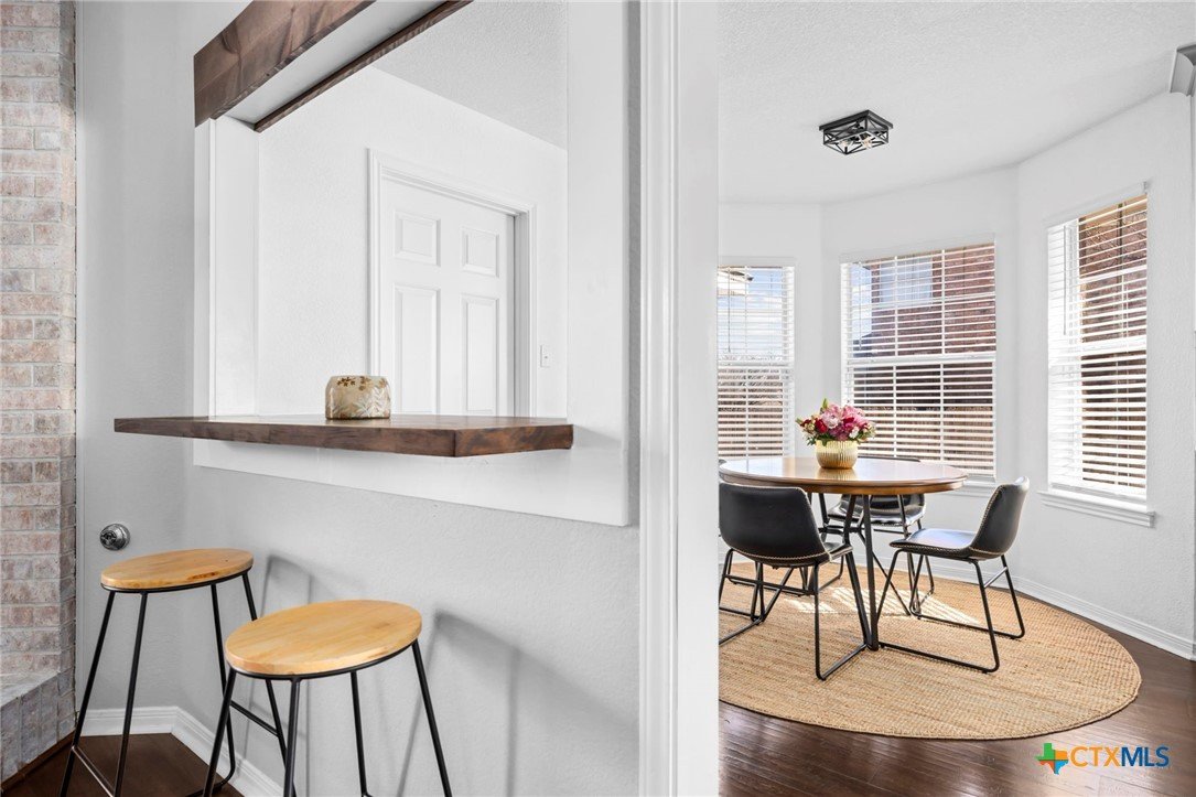 Move-in ready single-story home in Briarwood Estates in Nolanville, TX, located in Killeen ISD with convenient access to Fort Cavazos, Harker Heights, Temple, and Belton. This traditional-style home offers approximately 1,602 sq ft, 3 bedrooms, 2 bathrooms, and flexible living space. The original formal dining room has been converted into an additional bedroom and can function as a 4th bedroom, office, or flex space. The garage is currently used as office space. The garage also features epoxy flooring with lifetime warranty covering stains, chips, cracks, and peeling, and includes a vehicle charging outlet for EV or hybrid charging, while still maintaining garage functionality. Major updates include roof replaced June 2024 (3" hail resistant), brand-new 3900 Series windows (185 mph wind resistance, lifetime glass breakage warranty), and HVAC serviced annually since 2023. Ductwork was cleaned and rehung in May 2025 for improved efficiency. Interior features include waterproof handscraped wood-look laminate flooring and updated lighting and fans (2023–2025). Whole house water system + Kitchen includes alkaline PH drinking water system. Primary bath includes outlets for washer/dryer combo. Original laundry room (currently pantry/coffee bar) remains fully functional. Backflow test completed November 2025. Sprinkler heads replaced front and back. Extended driveway allows boat, trailer, or potential RV parking. Backyard includes outdoor entertaining space. Conveyed items include washer/dryer combo, garage refrigerator, portable garage AC unit, and closet system in first bedroom.