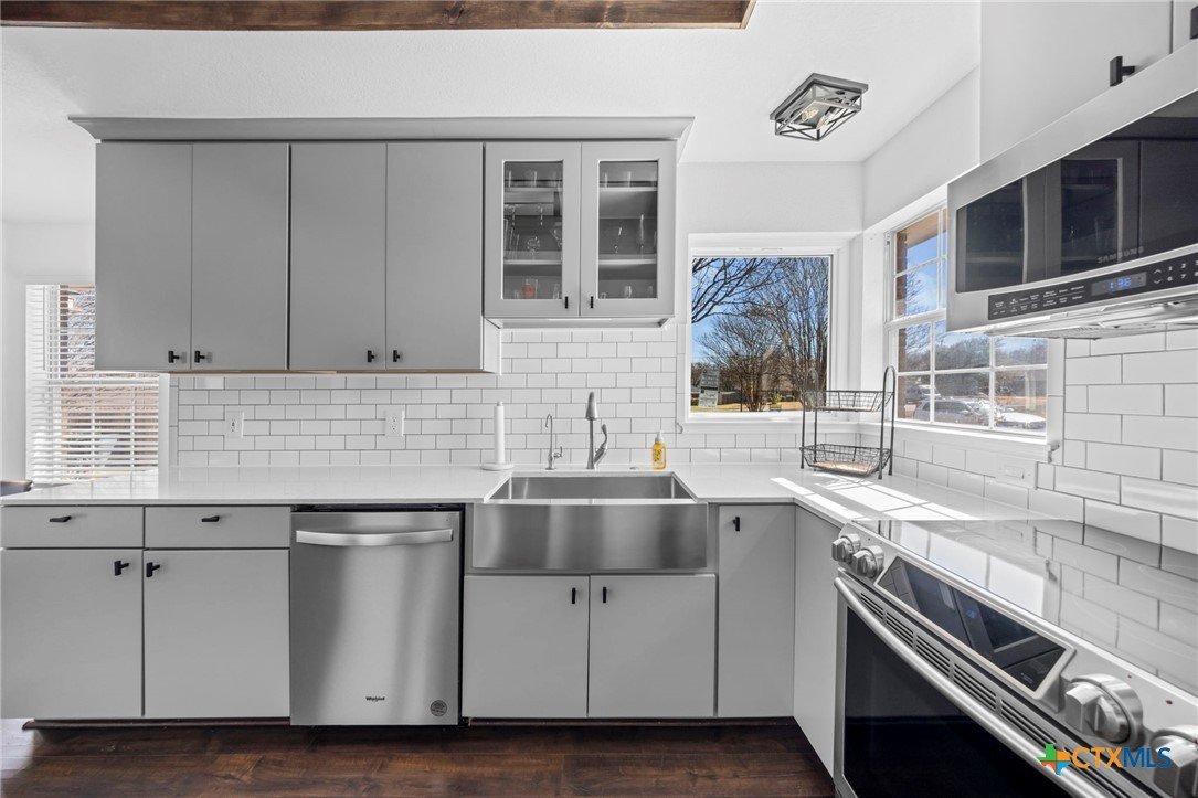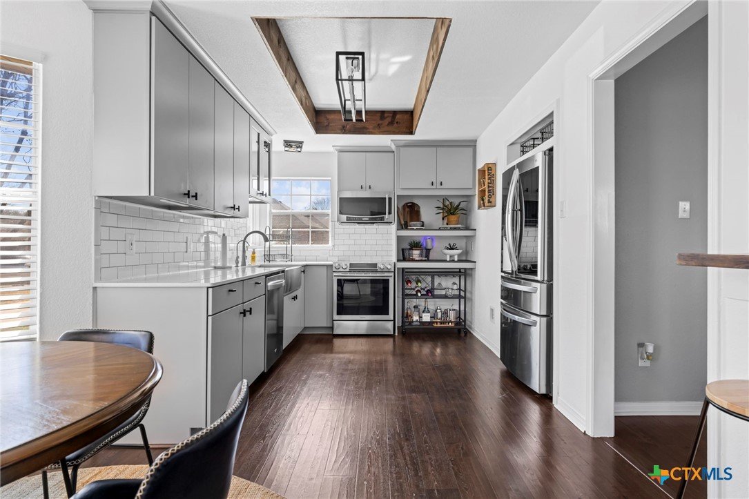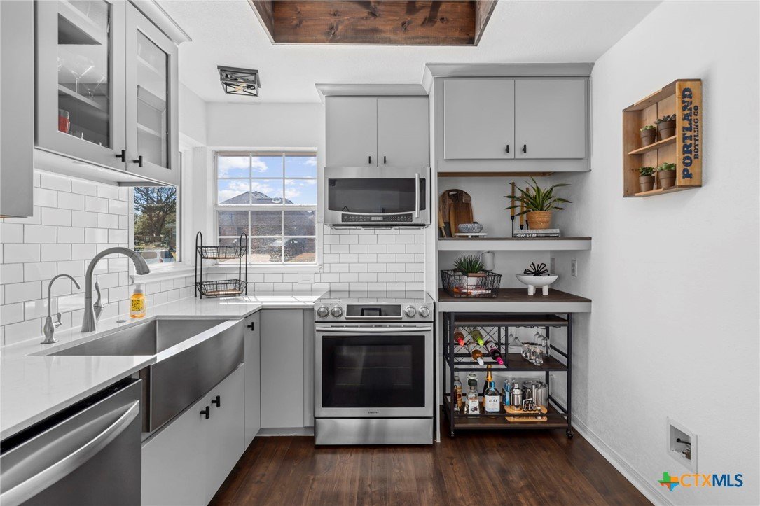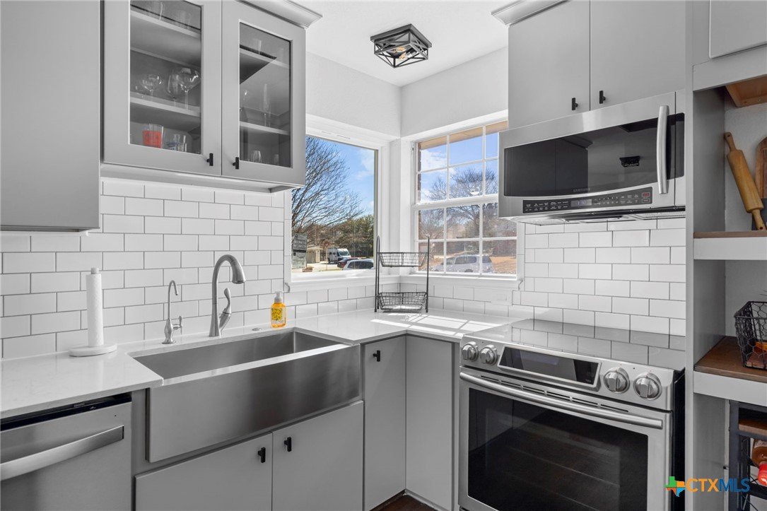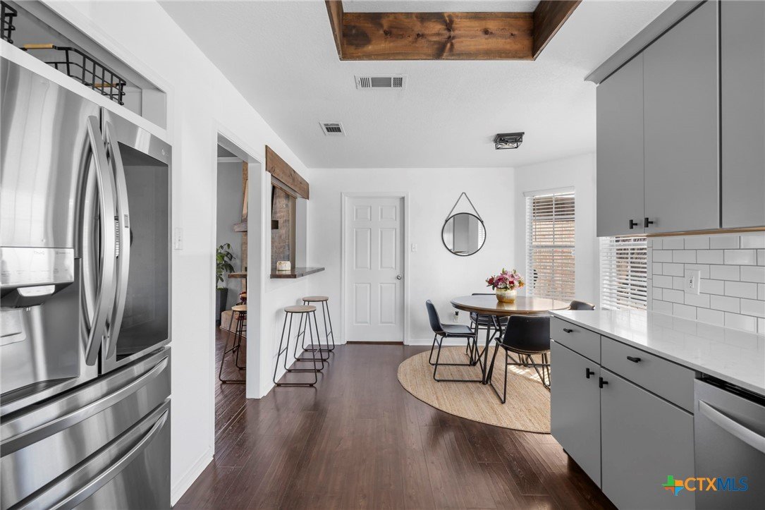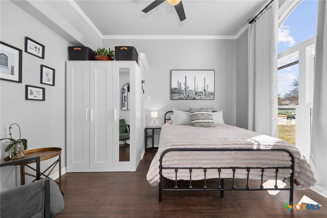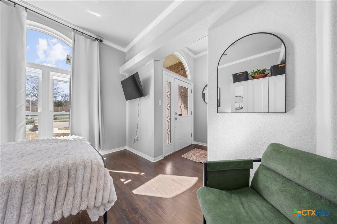 Move-in ready single-story home in Briarwood Estates in Nolanville, TX, located in Killeen ISD with convenient access to Fort Cavazos, Harker Heights, Temple, and Belton. This traditional-style home offers approximately 1,602 sq ft, 3 bedrooms, 2 bathrooms, and flexible living space. The original formal dining room has been converted into an additional bedroom and can function as a 4th bedroom, office, or flex space. The garage is currently used as office space. The garage also features epoxy flooring with lifetime warranty covering stains, chips, cracks, and peeling, and includes a vehicle charging outlet for EV or hybrid charging, while still maintaining garage functionality. Major updates include roof replaced June 2024 (3" hail resistant), brand-new 3900 Series windows (185 mph wind resistance, lifetime glass breakage warranty), and HVAC serviced annually since 2023. Ductwork was cleaned and rehung in May 2025 for improved efficiency. Interior features include waterproof handscraped wood-look laminate flooring and updated lighting and fans (2023–2025). Whole house water system + Kitchen includes alkaline PH drinking water system. Primary bath includes outlets for washer/dryer combo. Original laundry room (currently pantry/coffee bar) remains fully functional. Backflow test completed November 2025. Sprinkler heads replaced front and back. Extended driveway allows boat, trailer, or potential RV parking. Backyard includes outdoor entertaining space. Conveyed items include washer/dryer combo, garage refrigerator, portable garage AC unit, and closet system in first bedroom.