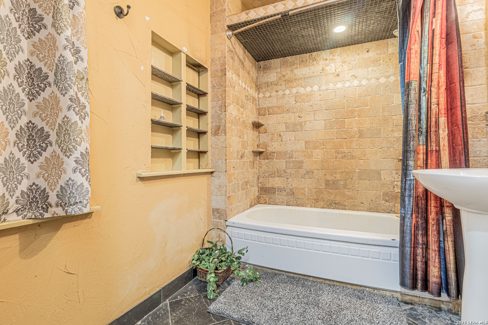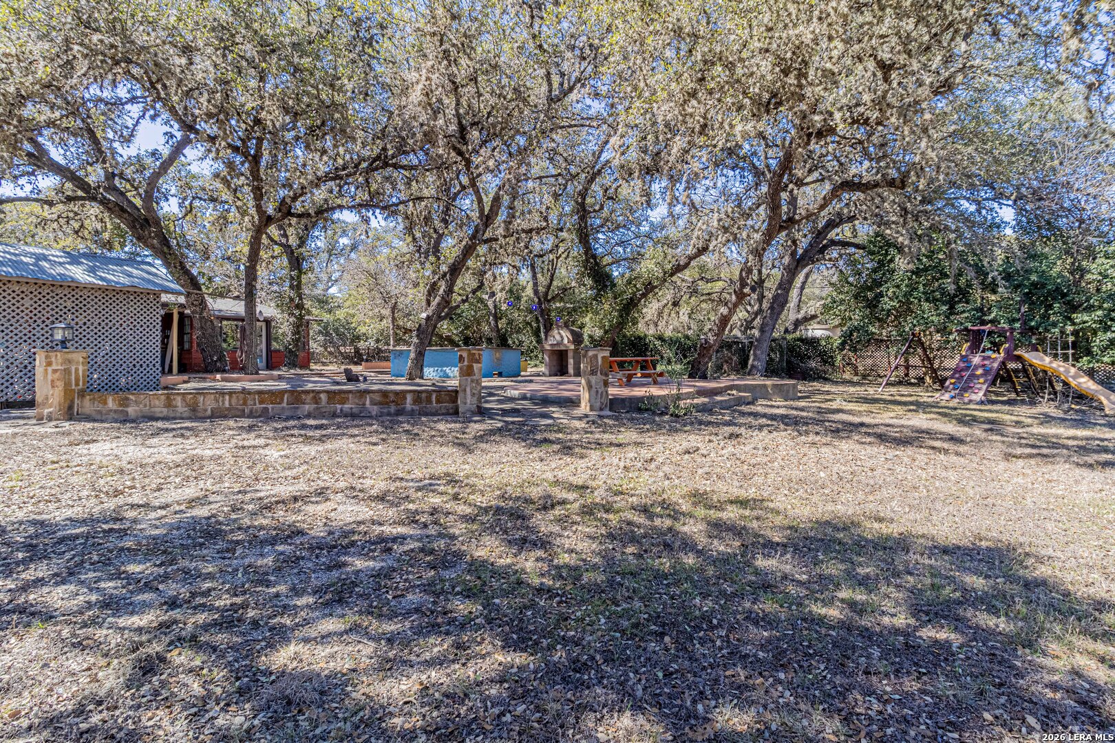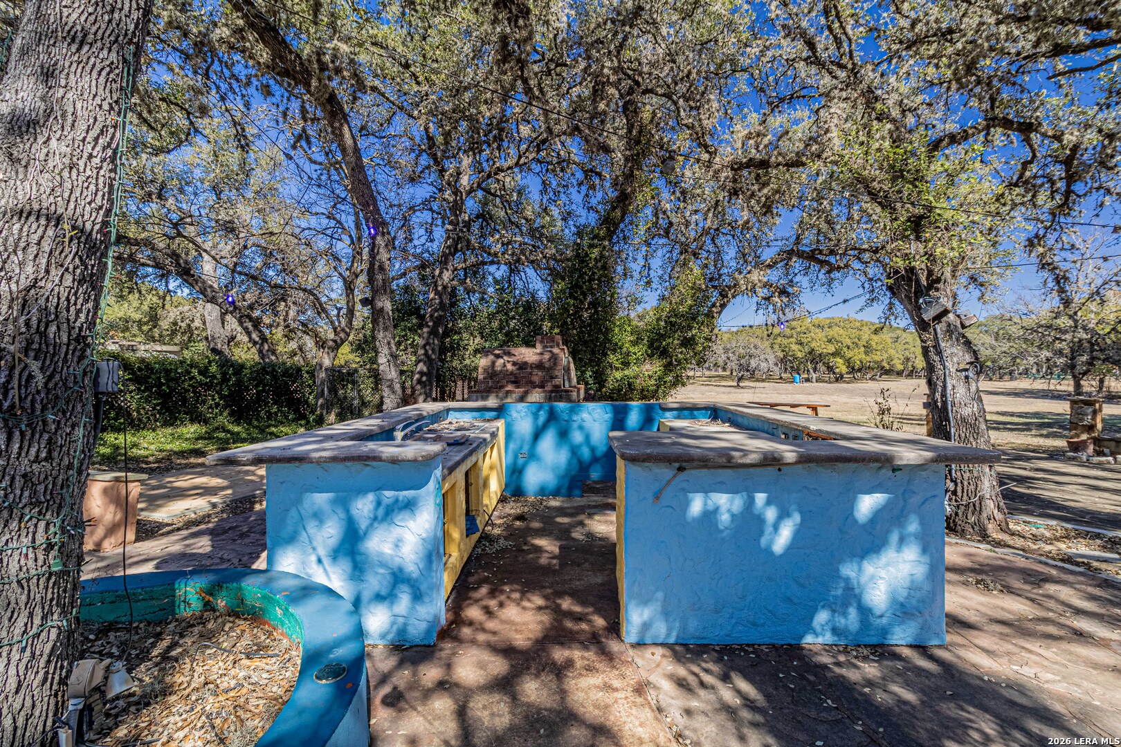 Tucked away on 2.26 tree-covered acres in the heart of Old Town Helotes, this one-of-a-kind property offers space, privacy, and authentic Hill Country character just minutes from local favorites like John T. Floore Country Store, The Gardens at Old Town Helotes, and Chaparral Restaurant. The two-bedroom, one-bath home is full of charm, featuring unique architectural details, warm textures, and inviting living spaces anchored by a distinctive stone fireplace. The kitchen showcases rustic finishes and opens to natural light, blending comfort with personality. Step outside and the property truly comes to life. Mature oaks canopy the land, creating a peaceful setting where deer frequently roam. Enjoy evenings entertaining at the outdoor bar complete with stove and BBQ pit, or relax beneath the trees on the expansive patio areas. A separate cabin offers additional flexibility for guests, a studio, or a private retreat. With over two acres of usable land, privacy, and unbeatable proximity to Old Town Helotes entertainment, this property offers the rare combination of country living with city convenience. A unique opportunity to own acreage, charm, and lifestyle in one of Helotes' most desirable areas.