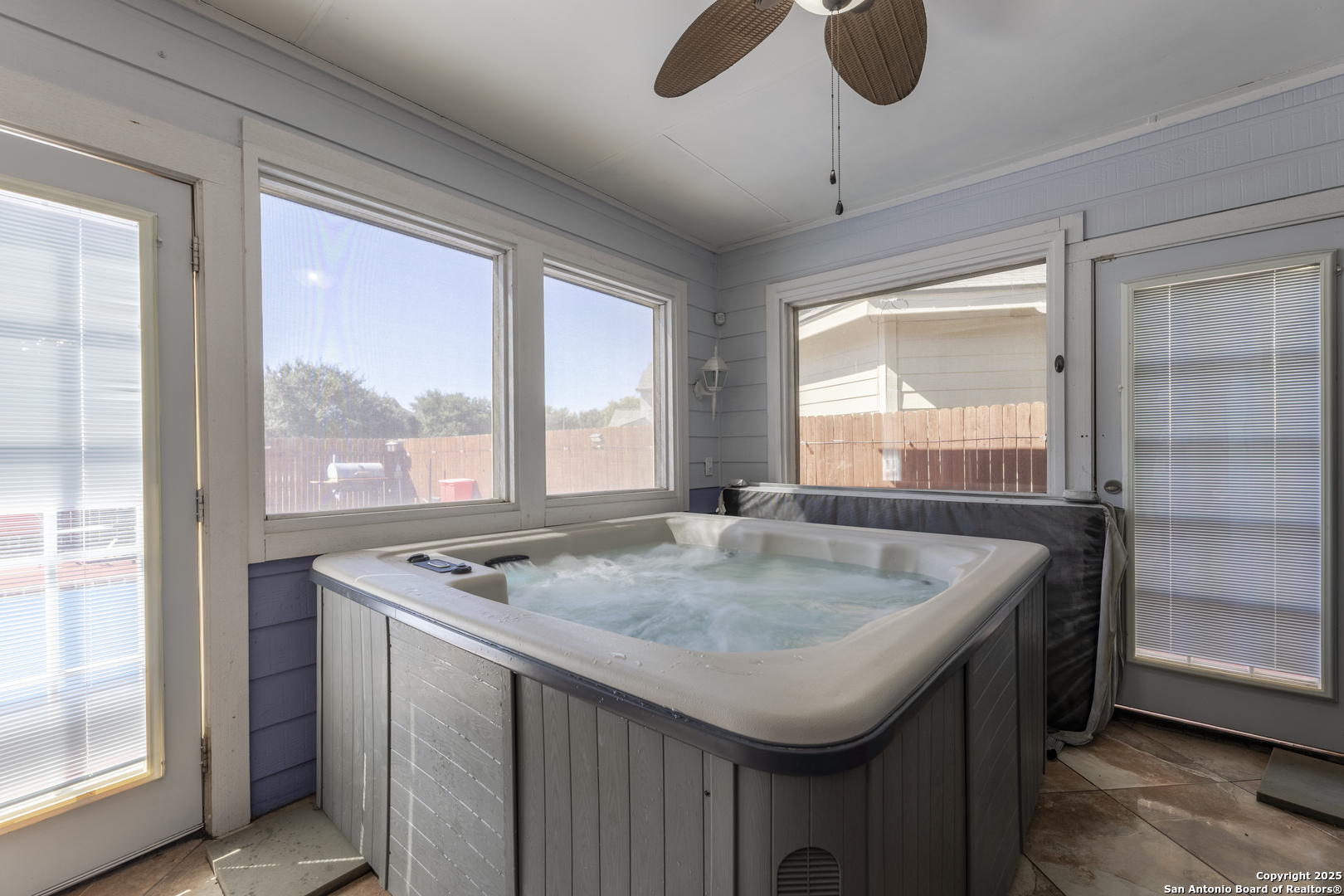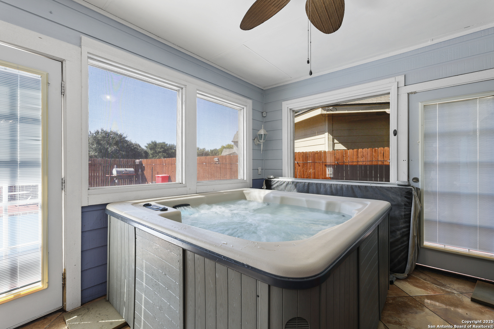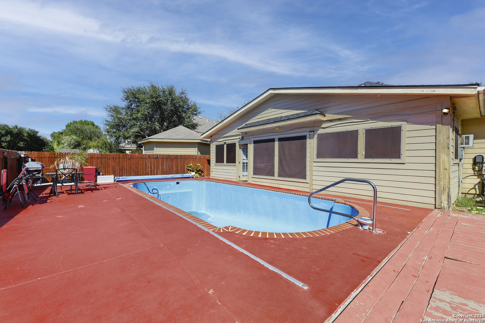 Enjoy the ultimate backyard oasis in this beautiful 3-bedroom, 2-bath home located in the highly desired Enclave at Westover Hills community! This open-concept layout features a spacious living area, breakfast bar kitchen, and a dedicated office/flex space - perfect for working from home. The primary suite offers comfort and privacy with its own full bath. Step outside to your personal retreat! Relax in the sparkling in-ground pool, unwind in the hot tub, and entertain in style with a built-in outdoor kitchen and covered patio - ideal for year-round enjoyment. Conveniently located on San Antonio's West Side near shopping, dining, Lackland AFB, and major employers including SeaWorld and Westover Hills business district. Your perfect lifestyle upgrade awaits!