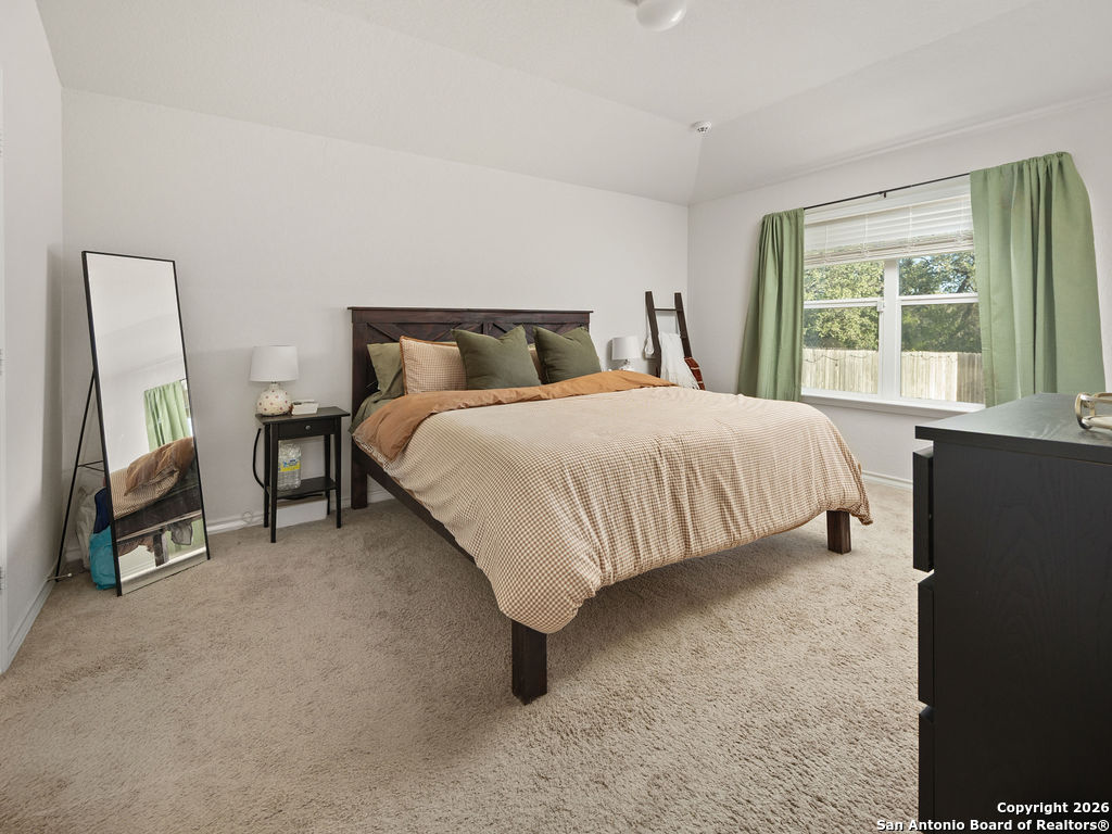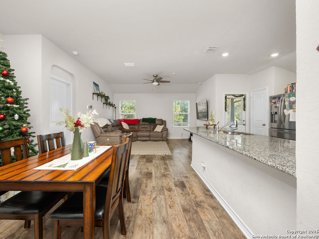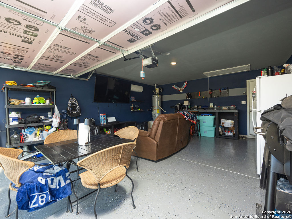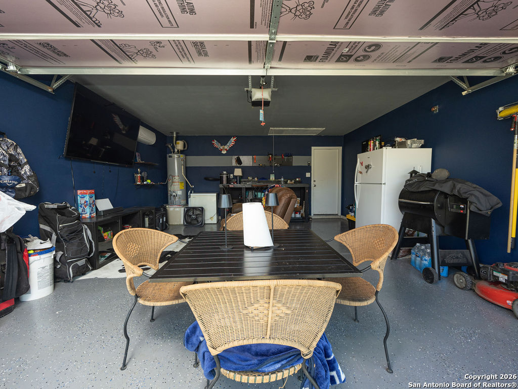 Assumable rate, Paid off solar panels at closing, and a garage that doubles as a man cave, this is not your average DR Horton home. What you'll also appreciate is the lack of rear neighbors as it backs into a green belt. The garage was retrofitted as a secondary entertaining space offering epoxy flooring, insulated garage door, and a mini split for our hot summers. This home offers 3 bedrooms, 2 bathrooms, a family room, and dedicated area for a dining room table. Though there are many homes in red bird ranch, this property is on the section offering the lower tax rate at 1.836516. This property offers both a tub and shower option in the primary restroom.