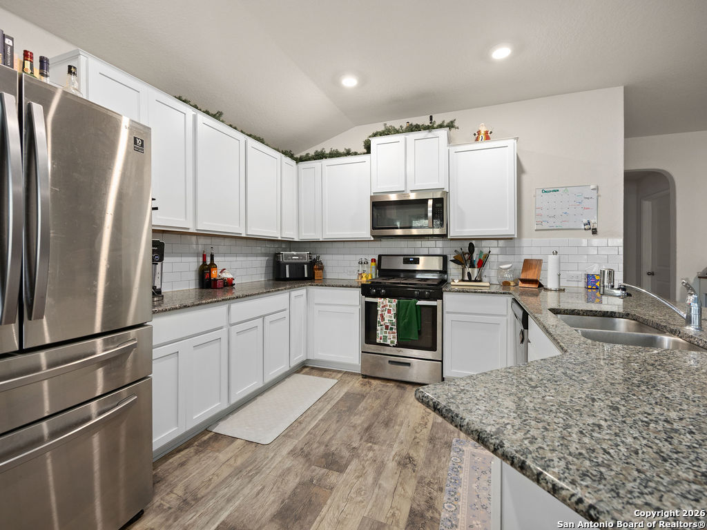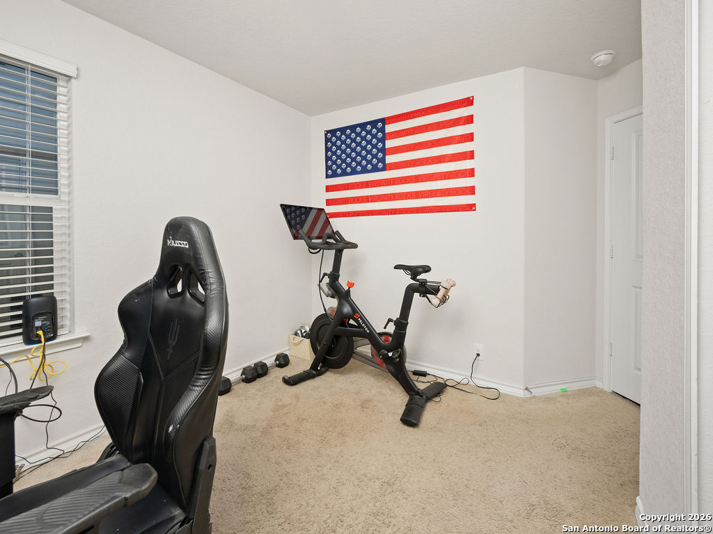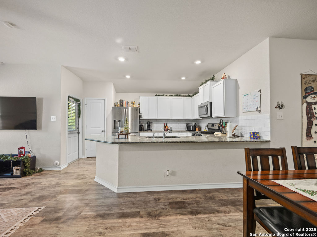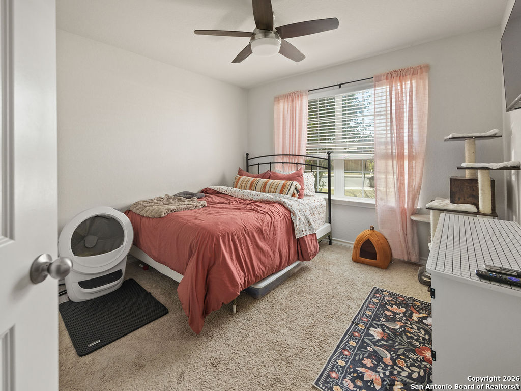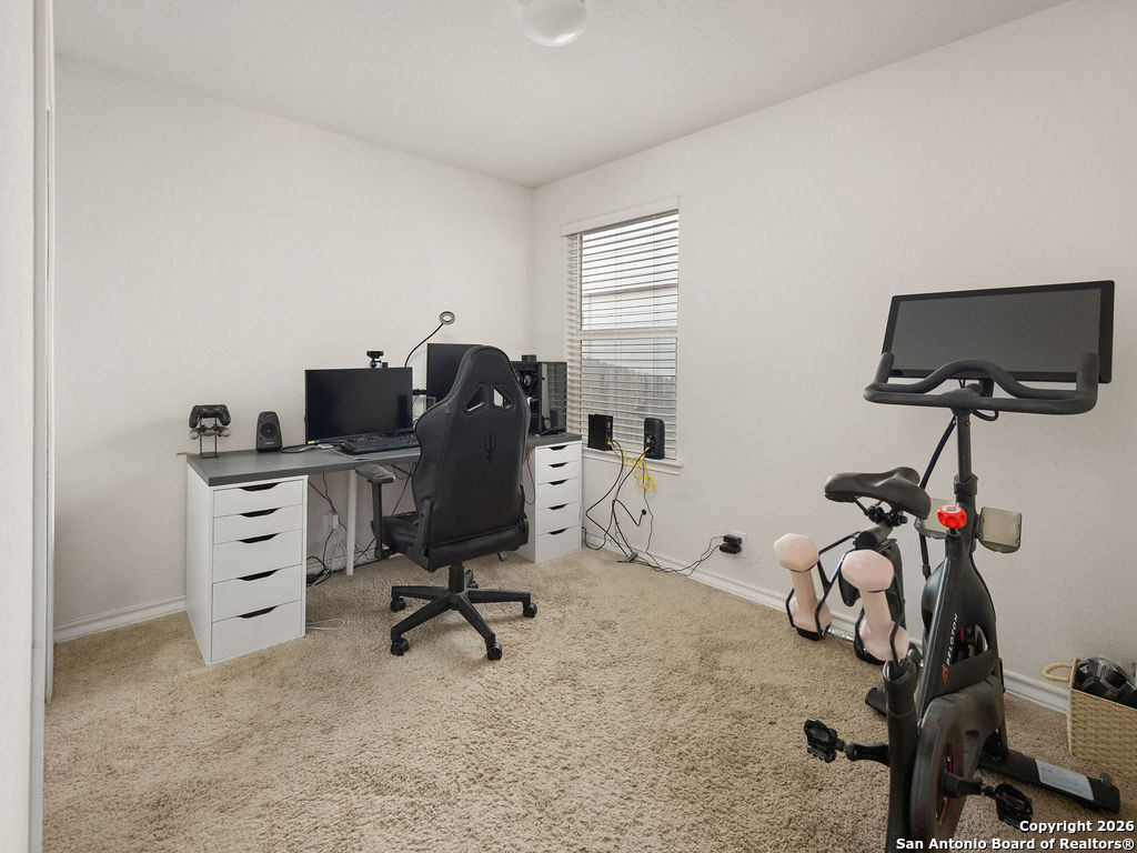 Assumable rate, Paid off solar panels at closing, and a garage that doubles as a man cave, this is not your average DR Horton home. What you'll also appreciate is the lack of rear neighbors as it backs into a green belt. The garage was retrofitted as a secondary entertaining space offering epoxy flooring, insulated garage door, and a mini split for our hot summers. This home offers 3 bedrooms, 2 bathrooms, a family room, and dedicated area for a dining room table. Though there are many homes in red bird ranch, this property is on the section offering the lower tax rate at 1.836516. This property offers both a tub and shower option in the primary restroom.