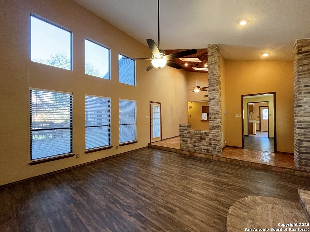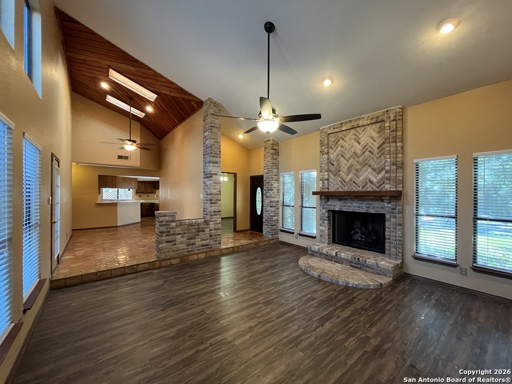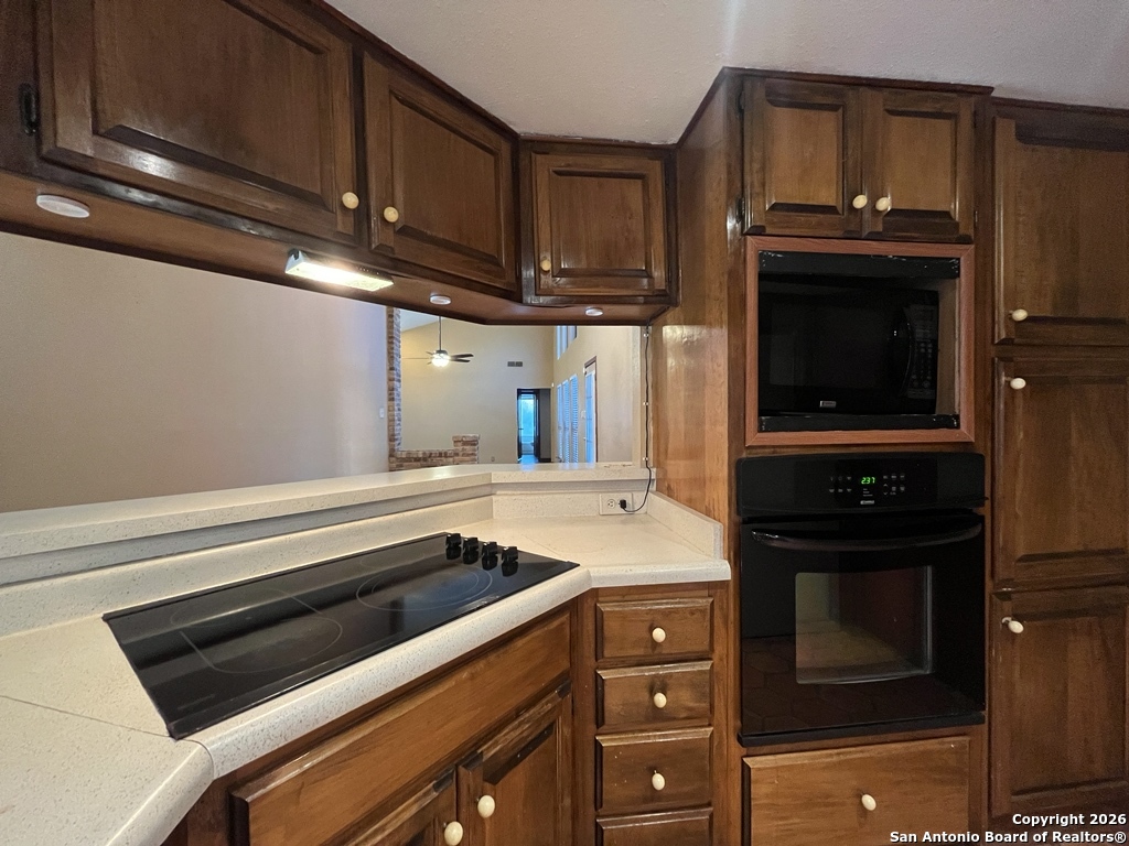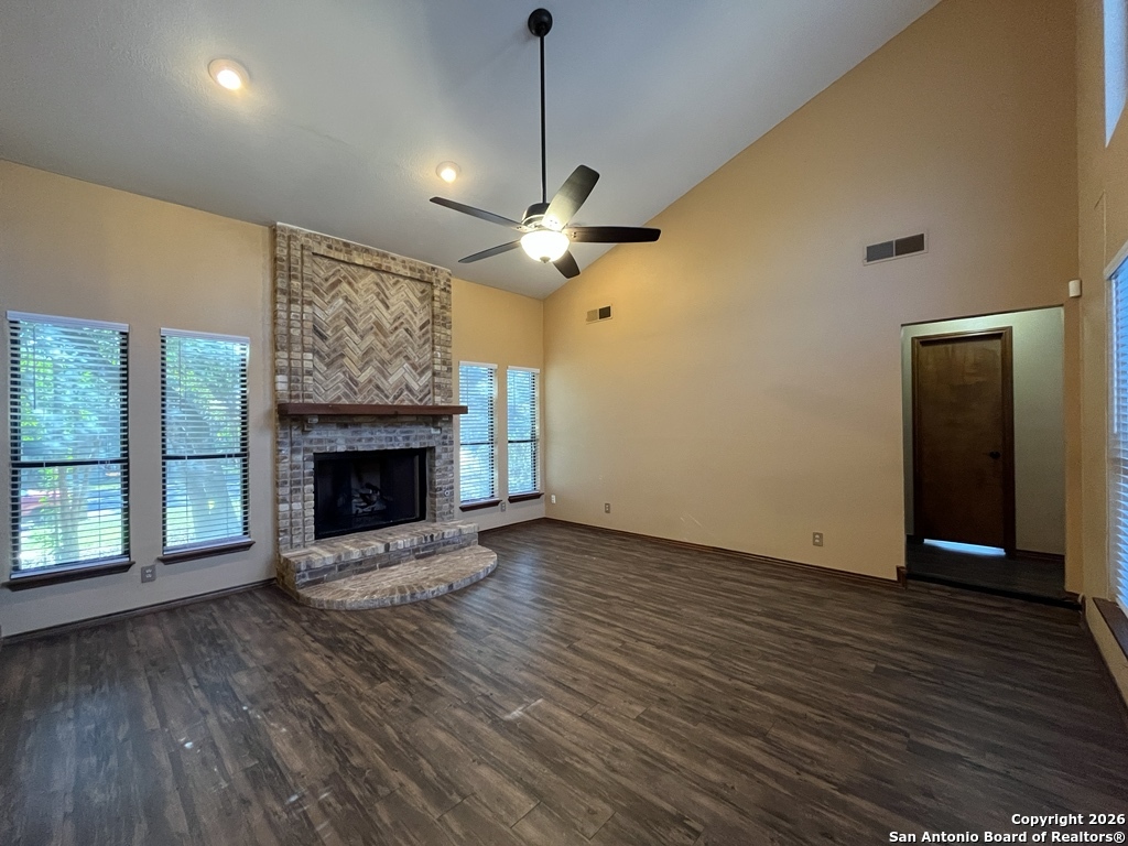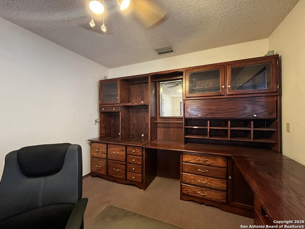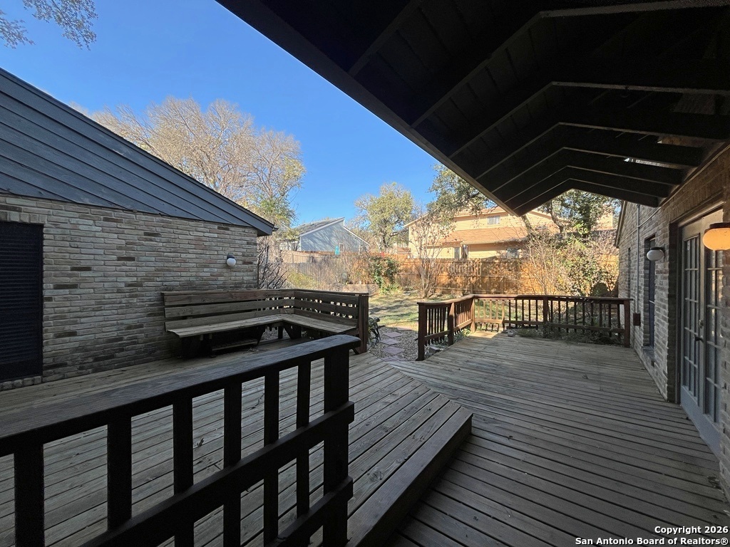 This custom-built 4-bedroom, 2.5-bath home sits on a spacious corner lot shaded by mature oak tree offers a thoughtful layout designed for comfort, privacy, and flexibility. A standout feature is the separate studio/office located just off the garage, providing excellent separation from the main living space. The office includes a built-in desk, generous cabinet and storage space, a window/wall unit, and a private exterior entrance ideal for focused work or creative use. Inside, the home welcomes you with a sunken living room featuring luxury vinyl plank flooring, a striking brick fireplace, skylights, and abundant natural light from the backyard. Vaulted ceilings enhance the open feel, while a mix of carpet, ceramic tile, Saltillo tile, and vinyl flooring adds warmth and character throughout. Two living areas and two eating areas offer versatility for daily living and entertaining. The kitchen is both functional and inviting, showcasing Saltillo tile flooring, a wood-accent ceiling, double breakfast bars, an eat-in kitchen space, and ample counter and cabinet storage. The full appliance package includes a built-in oven and microwave, glass cooktop, dishwasher, and refrigerator. The kitchen sink overlooks a charming garden and vine-covered side patio. Two bedrooms and a full bath are located off the living room, while a third bedroom, half bath, and the primary bedroom are tucked down a private hallway. The primary bedroom features vaulted ceilings and French doors that open to the covered back patio and yard. The ensuite bath includes a double vanity with a powder desk area, a large Roman tub/shower accented with beautiful vintage tile, and a walk-in closet with built-in shelving. Additional highlights include a laundry room near the garage with washer and dryer hookups, a water softener, carbon monoxide detector, HVAC with programmable thermostat, and a spacious two-car garage with door opener. The backyard is designed for relaxation with a covered patio, deck, mature trees, privacy fence, and gutters. Residents also enjoy access to exceptional community amenities nearby, including a pool, kiddie pool, tennis and basketball courts, playground, picnic areas, pavilion, and barbecue area. Conveniently located near shopping and recreation, this inviting home offers a balanced blend of space, comfort, and lifestyle convenience. "*Our award winning Resident Benefits Package (RBP) required program includes Liability Insurance, Pest Control, Monthly Air Filter Delivery, Move-in Concierge (utilities/cable/internet), Credit Building, Resident Rewards, Identity Fraud Protection and more for only $65/mo. *If you provide your own insurance policy, the RBP cost will be reduced. Optional Premium Upgrades Available as well, More details in application. *PET APPS $30 with credit card/debit payment per profile or $25 by ACH per profile. High-Speed Internet Connectivity Made Simple: This property Now includes Group Rate 1Gig Internet (GRI) for just $69.50 per month - providing fast, reliable service at a low flat rate. With GRI, residents enjoy: 1 Gig high-speed internet No data caps All required equipment included Ongoing technical support. Premium amenity for your home, providing seamless connectivity. no surprise equipment fees, and no long-term contracts to manage. All information in this marketing material is deemed reliable but is not guaranteed. Prospective tenants are advised to independently verify all information, including property features, availability, and lease terms, to their satisfaction. *some marketing photos may be virtually staged images*"