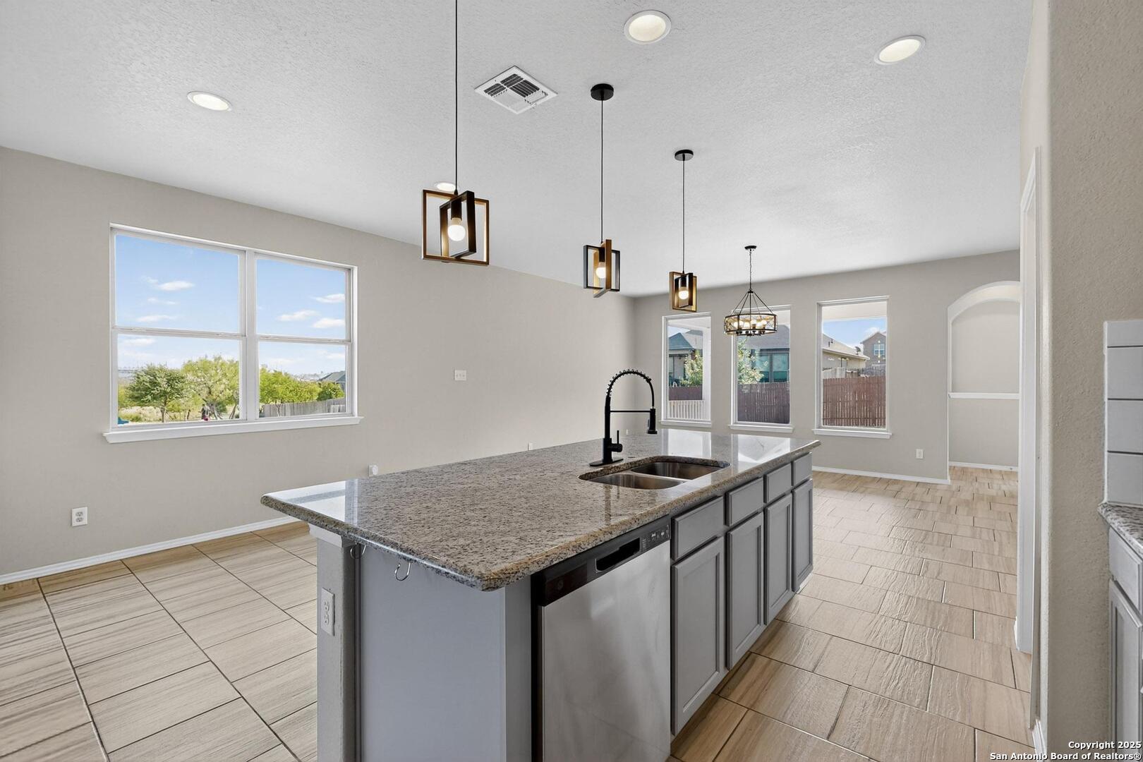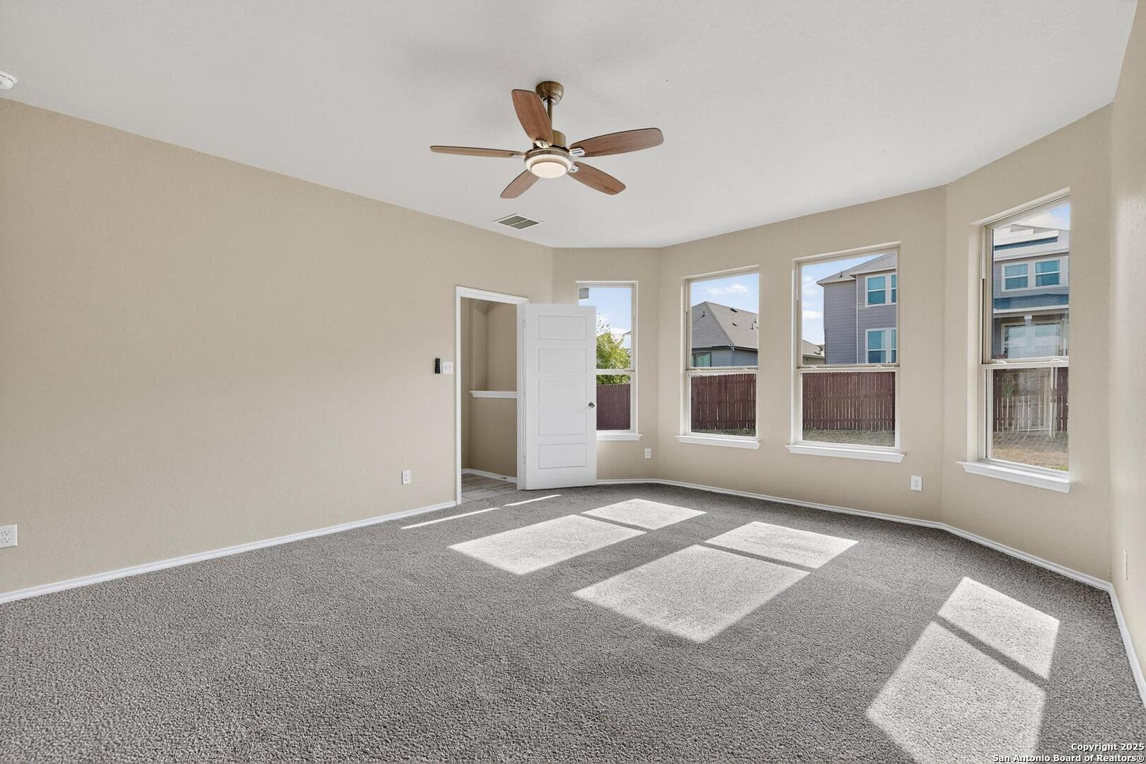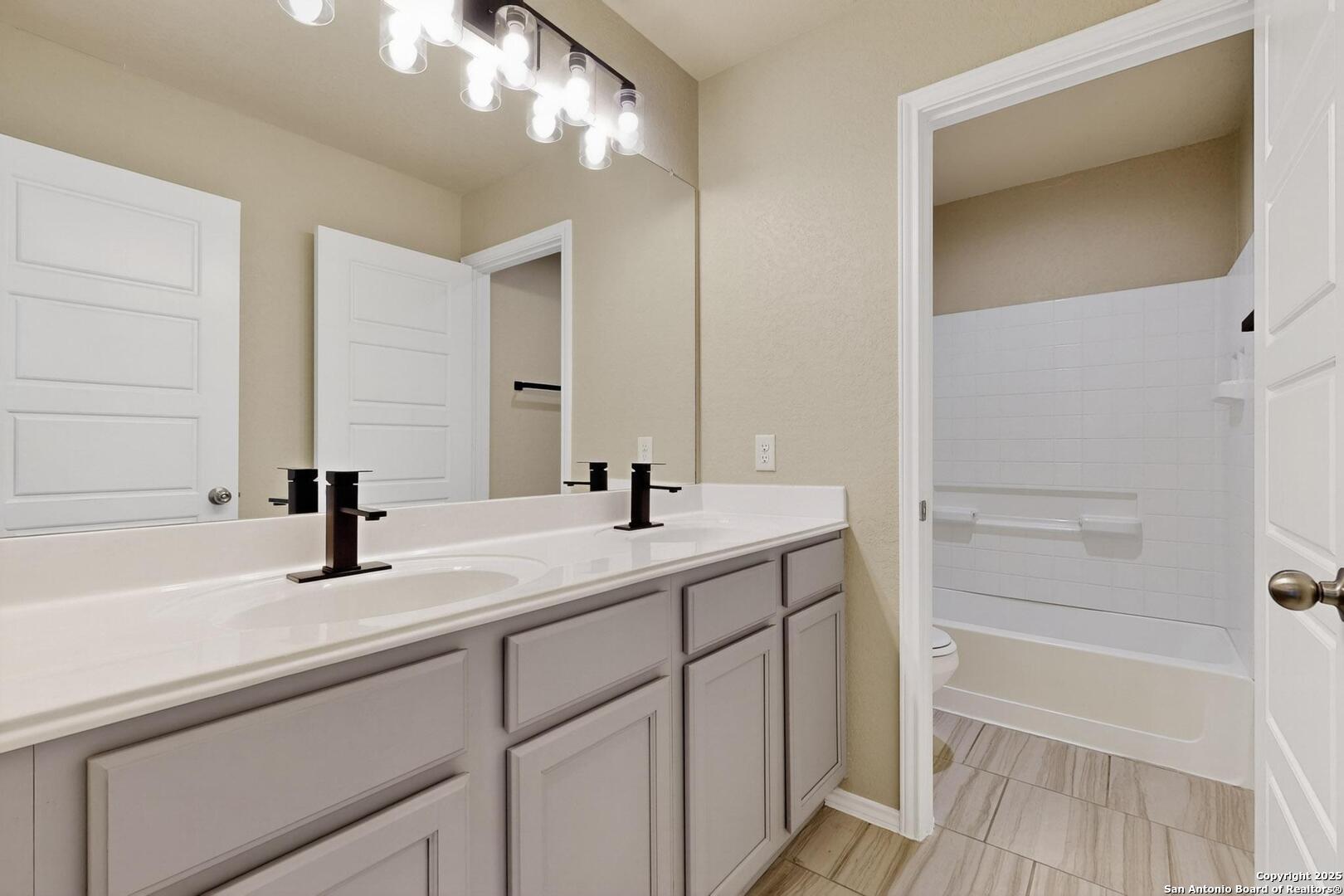 Welcome home to your stunning 5-bedroom, 3.5-bathroom, 2-story home located in the desirable Texas Research Park that is ready move-in on a large corner lot! Multiple living and dining areas with tile flooring and a flex room could be office/formal dining area in the front. Floorplan also includes game-room and a media room!! Kitchen has generous granite counter space, gas cooking, beautiful gray cabinets, and tiled backsplash. The primary bedroom is downstairs includes a generously sized walk-in closet, double sinks in the vanity, separate tub and shower. Four additional bedrooms upstairs with two full bath, game room & media room. Relax and enjoy living outdoors under a covered patio and extra spacious backyard. Updates/Upgrades also include new light & plumbing fixtures, recent paint, door hardware & ceiling fans. Don't miss this one and schedule your showing today! Conveniently located with easy access to major highways, shopping, restaurants, and Lackland Air Force Base and Northside School. This home offers both a peaceful retreat and easy access to everything you need. Ready for immediate move-in, this home truly combines style, function, and efficiency. Come by and make it yours!