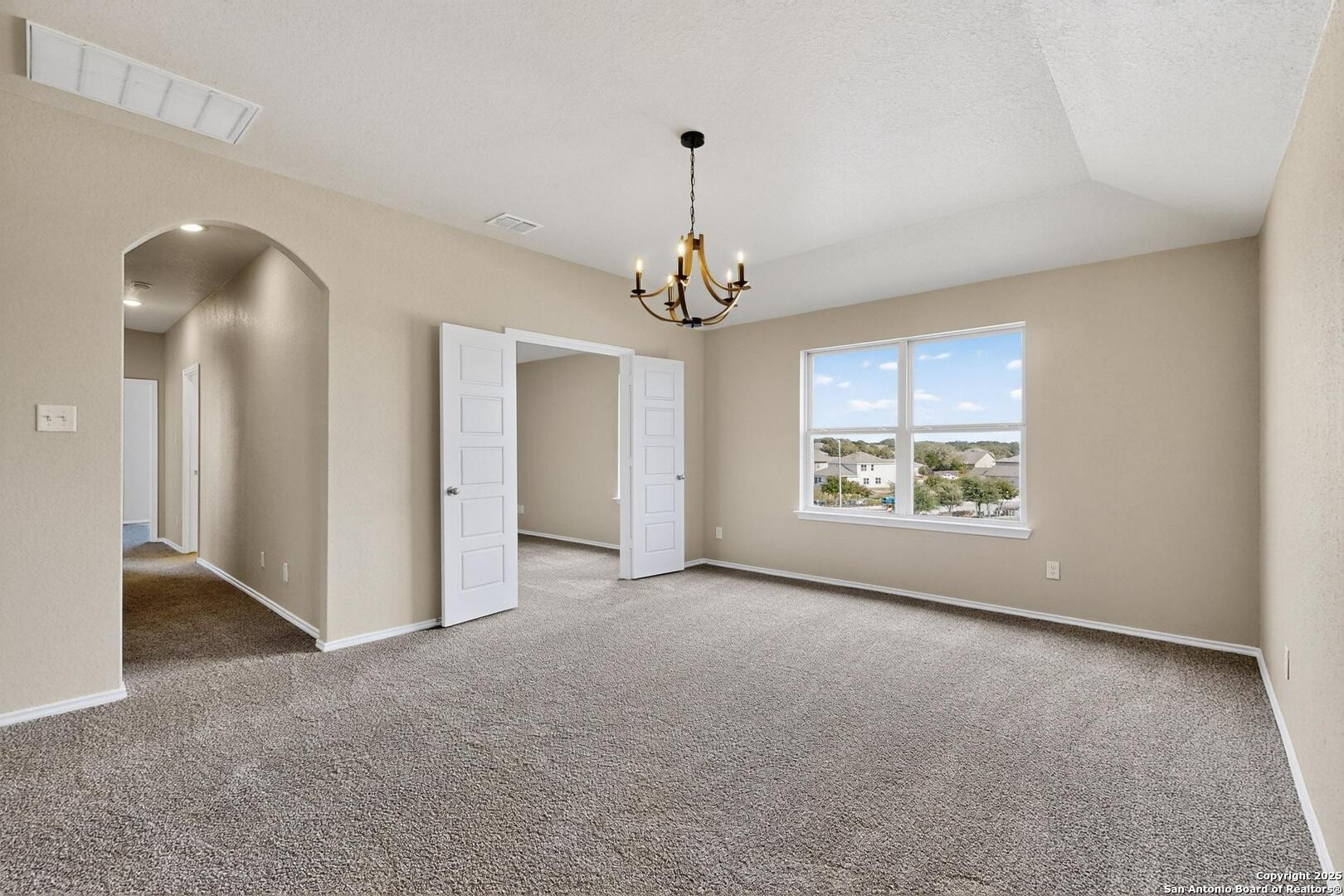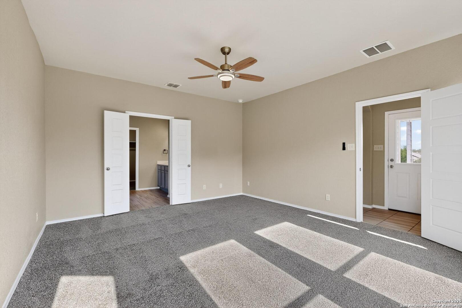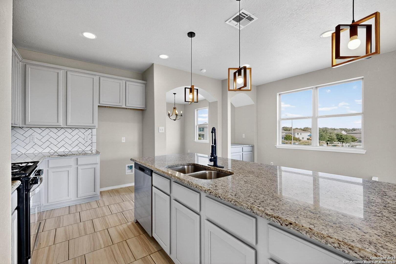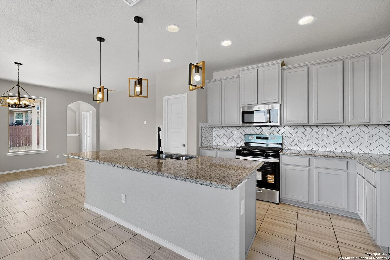 Welcome home to your stunning 5-bedroom, 3.5-bathroom, 2-story home located in the desirable Texas Research Park that is ready move-in on a large corner lot! Multiple living and dining areas with tile flooring and a flex room could be office/formal dining area in the front. Floorplan also includes game-room and a media room!! Kitchen has generous granite counter space, gas cooking, beautiful gray cabinets, and tiled backsplash. The primary bedroom is downstairs includes a generously sized walk-in closet, double sinks in the vanity, separate tub and shower. Four additional bedrooms upstairs with two full bath, game room & media room. Relax and enjoy living outdoors under a covered patio and extra spacious backyard. Updates/Upgrades also include new light & plumbing fixtures, recent paint, door hardware & ceiling fans. Don't miss this one and schedule your showing today! Conveniently located with easy access to major highways, shopping, restaurants, and Lackland Air Force Base and Northside School. This home offers both a peaceful retreat and easy access to everything you need. Ready for immediate move-in, this home truly combines style, function, and efficiency. Come by and make it yours!