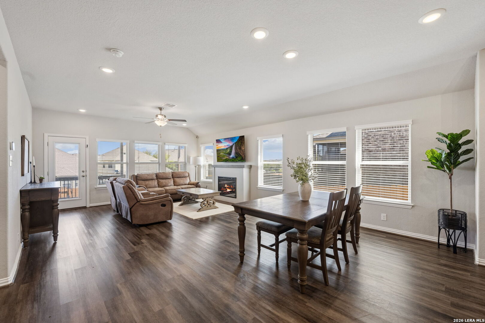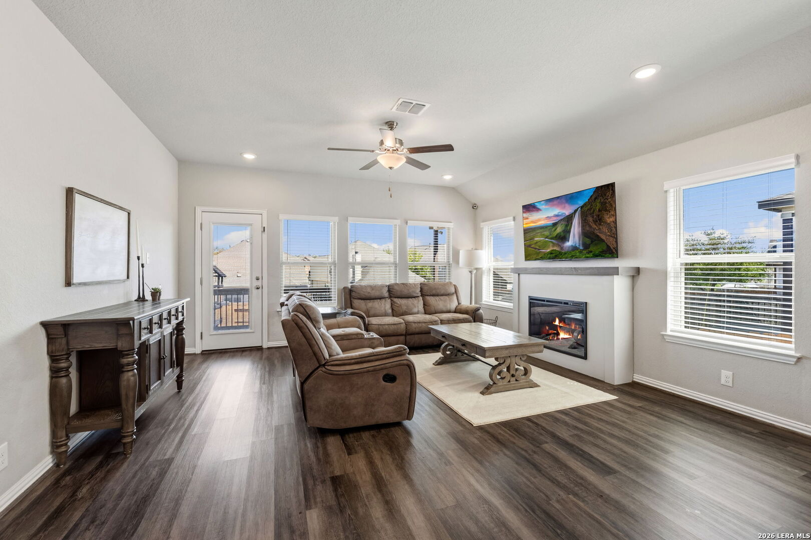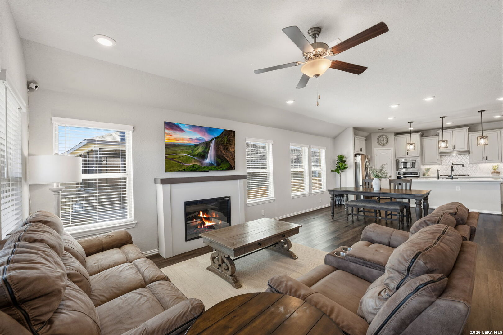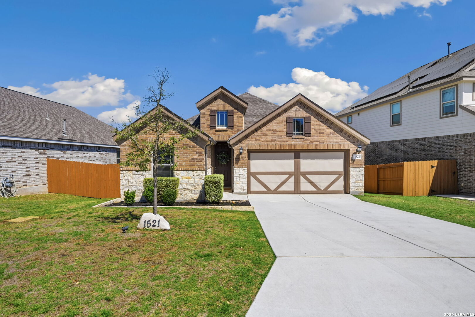 Built in 2020 by Gehan Homes, this thoughtfully designed single-story home in the highly sought-after master planned community of Meyer Ranch offers 2,043 square feet of comfortable and functional living. Featuring 3 bedrooms, 2 full bathrooms, and a dedicated office, the layout is ideal for both everyday living and working from home. The open-concept design creates a seamless flow between the kitchen, dining, and living areas, highlighted by an electric fireplace that adds warmth and character to the main living space. Luxury vinyl plank flooring extends throughout the main areas, with carpet in the bedrooms for added comfort. The kitchen is well-appointed with a large breakfast bar, gas cooktop with pot filler, and upgraded plumbing fixtures, making it both stylish and practical. Additional upgrades include designer tile in the laundry room and bathrooms, enhancing the overall quality and finish of the home. Step outside to enjoy a balcony overlooking the backyard, offering a unique outdoor space to relax or entertain. Solar panels provide added energy efficiency and long-term savings. Located in Meyer Ranch, residents enjoy access to exceptional community amenities including a resort-style pool, community hall, walking trails, and regular neighborhood events. This home combines modern upgrades, smart design, and an unbeatable location in one of the area's premier communities.