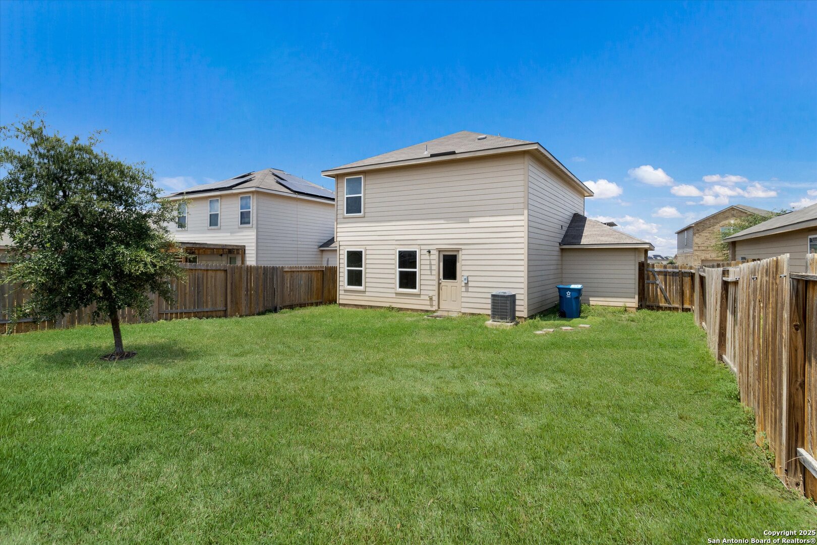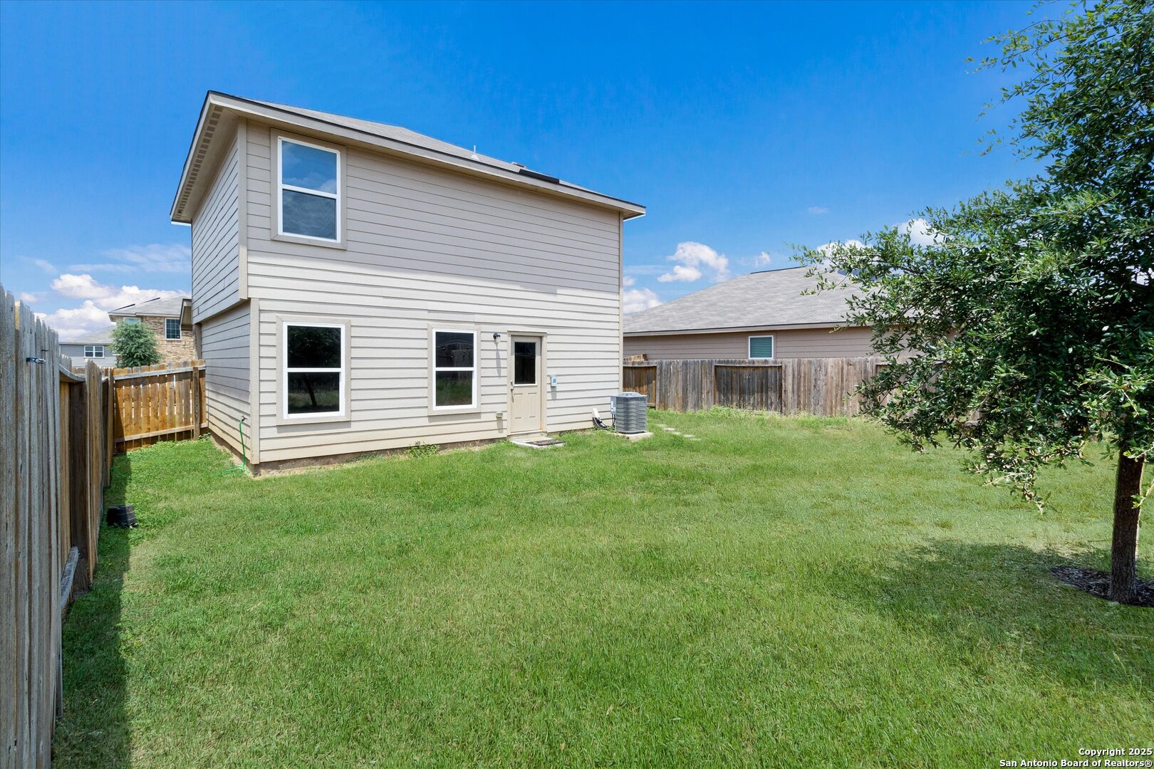 Stop renting and start owning! This beautiful two-story, move-in ready home offers 3 spacious bedrooms, 2 full baths, and 1 half bath, with a functional layout perfect for everyday living. The first floor features new flooring (installed August 2024), a welcoming living room and kitchen. Upstairs, the master suite includes a spacious bedroom, a private bath, and convenient access to the utility room, along with two additional bedrooms and a second full bath. The property features a long driveway for ample parking, and recent updates include a new A/C compressor (December 2024). Located in a neighborhood with playground amenities, this one-owner home blends comfort, functionality, and charm.Only 4 miles from the Toyota factory, 8 miles to Texas A&M San Antonio, 15 miles to downtown San Antonio, and 12 miles from Lackland.