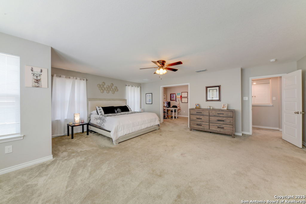 **VA loan assumable at an 2.75 interest rate for a qualified buyer. Buyer must meet VA and lender approval requirements. Seller offering up to $5000 in assistance towards Buyer's closing costs! Welcome to a home that has it all! Step into this beautiful, very spacious home with open living areas. Bright & airy, with plenty of room for family and friends gatherings. Situated in a cul-de-sac and a side green belt/space offering the privacy you are looking for. Home offers a secondary bedroom downstairs for guests, in-laws, older teen, etc. Kitchen is a dream with separate eating areas & breakfast bar. Check out the Butlers Pantry and Upgraded Kitchen cabinets! Primary bedroom offers an adjoining room- currently used as an office, but could be a nursery, craft room, reading area, many possibilities as a flex area! Covered Patio to enjoy the outdoors! Lot is big enough to add a pool! Community amenities do include a pool, too.