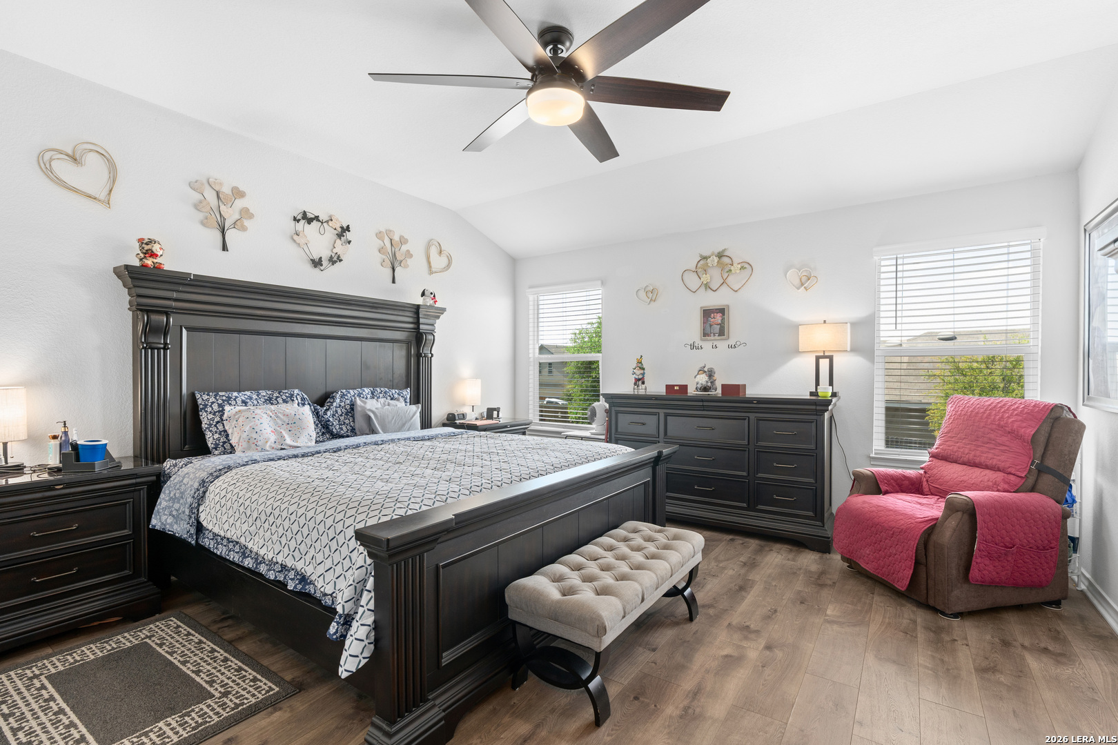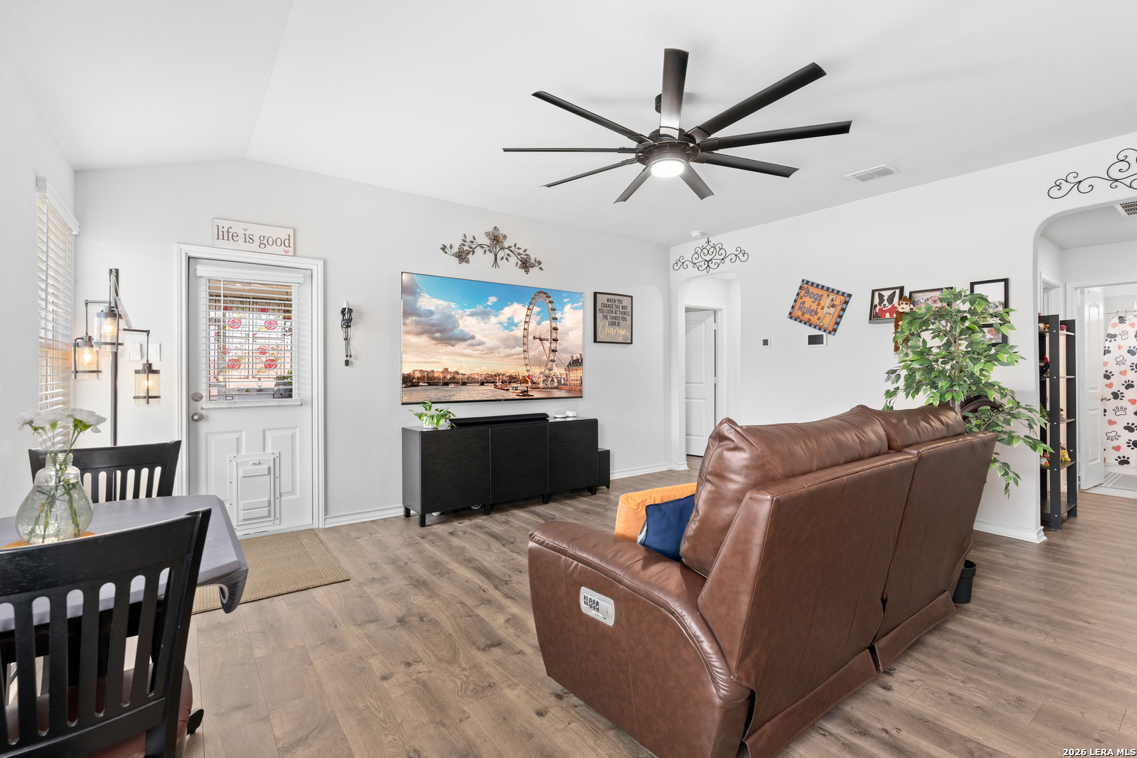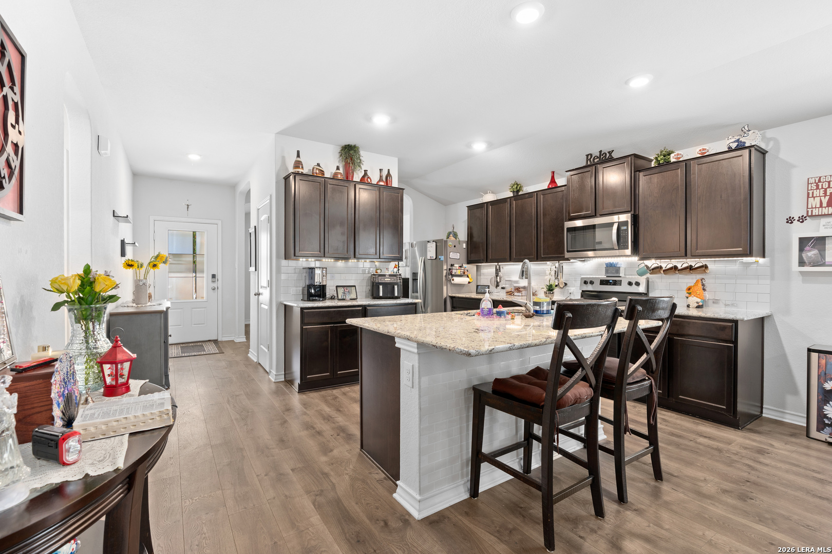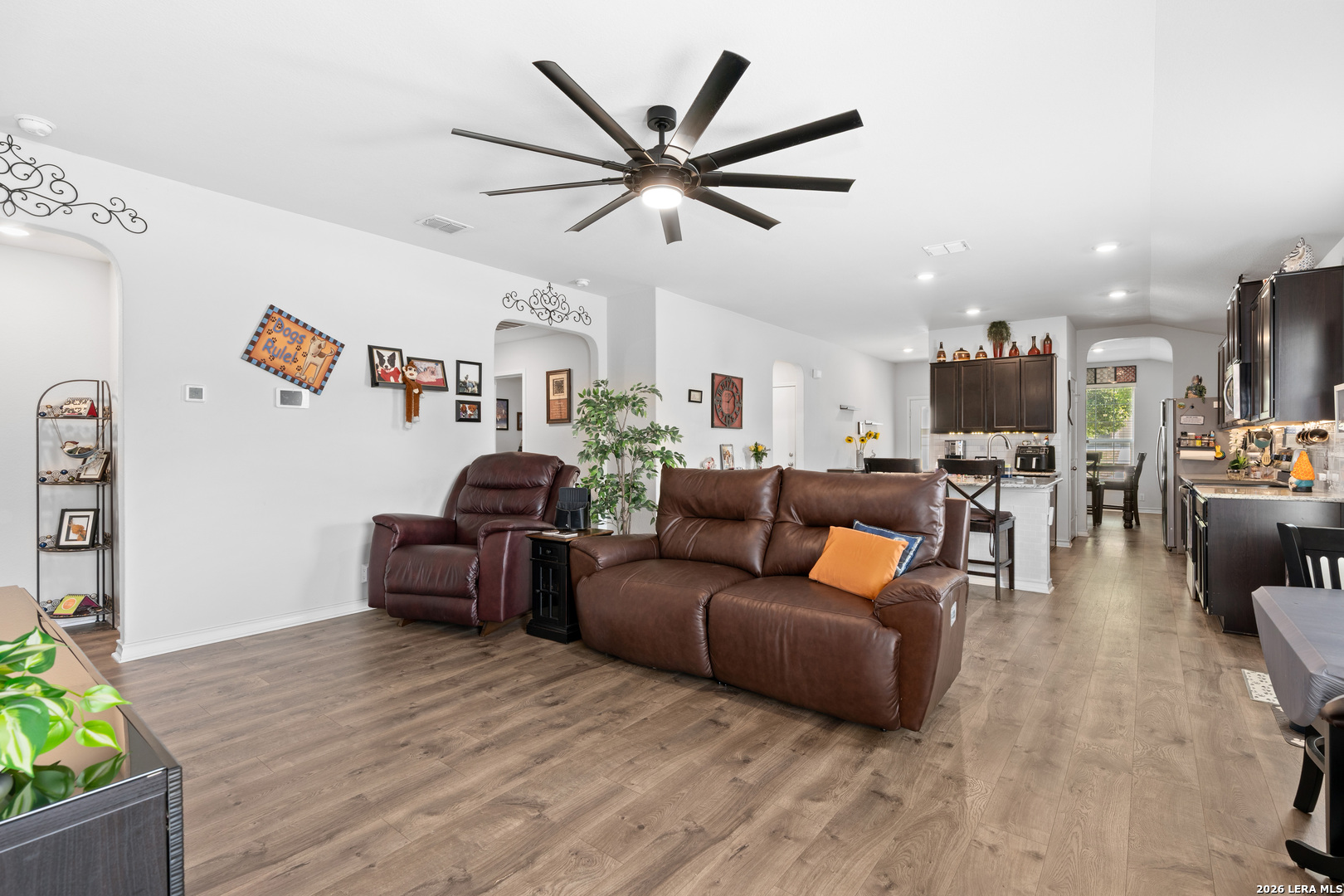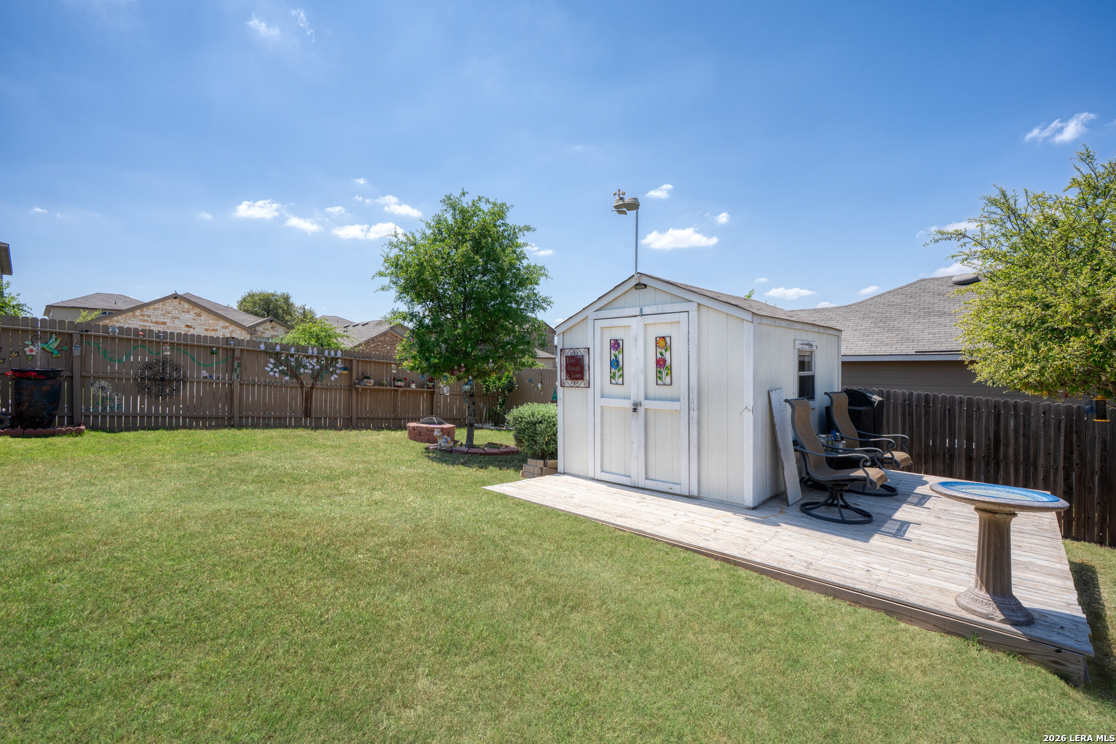 Welcome to your future home located on a spacious corner lot! The home features 3 bedrooms, 2 baths, a spacious living room and a kitchen. The living room and kitchen flow seamlessly with open concept, an abundance of natural light, complemented by the upgraded flooring. Beautiful kitchen with granite countertops, glass top electric stove/oven, beautiful cabinets, and a spacious pantry. Covered patio with retractable covers, which includes a brand new 8'x10' shed, and a spacious side yard. Master suite hosts a luxurious master bath and a large walk-in closet with a custom vanity table. Other amazing features include a finished garage, whole home plank laminate flooring (no carpet), and in-ground sprinklers. This home is the gem of the neighborhood and has received the white glove treatment by its current owners.