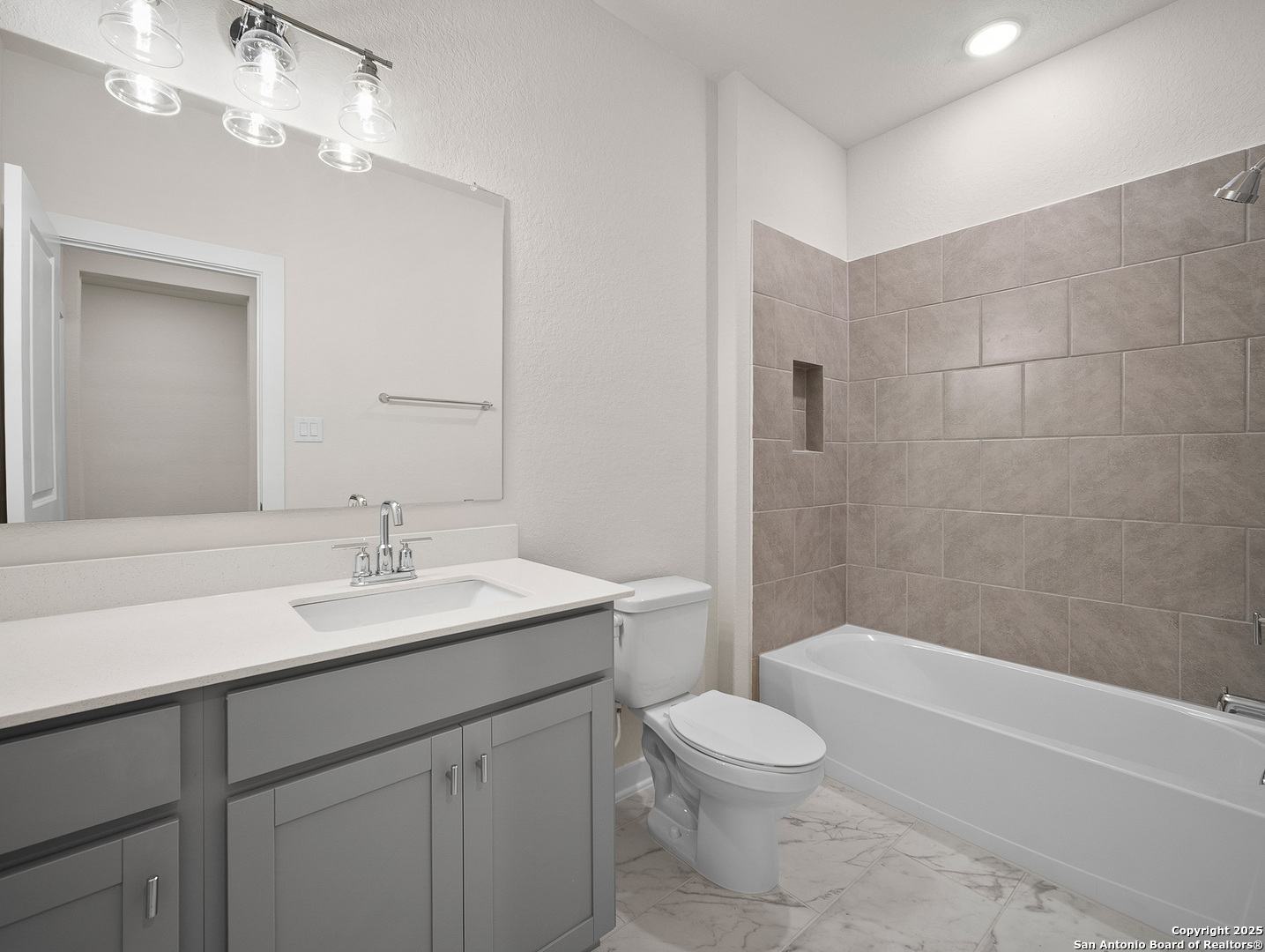 Welcome to Our Model floor plan the Rainer, a beautiful 2 Story located in the heart of NE San Antonio built by Beazer Homes. This stunning home features 5 beds and 3 1/2 baths, offering ample space for comfortable living. The 2,767 sq ft layout includes a spacious living room, a modern kitchen with stainless steel appliances, and a cozy dining area. The primary suite boasts high ceiling with large windows, while the additional bedrooms provide plenty of room for family or guests.Step outside to enjoy the huge outdoor covered patio on the quarter acre lot, perfect for entertaining or relaxing. Additional highlights include high ceilings and large tall windows and a two car garage. Located in the desirable Comanche Ridge community, this home is close to entertainment, making it an ideal choice for those seeking convenience and comfort.Beazer Homes is proud to be America's #1 Energy-Efficient homebuilder. In 2024, our homes achieved an average net HERS score of 37 (including solar) and a gross HERS score of 42-the lowest publicly reported scores among the top 30 U.S. homebuilders identified by Builder Magazine's Top 100 list (ranked by 2024 closings).Take advantage of our special buyer incentives which may include closing costs, design studio upgrades, FLEX dollars, and more. Reach out to us today to learn more about how you can benefit from these exclusive offers.