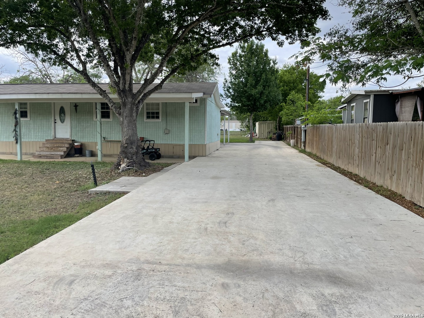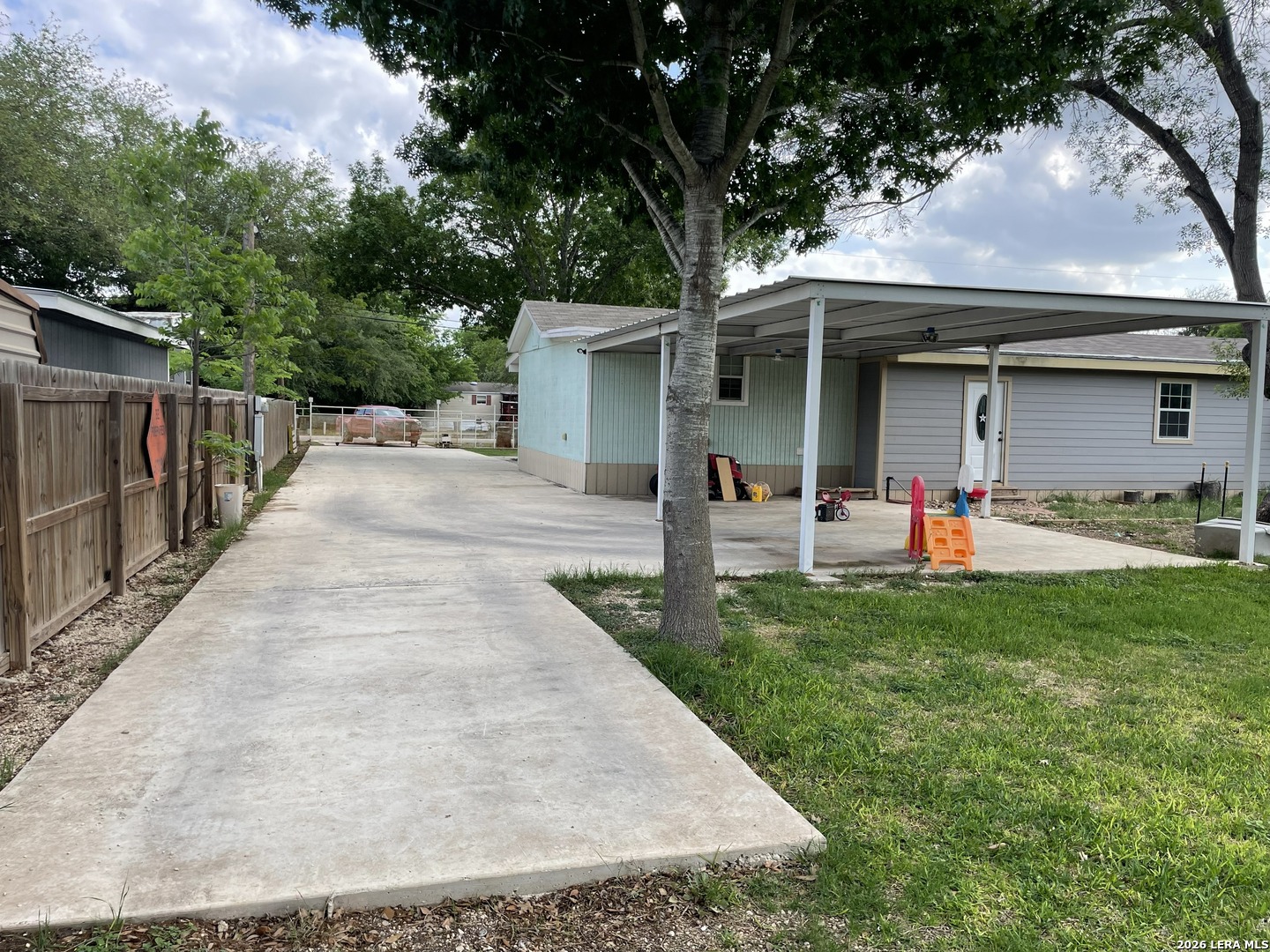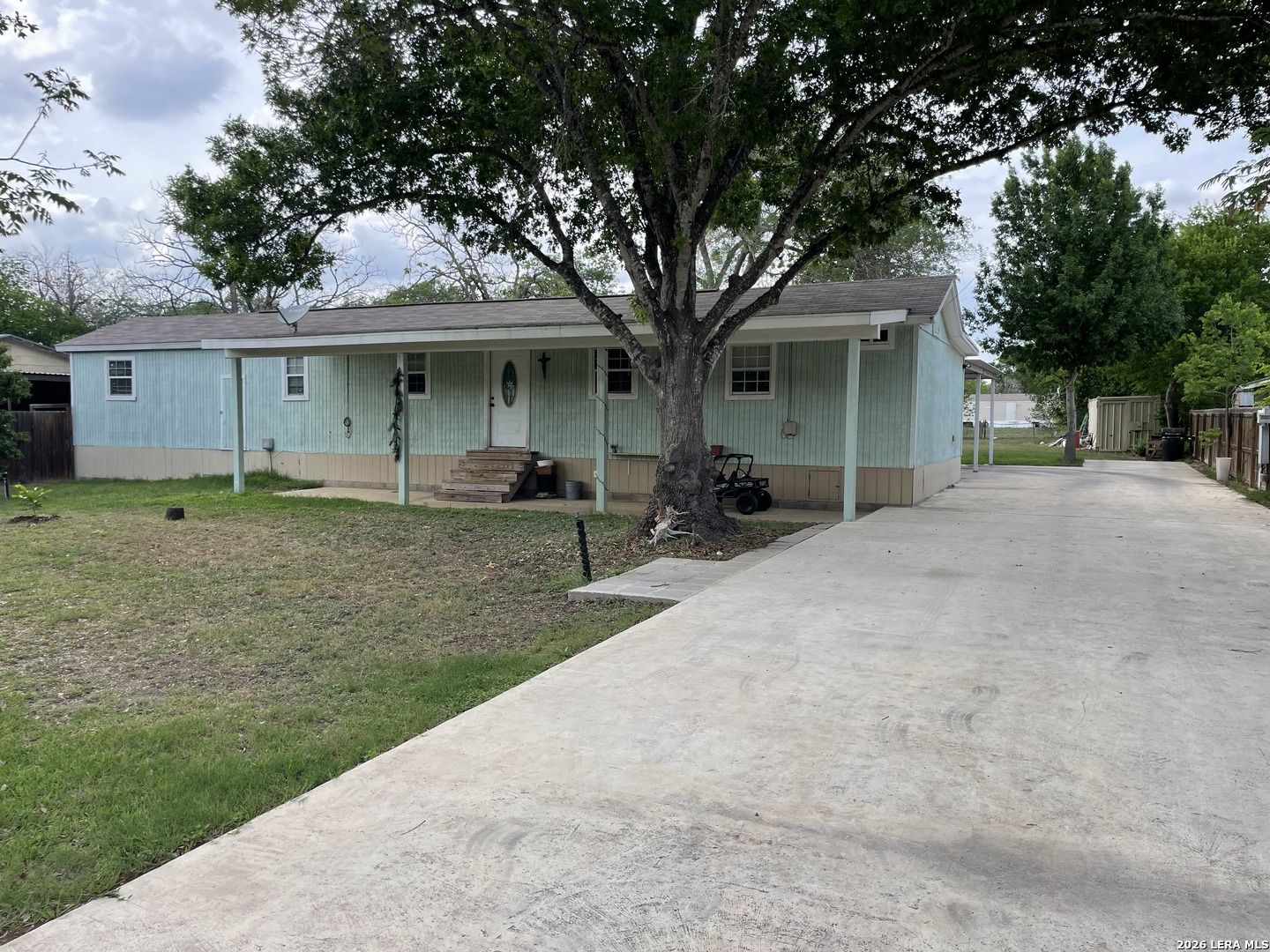 Quite an opportunity here! Very nice mobile with a huge step down family room and master bedroom. All laminate flooring, island kitchen, lots of space inside and out. Covered patio in the front and a larger one in the back. Large car port built for 2 cars plus a slap in the back with electricity and water. All on a spacious half acre. Don't miss seeing this nice home!