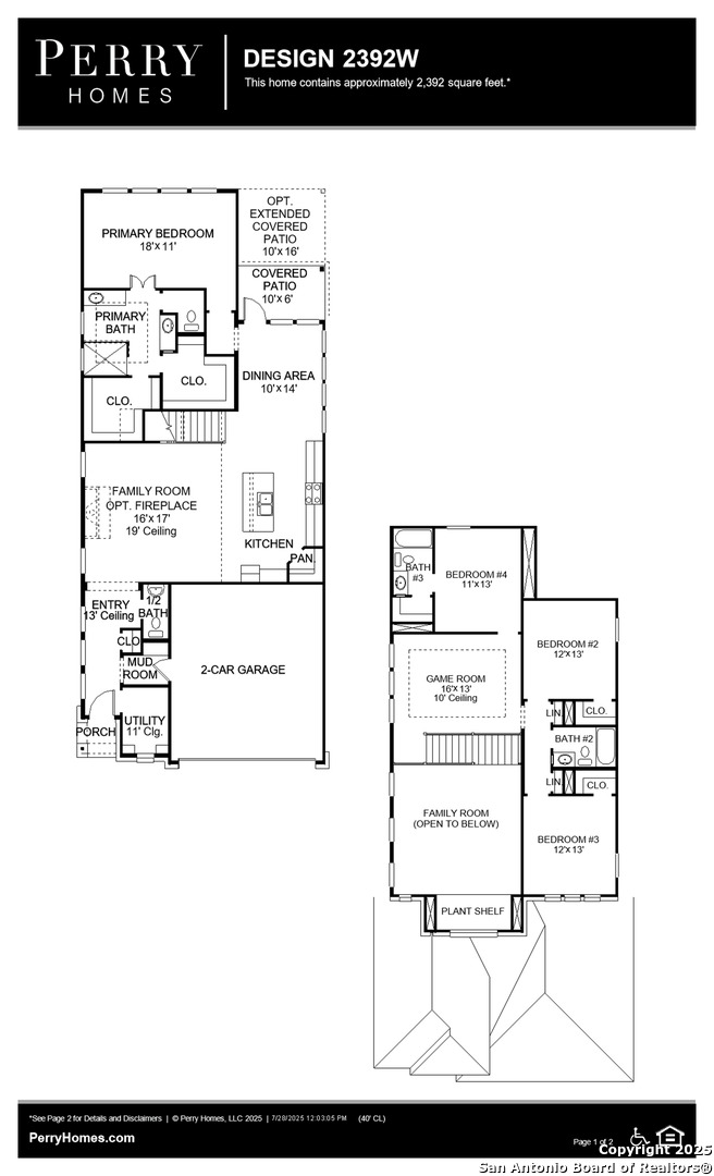 Step through the front entrance and you'll find a spacious entryway adorned with three large windows allowing natural light to illuminate the space. Located right off the front entrance is the utility room. As you proceed into the family room, you'll be captivated by the 19-foot ceilings. The corner kitchen features an island with built-in seating, 5-burner gas cooktop and a walk-in pantry. The adjacent dining area is bathed in natural light from the corner wall of windows. Enter the private primary suite, where a wall of windows welcomes you filling the room with natural light. French doors lead you to the primary bath, which offers dual vanities, a spacious glass-enclosed shower, and two oversized walk-in closets. On the second floor, you'll discover an open game room. The secondary bedrooms feature walk-in closets, separate linen closets, and share a full bathroom. A private guest suite with a full bathroom completes the upstairs. Outside is an extended covered backyard patio. Completing the floor plan is a mud room located just off the two-car garage.