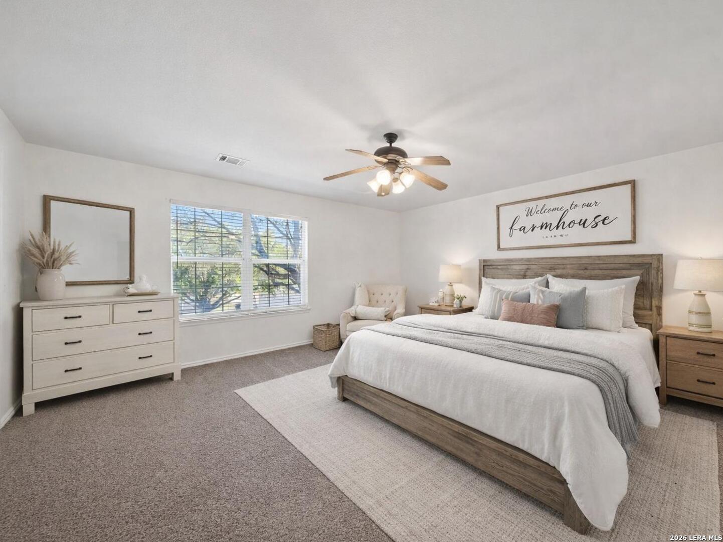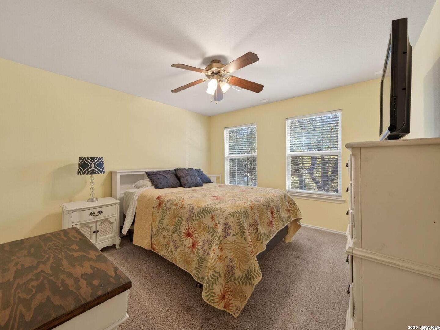 **Open House 2/15/26 2-4pm**Welcome to this beautifully maintained, move-in-ready home in the heart of Schertz, where space, comfort, and functionality come together effortlessly. All bedrooms are thoughtfully situated upstairs, anchored by a generous primary suite that offers excellent separation from the three secondary bedrooms ideal for privacy and everyday living. The home features multiple flexible living areas, including two distinct living spaces, a spacious loft, and a fully enclosed Florida sunroom that overlooks the backyard. This sunroom is a true space addition! perfect for plant lovers, a cozy sitting area, a wet bar, a man cave, or an additional entertaining space. Outside, enjoy a relaxing backyard setting with mature trees, a patio slab for gatherings, and a storage shed for added convenience. The recently renovated kitchen brings a fresh, modern feel, roll-out drawers, complemented by new flooring in the loft area that enhances both style and comfort. Additional highlights include alley-access rear entry and owned solar panels, providing long-term energy efficiency and savings. Conveniently located near established shopping, upcoming retail developments, major highways, schools, and a nearby military base, this home offers the ideal balance of location, updates, and versatile living spaces. This is the space and lifestyle today's buyers are looking for so don't miss the opportunity to make it yours. Schedule your showing Today!