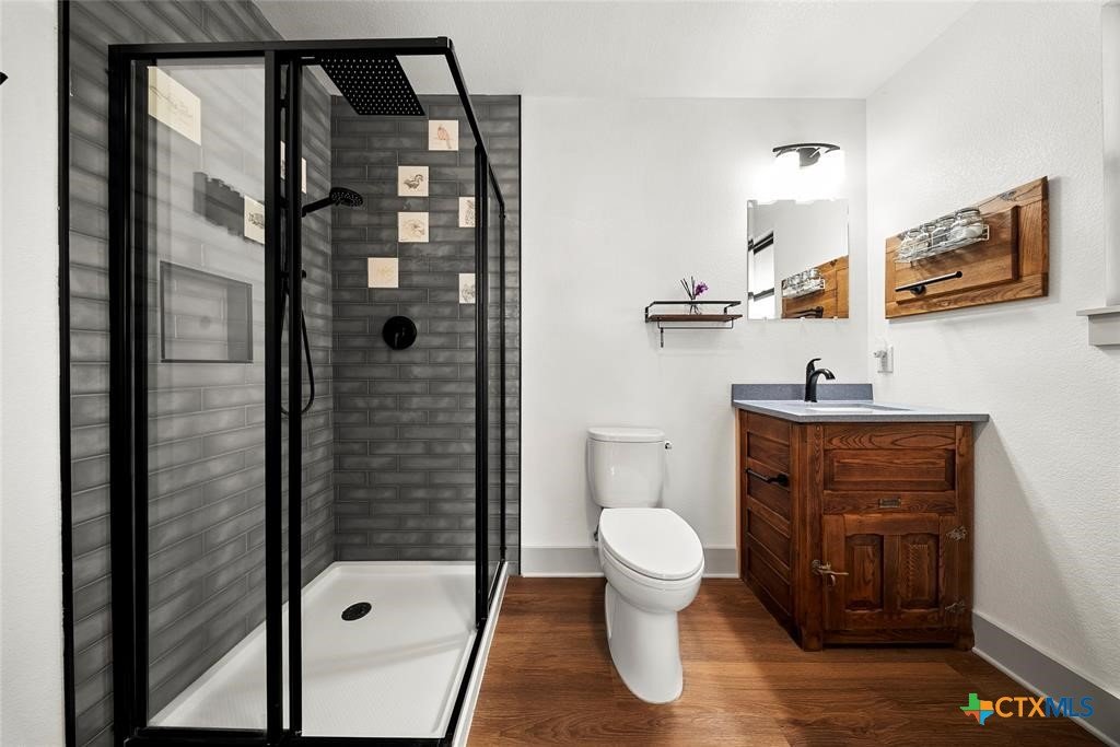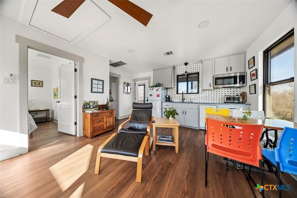 Set on just over 11 beautiful acres in Elgin, 153 County Road 491 offers the kind of space and freedom that’s getting harder to find. You’re welcomed by a front porch made for rocking chairs and peaceful sunrises with your morning coffee with a view of the pond. Step inside to an open layout with a seamless connection between the kitchen and living area, perfect for everyday living and entertaining. The kitchen features stainless steel appliances, a double oven, abundant drawers and cabinetry, and a spacious center island with seating. The living room is anchored by a cozy fireplace, while a spiral staircase leads to a versatile upstairs bonus space - perfectly suited for a second living area, 4th bedroom, home theater, gym, or playroom, but especially ideal as a private work-from-home office with its own exterior entrance, allowing clients or guests to come and go without ever entering the main living areas. The primary suite feels like its own retreat, complete with a soaking tub nestled inside an oversized walk-in shower and convenient access to the laundry room. The mudroom adds everyday practicality with a closet, sink, laundry connections, and extra cabinetry to keep life organized after a day outdoors. Step outside to the enclosed back patio with ceiling fans, the perfect place to unwind year-round while overlooking your land. Beyond the patio, the lifestyle truly shines with your very own private pickleball court, ready for friendly matches, weekend tournaments, or evening games under the Texas sky. Across the charming bridgeway, or accessible by stairs, sits a separate 1 bedroom, 1 bath guest apartment currently used as a short-term rental, offering incredible potential for guests, multigenerational living, or added income. Drive times: Elgin HEB: 15 minutes Coupland Dance Hall: 15 minutes Southside Market: 15 minutes Samsung Taylor: 25 minutes downtown Taylor: 25 minutes