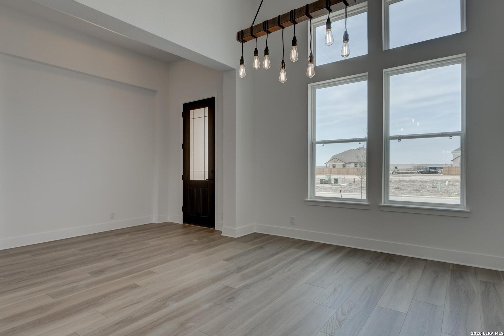 Located in a peaceful neighborhood, this home blends refined design with everyday comfort and thoughtful functionality. The exterior features a timeless mix of brick and stone with three sides of masonry, setting the tone for the elegance found inside. An open-concept layout connects the gourmet kitchen, oversized breakfast area, formal dining space, and expansive family room, creating an ideal flow for daily living and entertaining. The kitchen is beautifully appointed with an oversized center island, pendant lighting, built-in appliances, a pot filler, and a walk-in pantry. In the family room, a coffered ceiling adds architectural interest, while sliding stacked patio doors open fully to the covered patio, extending the living space outdoors. The primary suite offers a private retreat with a tray ceiling, sitting area, spacious walk-in closet, and a luxurious bath featuring a freestanding tub, oversized walk-in shower, double vanities, and a private water closet. Three secondary bedrooms and two additional baths provide ample space for guests or a growing household. Three car tandem garage attached for additional storage. This home features design selections carefully curated by our studio team. Every finish, from flooring and cabinetry to countertops and details, is chosen to create a cohesive, stylish, and welcoming space that feels beautifully balanced from the moment you step inside. This home is in Megan's Landing, a family-friendly community in the Texas Hill Country. Enjoy nearby shopping, dining, outdoor escapes, and top Medina Valley ISD schools.