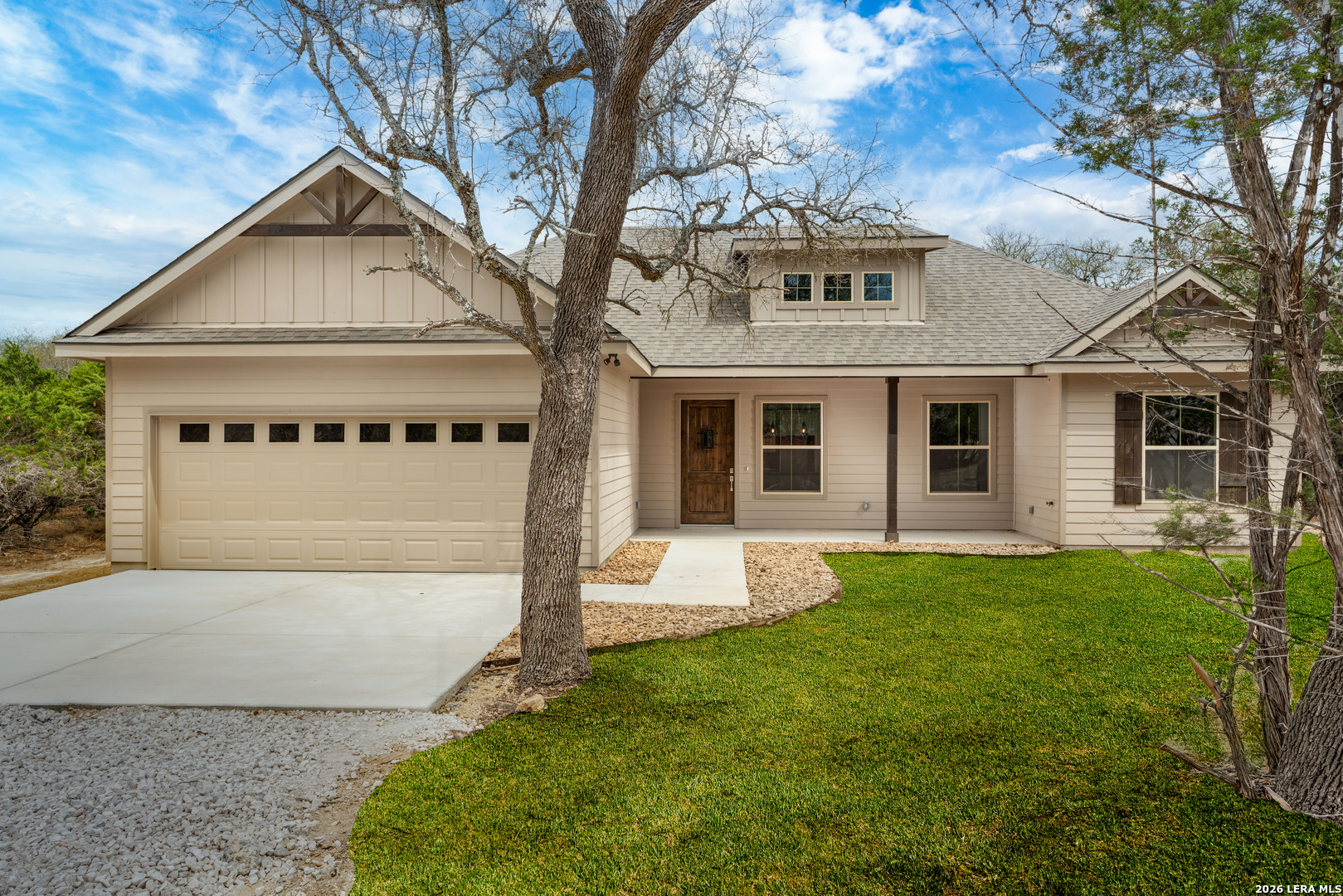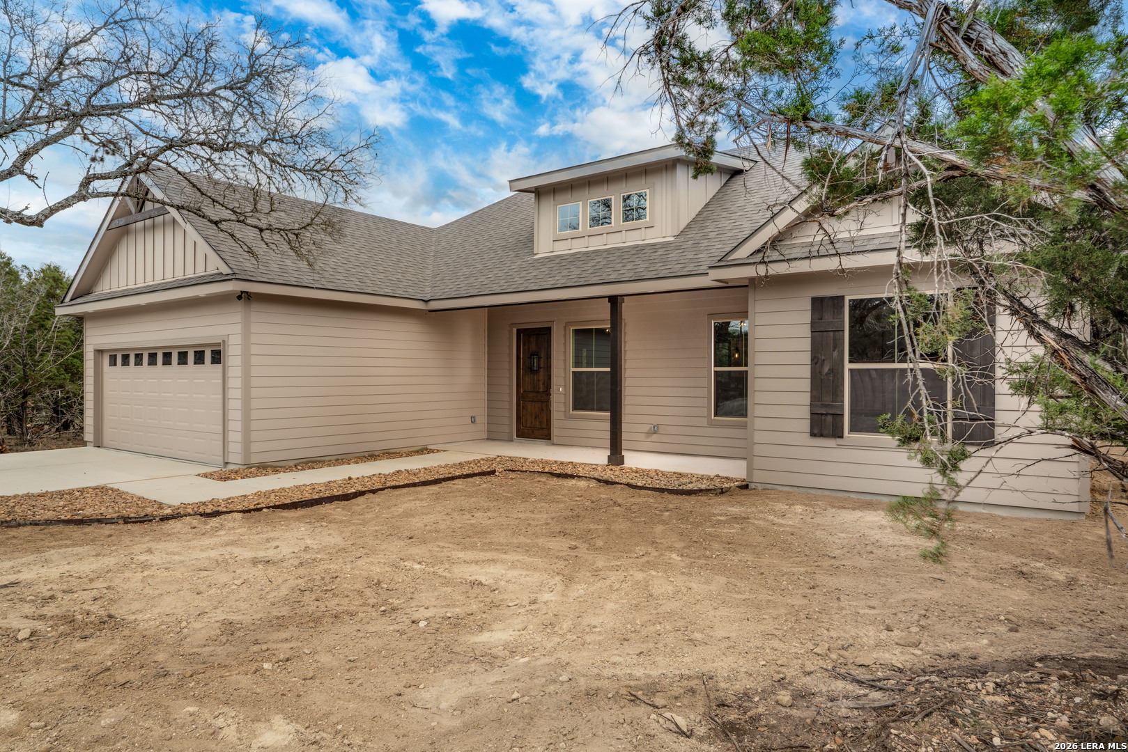 Welcome to 153 Spotted Horse in the desirable Comanche Cliffs neighborhood of Bandera, Texas. This thoughtfully designed new construction home by MasterPeace Homes offers 3 bedrooms, 2 bathrooms, a 2-car garage, and 1,658 square feet of comfortable Hill Country living on just under 1 acre of land. Blending modern ranch style with the warmth and charm of the surrounding landscape, this home is being crafted with quality finishes and attention to detail throughout. Enjoy the peace of country living just minutes from Bandera and all the Texas Hill Country has to offer, while being an easy and picturesque 30-minute drive to Boerne or Helotes for big city conveniences.