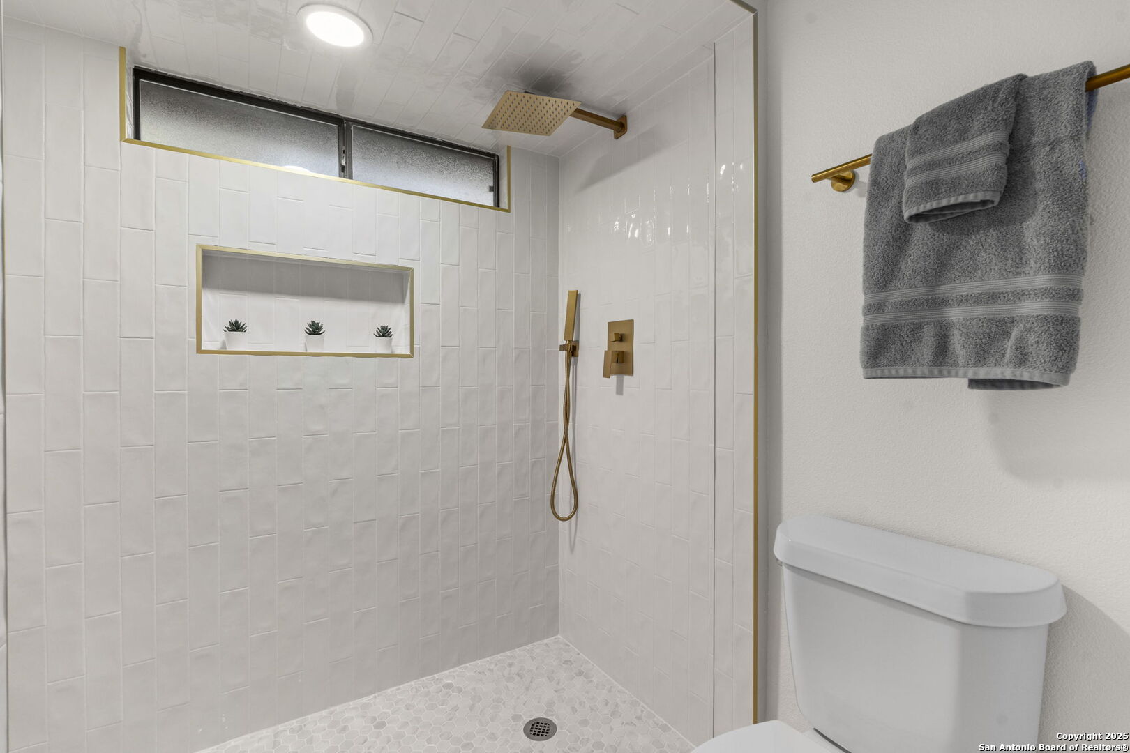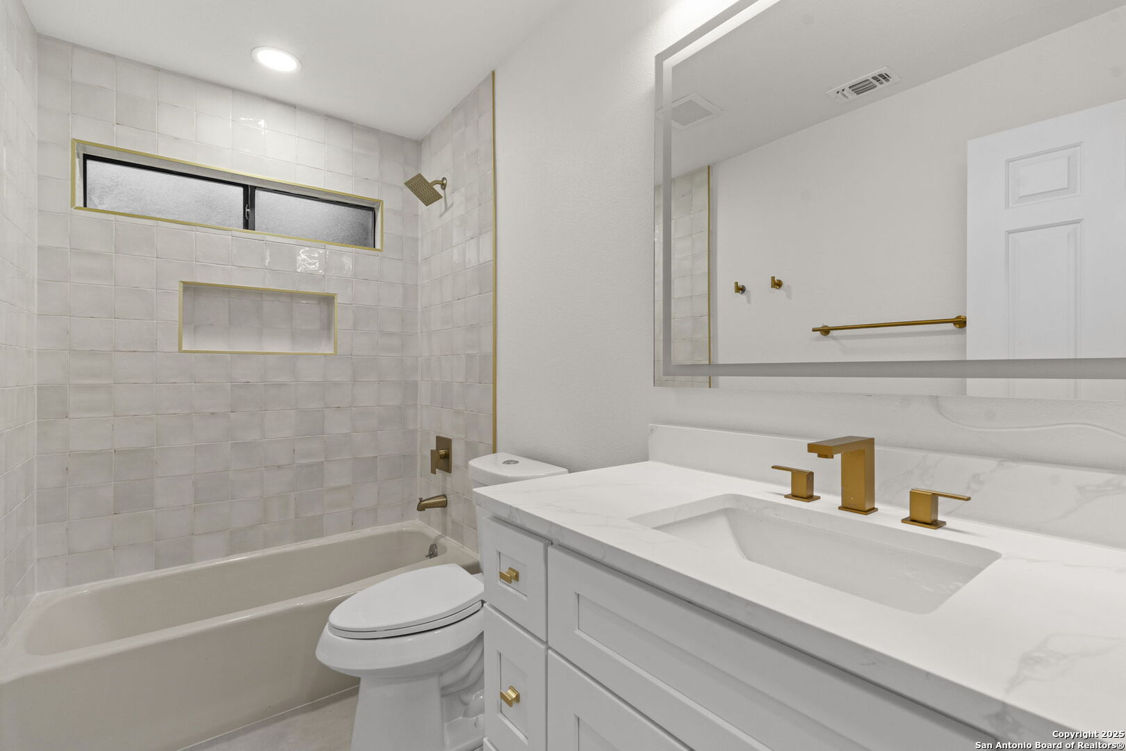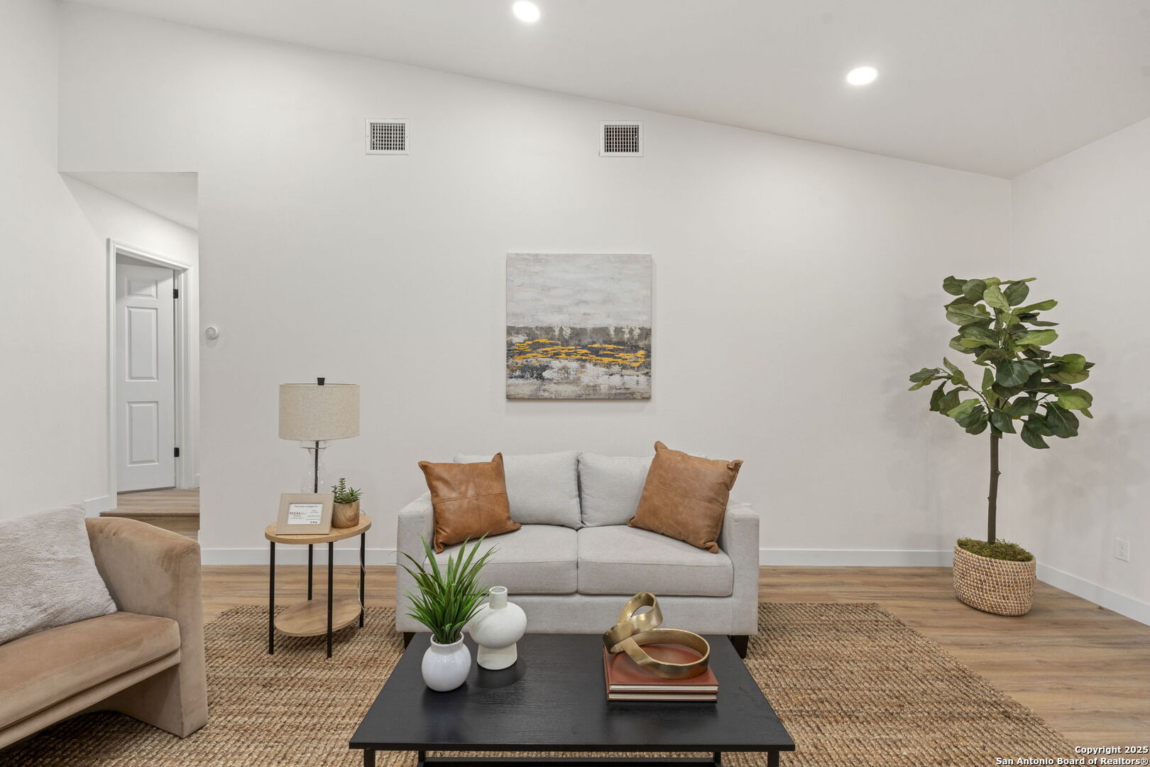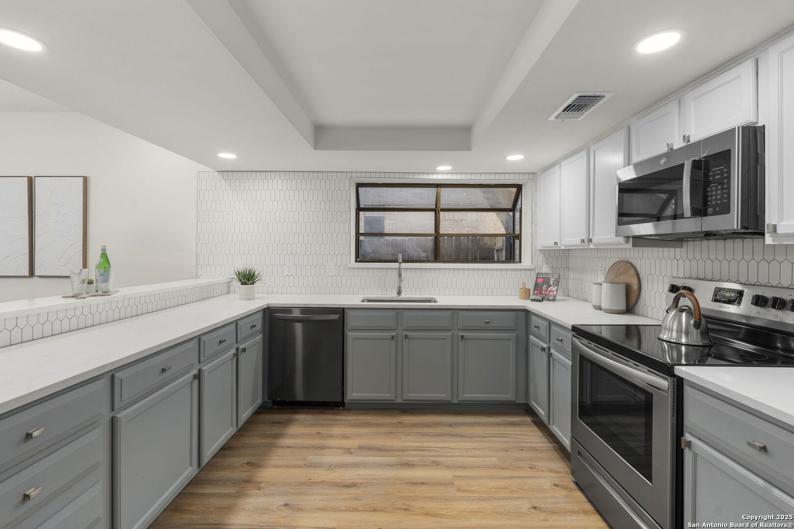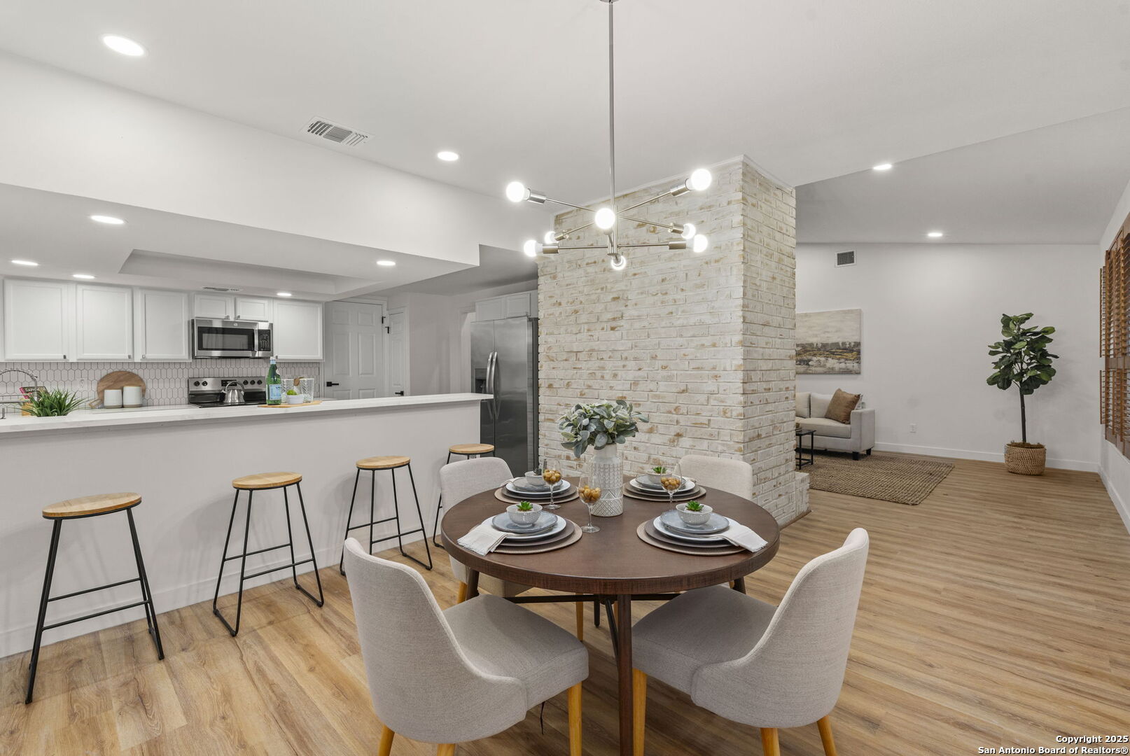 Welcome to 15314 Artesian Oaks, a beautifully updated 3-bedroom, 2-bath brick home offering timeless curb appeal, modern interior finishes, a POOL, and NO HOA. The classic light-toned brick exterior paired with dark accents creates a clean, contemporary look while maintaining durability and low maintenance - a rare and valuable combination. Inside, the home features updated flooring, recessed lighting, and a spacious living area anchored by a stunning floor-to-ceiling painted brick fireplace, adding warmth and architectural interest. The kitchen has been refreshed with quartz countertops, stainless steel appliances, modern cabinetry, and generous prep space, making it ideal for everyday living or entertaining. Both bathrooms showcase contemporary upgrades, including a walk-in shower with designer tile and sleek, modern fixtures. Natural light flows throughout the home, enhancing the bright, airy feel. Step outside to a huge backyard shaded by mature trees, offering privacy and flexibility. The outdoor space includes a deck and pool, perfect for entertaining, relaxing, or adding future value. The brick exterior continues throughout, providing long-term durability and strong resale appeal. With no HOA restrictions, this property is an excellent opportunity for investors seeking rental potential, as well as families looking for space, privacy, and character. Conveniently located near shopping, dining, and major roadways, this home offers both lifestyle and opportunity.