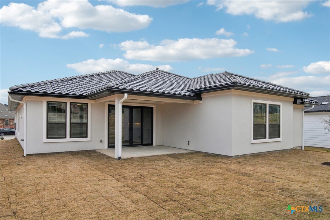 Monroe plan with upgraded kitchen, quartz countertops, optional study, tile flooring, upgraded bronze windows, full gutters, sliding glass door in living, Express cordless blinds, tankless water heater in garage