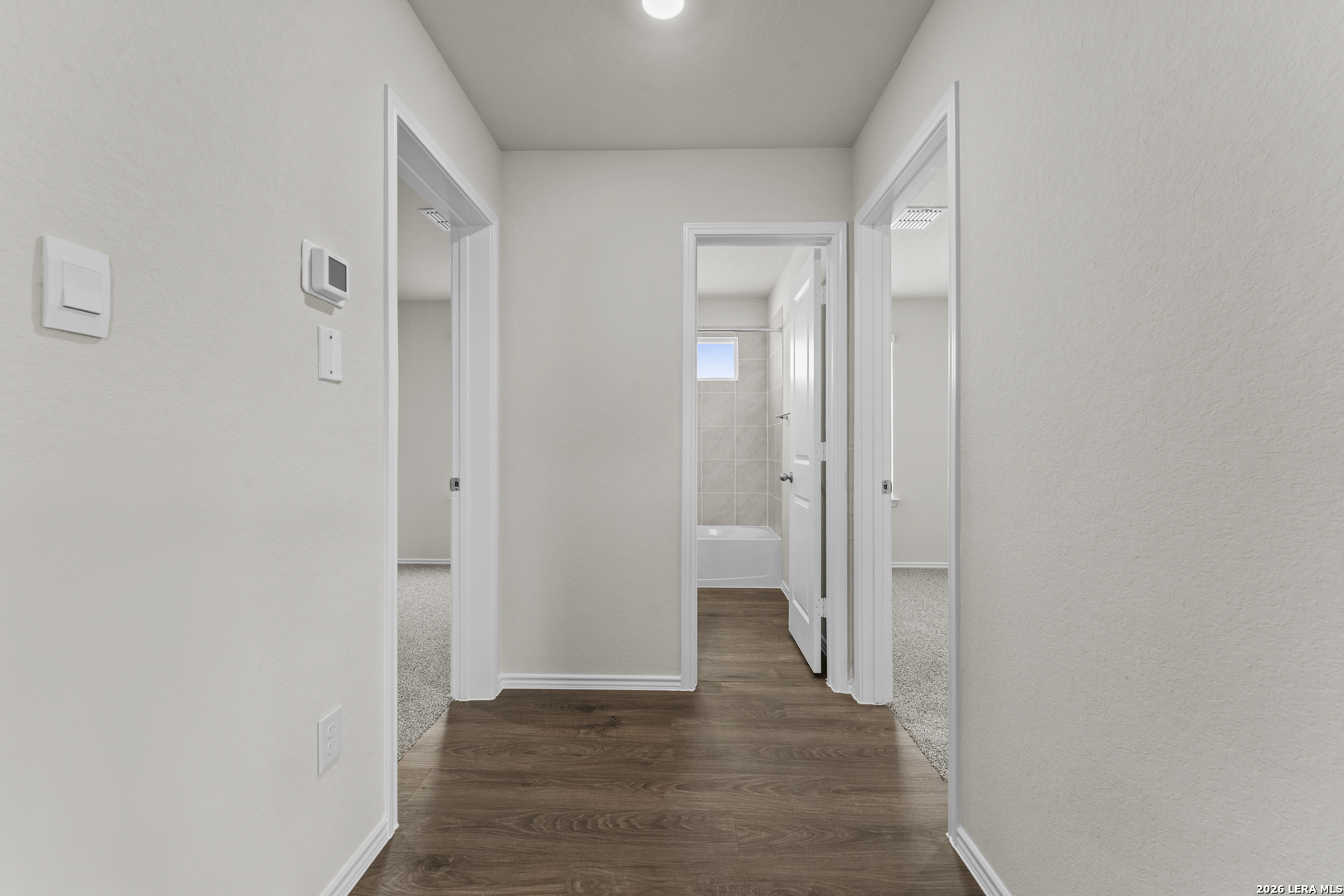 Step into The Brown floor plan at High Garden in Comfort, TX, a single-story home featuring 3 bedrooms and 2 bathrooms. The Brown features classic design and modern features that blend seamlessly to create the perfect everyday space. A welcoming foyer leads to a formal dining room with large windows and a connecting doorway to the galley kitchen. The kitchen includes plenty of cabinet storage, quartz counter tops, subway tile backsplash, stainless steel appliances, and a electric cooking range. A large kitchen island with a deep, single basin sink overlooks the spacious living room. The large first bedroom suite is located off the family room and features a double vanity sink, separate tub and walk-in shower and a private water closet. You'll have all the space you need to get ready in the morning with a large walk-in closet. Spacious secondary bedrooms with large closets and quality carpet flooring, a second full bathroom with plenty of natural light, and a utility room are conveniently located off the living room. Additional features of The Brown include tall 9-foot ceilings, 2-inch faux wood blinds throughout the home, luxury vinyl plank flooring in the entry, family room, kitchen, and dining area, ceramic tile in the bathrooms and utility room, and pre-plumb for water softener loop. You'll enjoy added security in your new home with our Home is Connected features. Using one central hub that talks to all the devices in your home, you can control the lights, thermostat and locks, all from your cellular device.*Seller is willing to assist with closing costs or a rate buy-down through preferred lender with an acceptable offer. *