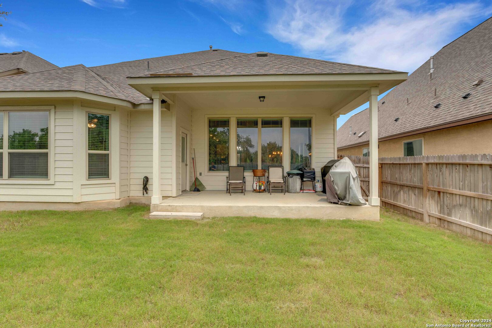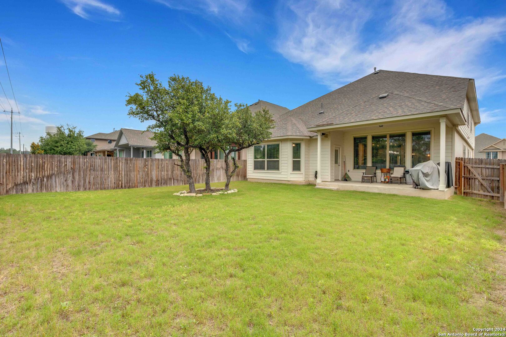 Stunning Greenbelt Home in the Growing City of Bulverde. This 5-bedroom, 3.5-bath home features a media room, private office, and game room, offering flexible space for both everyday living and entertaining. Situated on a greenbelt lot (no neighbors behind), the home provides privacy and peaceful view. Located in the rapidly growing city of Bulverde, this residence stands out with its high ceilings and tall windows in the living room, filling the home with natural light and opening directly to serene greenbelt scenery. The layout is both functional and impressive, making this a truly stunning home in a desirable and expanding area.