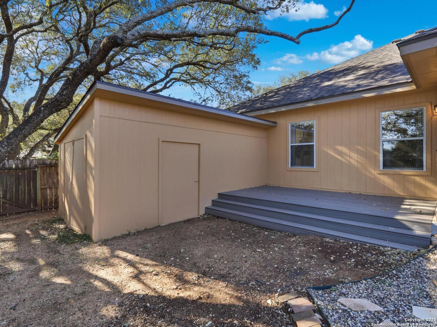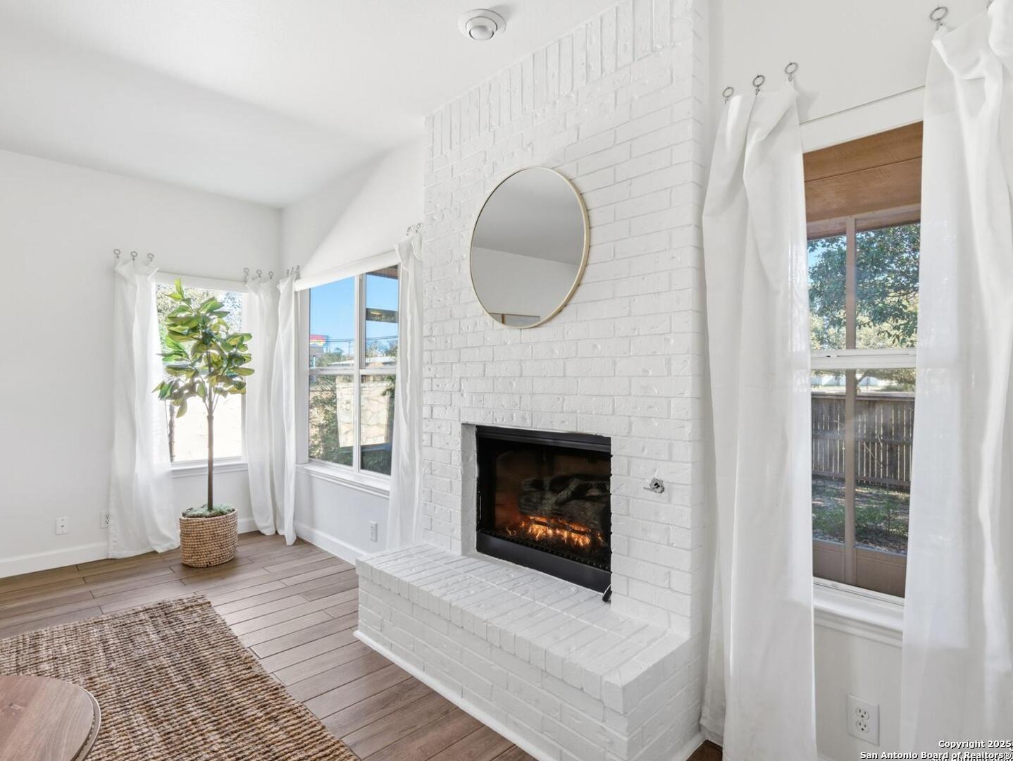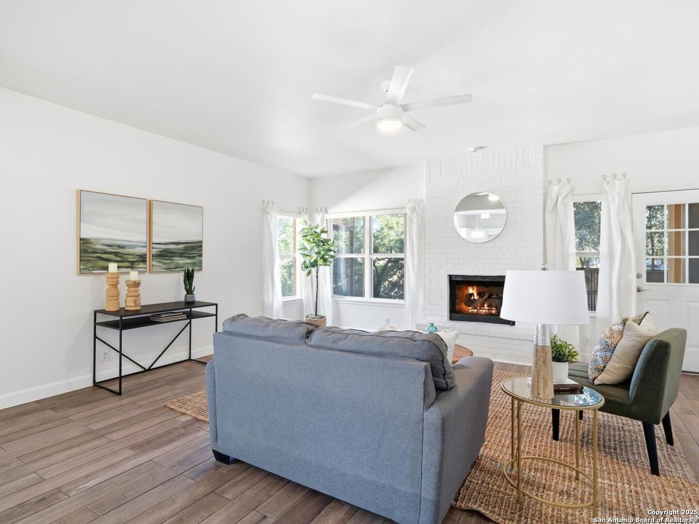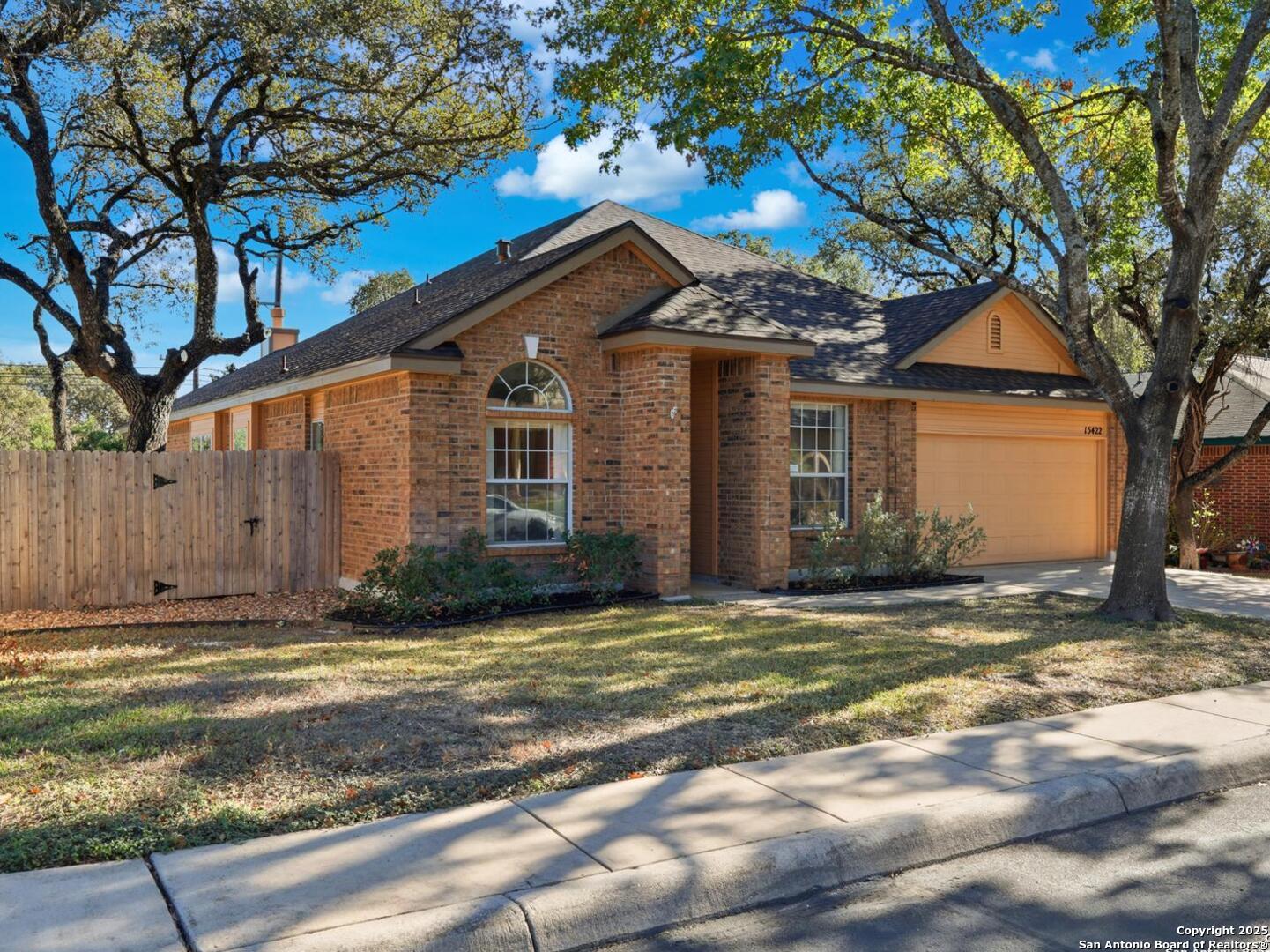 OPEN SAT JAN 3RD 12-2! Charming 4 Bedroom/2 Bath home nestled inside Loop 1604, just off of Thousand Oaks and Henderson Pass. Renovated, new flooring, painted interior and exterior, quartz countertops throughout, new fixtures, and so much more. The floor plan blends modern style with an open layout that is great for entertaining and family gatherings. Included is a formal living room and or dining room, which could double as a home office. The kitchen has plenty of cabinets for storage, white appliances, modern backsplash for a clean and neutral look. The living room features tall ceilings, many windows, and a fireplace. Included is an enclosed patio, a composite deck and extra storage. This home is situated on a corner lot!!! Perfect for a first time buyer! The community is gated, for added privacy.