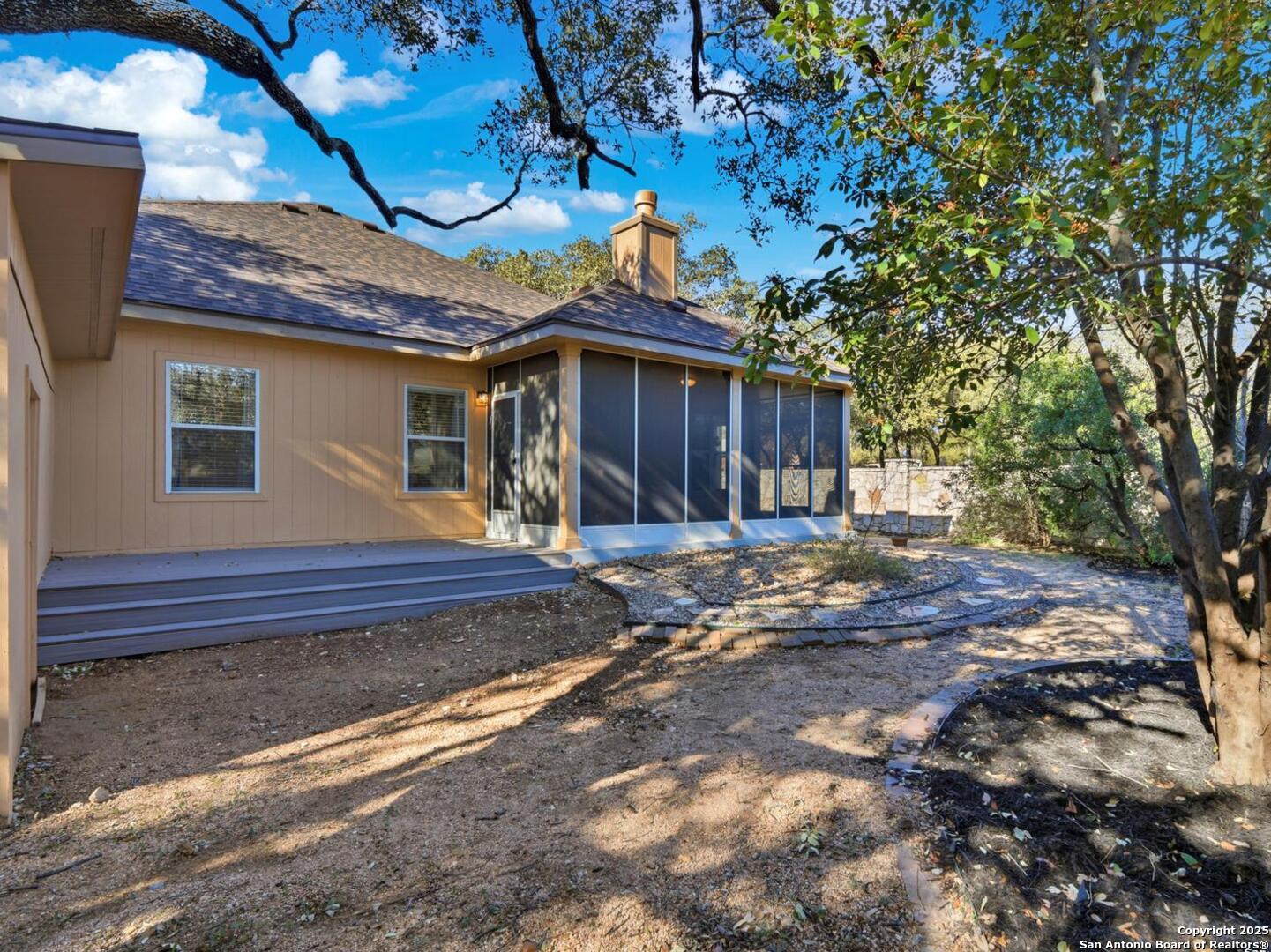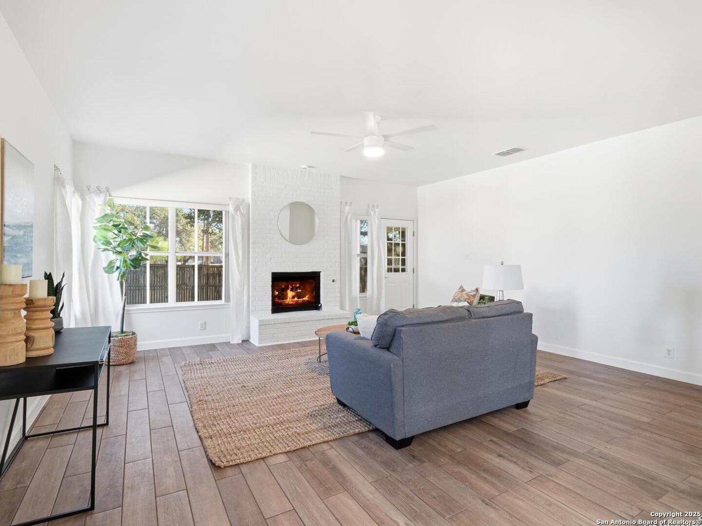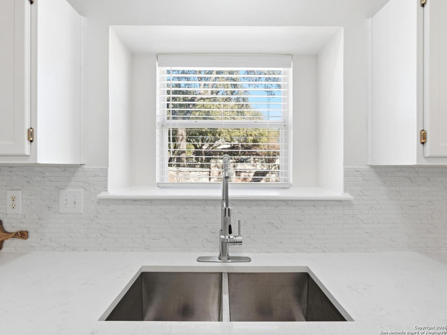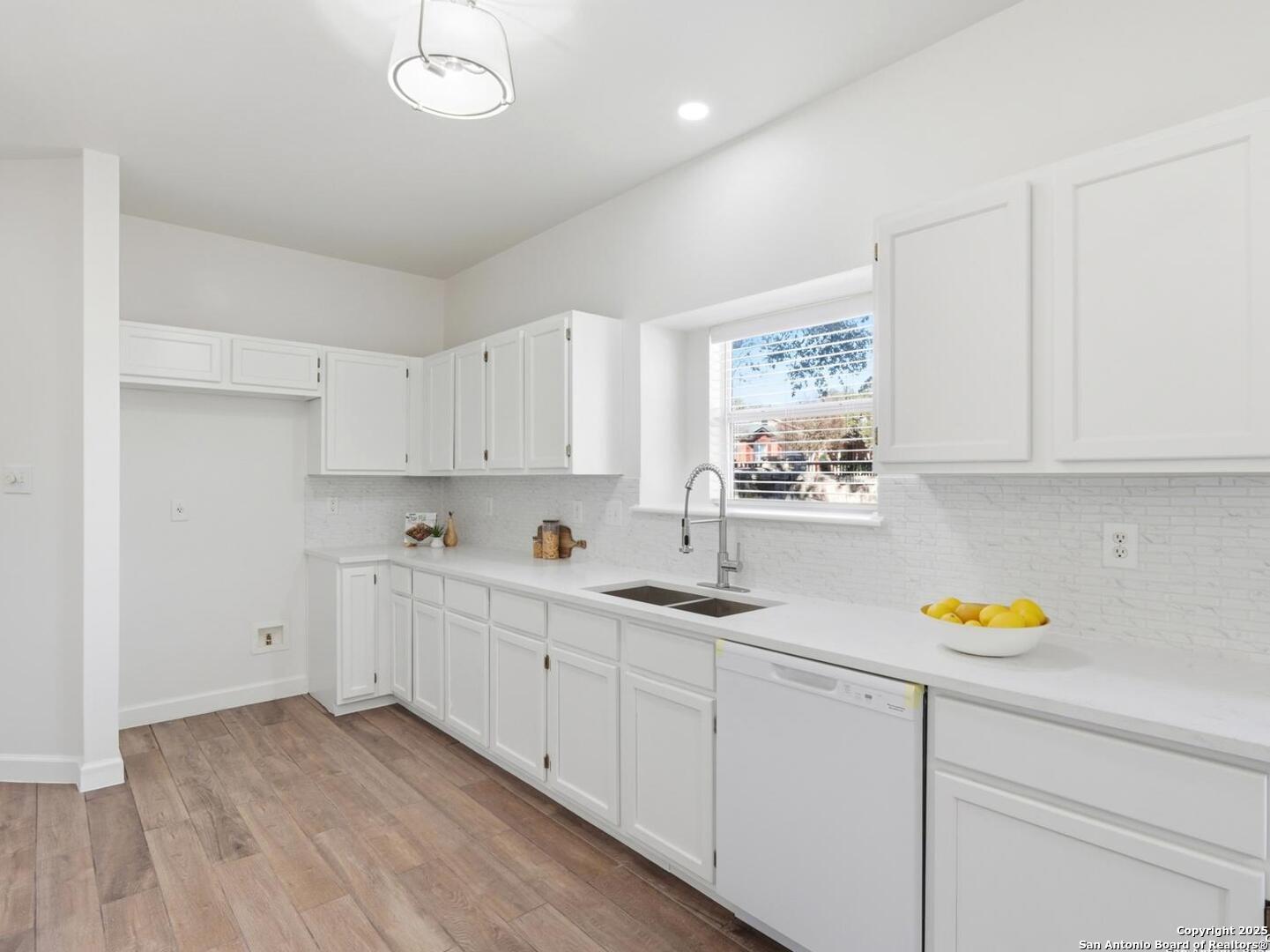 OPEN SAT JAN 3RD 12-2! Charming 4 Bedroom/2 Bath home nestled inside Loop 1604, just off of Thousand Oaks and Henderson Pass. Renovated, new flooring, painted interior and exterior, quartz countertops throughout, new fixtures, and so much more. The floor plan blends modern style with an open layout that is great for entertaining and family gatherings. Included is a formal living room and or dining room, which could double as a home office. The kitchen has plenty of cabinets for storage, white appliances, modern backsplash for a clean and neutral look. The living room features tall ceilings, many windows, and a fireplace. Included is an enclosed patio, a composite deck and extra storage. This home is situated on a corner lot!!! Perfect for a first time buyer! The community is gated, for added privacy.