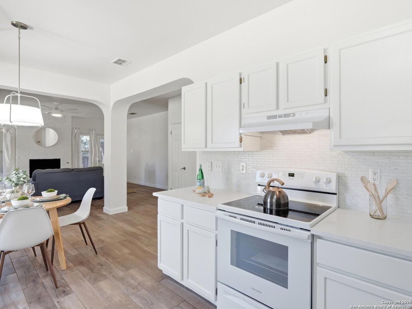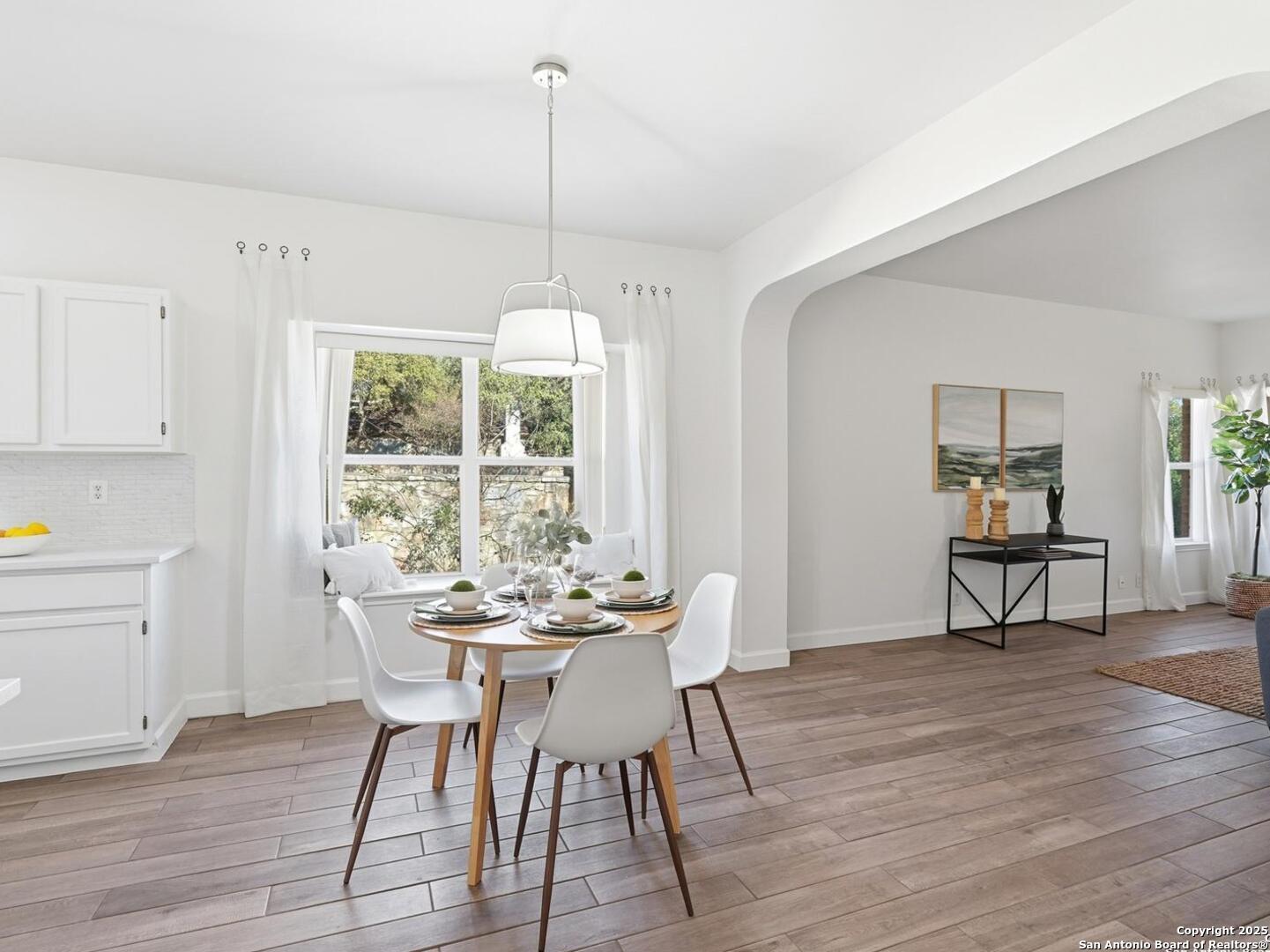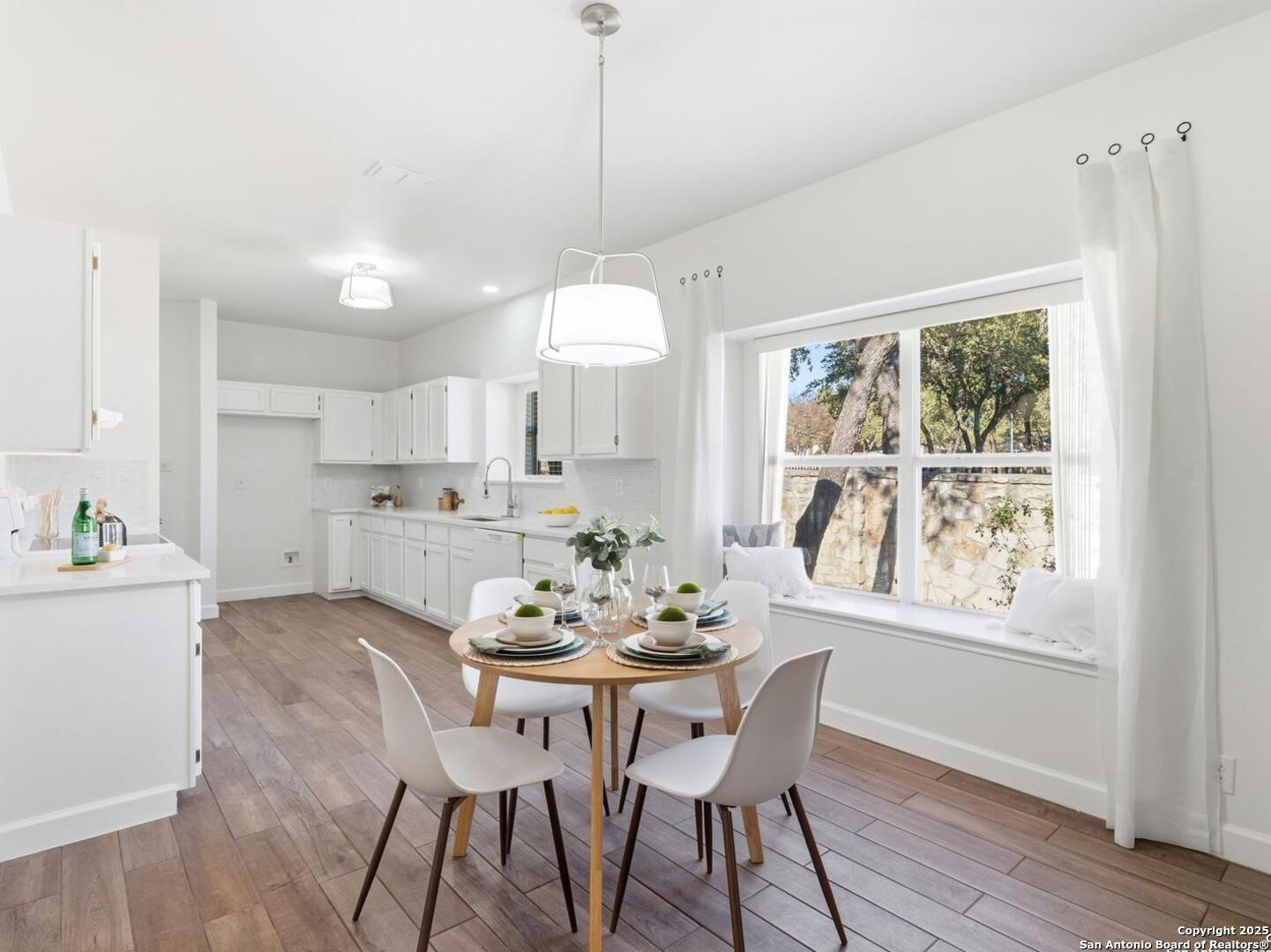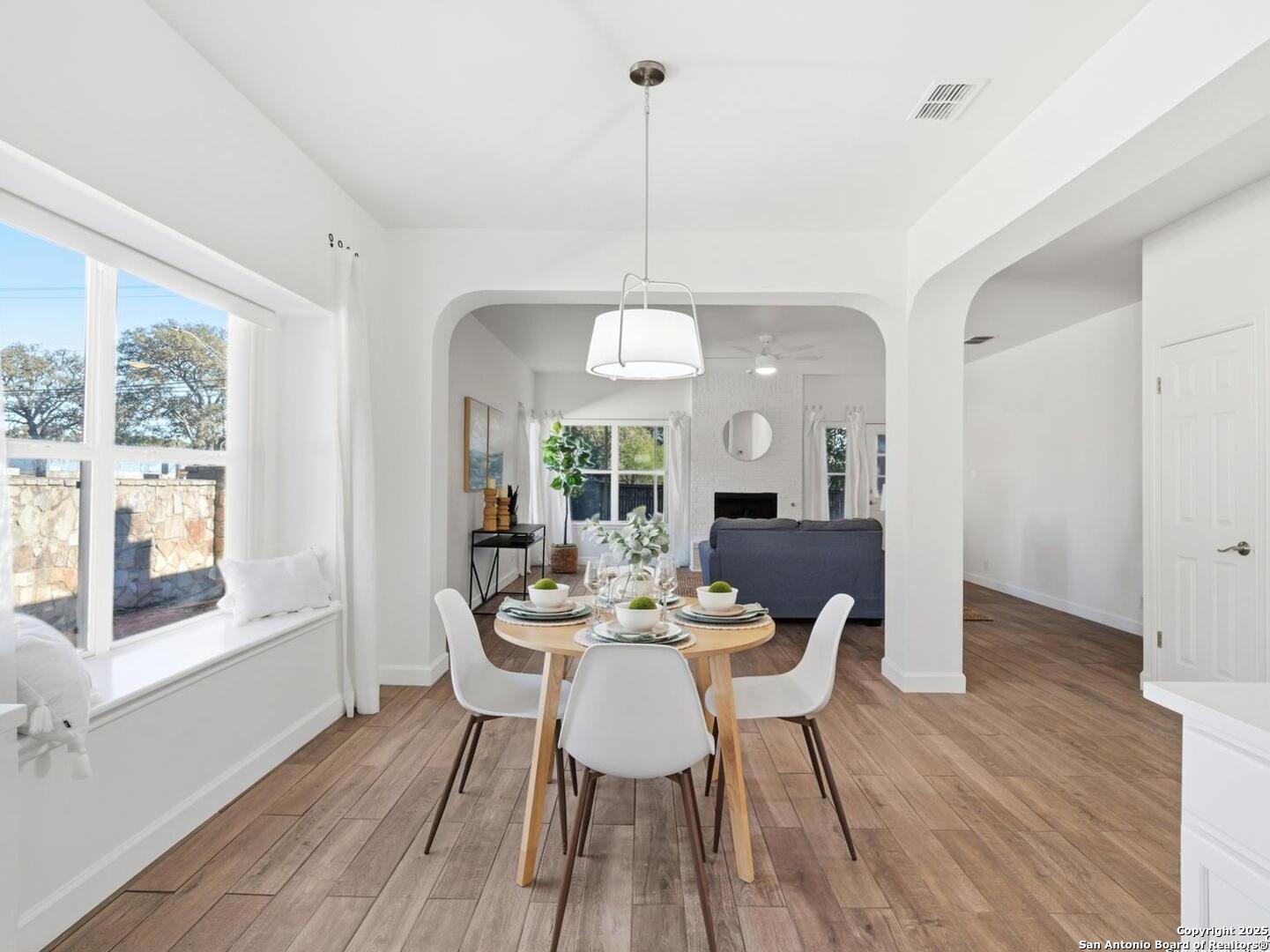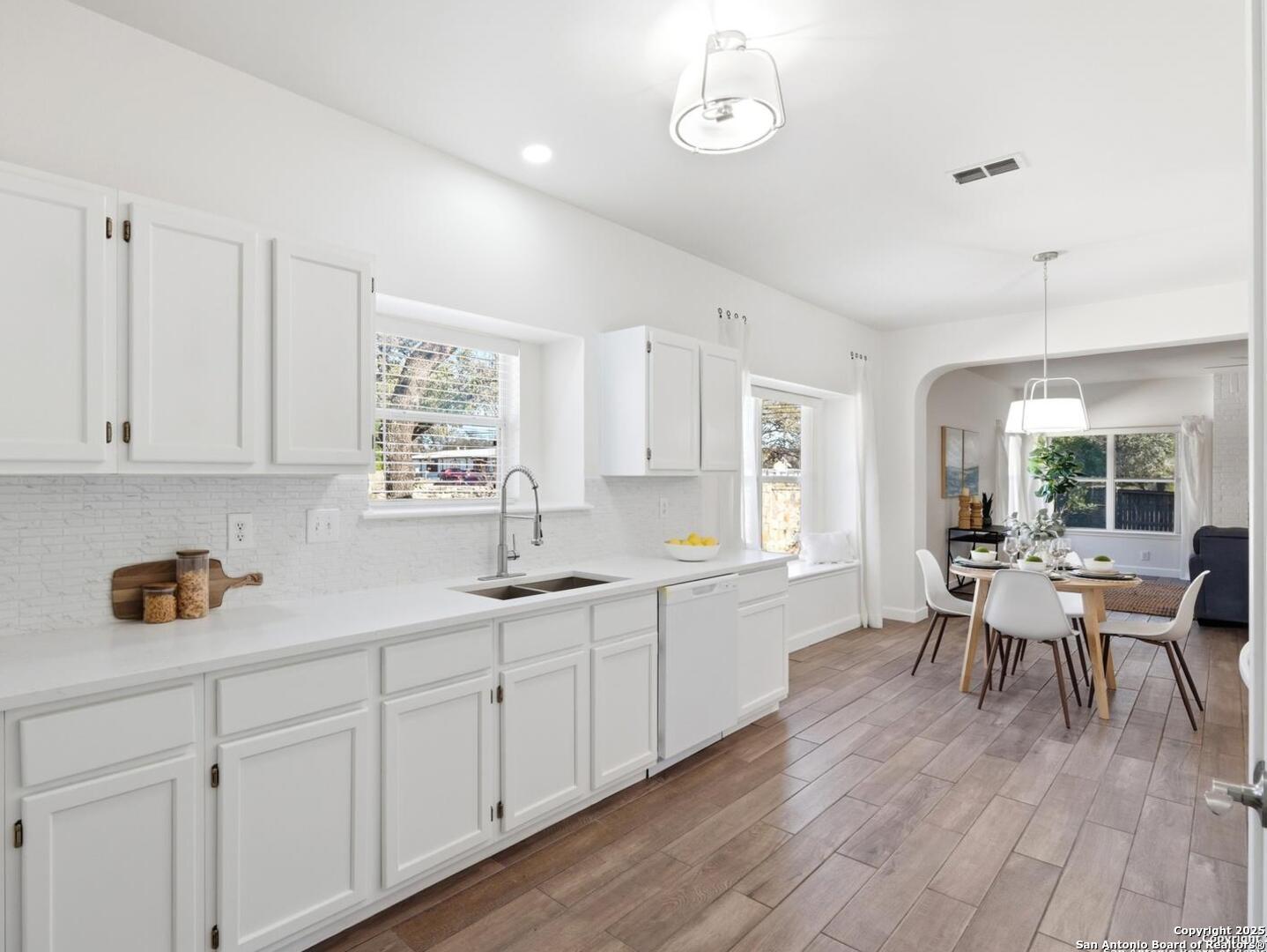 OPEN SAT JAN 3RD 12-2! Charming 4 Bedroom/2 Bath home nestled inside Loop 1604, just off of Thousand Oaks and Henderson Pass. Renovated, new flooring, painted interior and exterior, quartz countertops throughout, new fixtures, and so much more. The floor plan blends modern style with an open layout that is great for entertaining and family gatherings. Included is a formal living room and or dining room, which could double as a home office. The kitchen has plenty of cabinets for storage, white appliances, modern backsplash for a clean and neutral look. The living room features tall ceilings, many windows, and a fireplace. Included is an enclosed patio, a composite deck and extra storage. This home is situated on a corner lot!!! Perfect for a first time buyer! The community is gated, for added privacy.