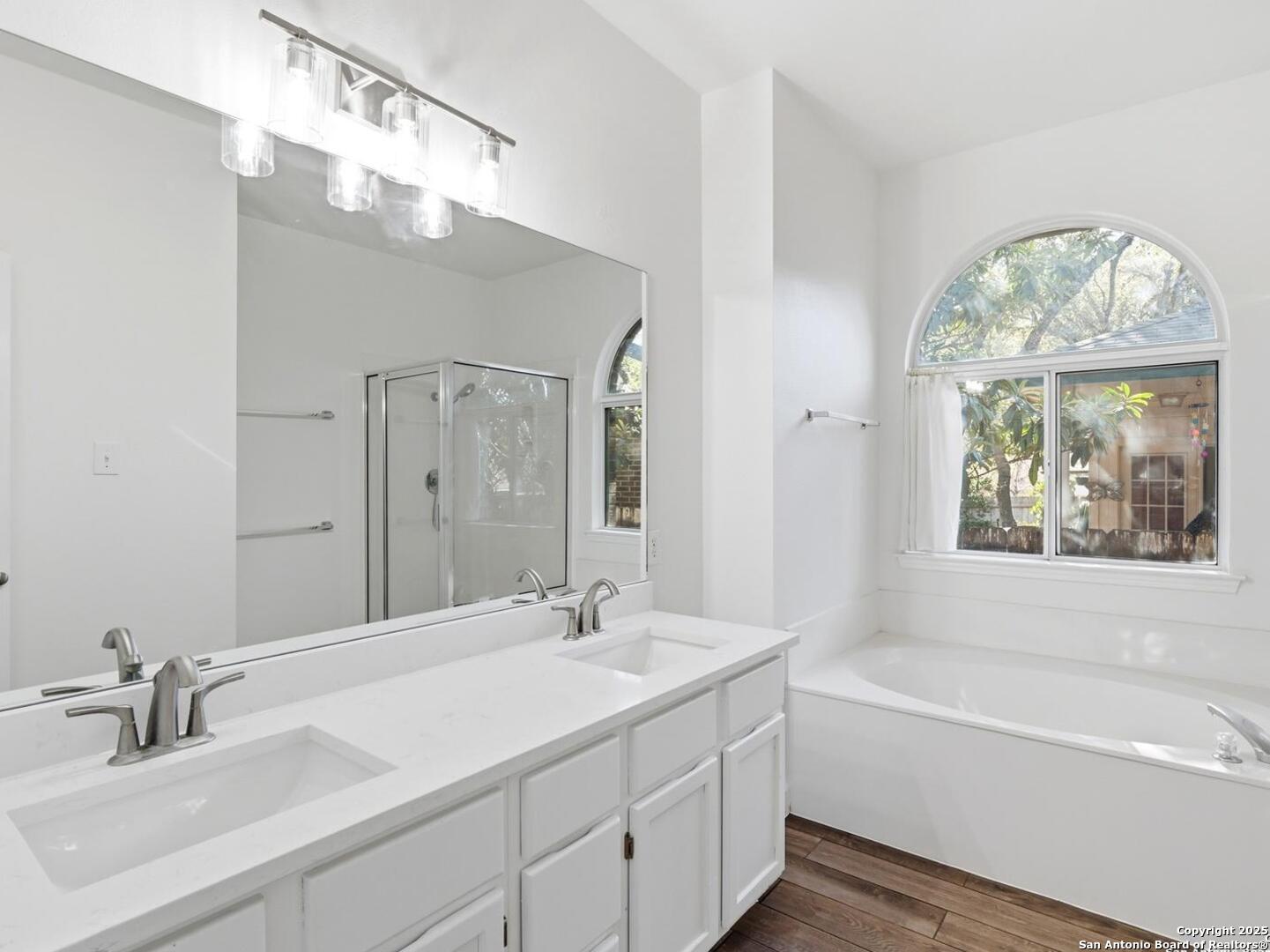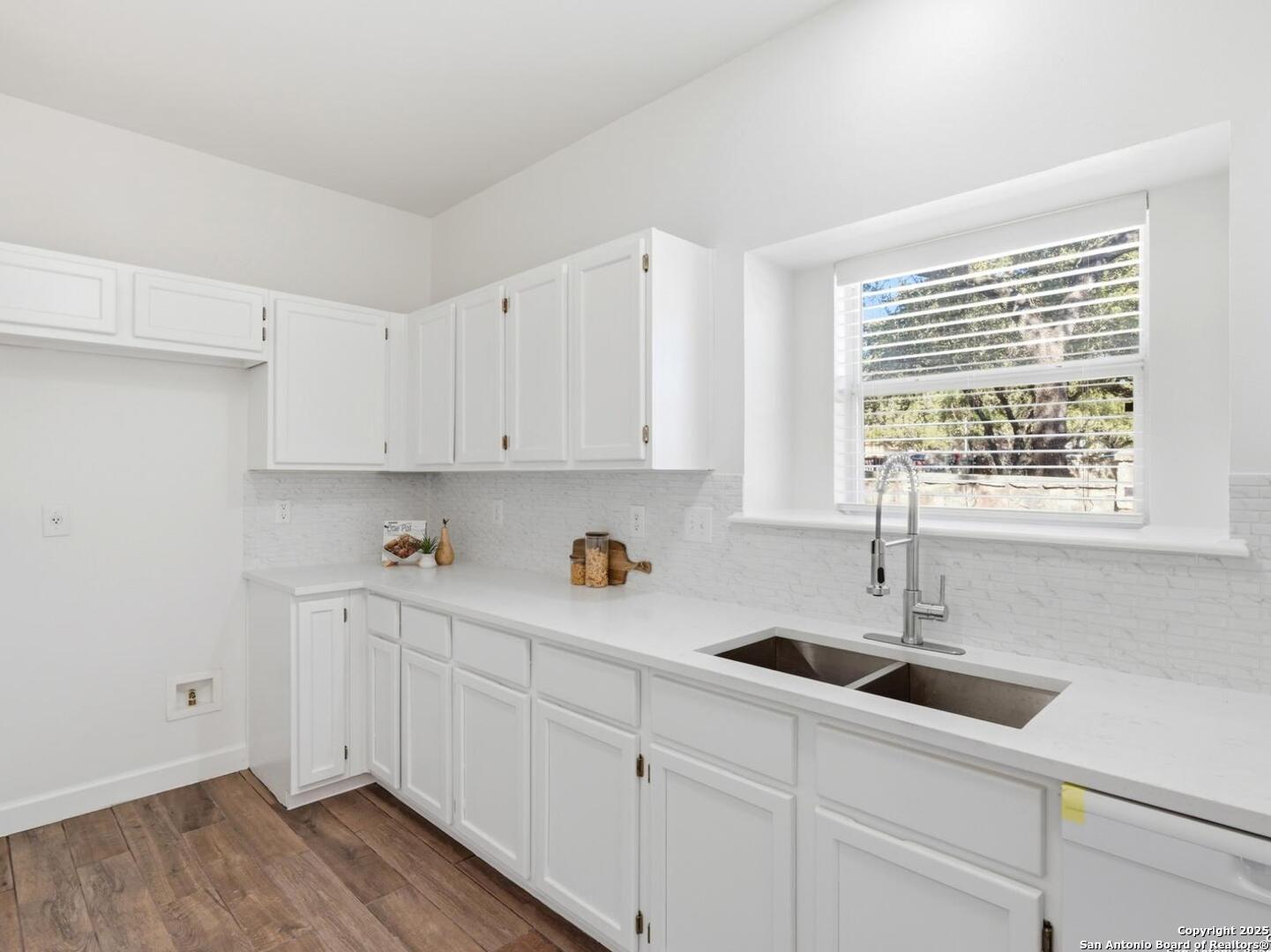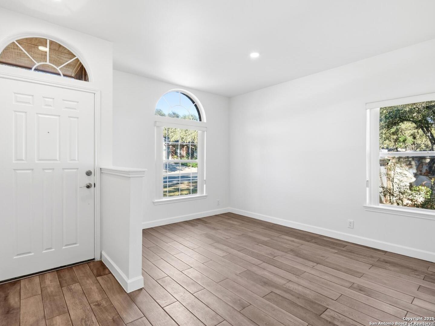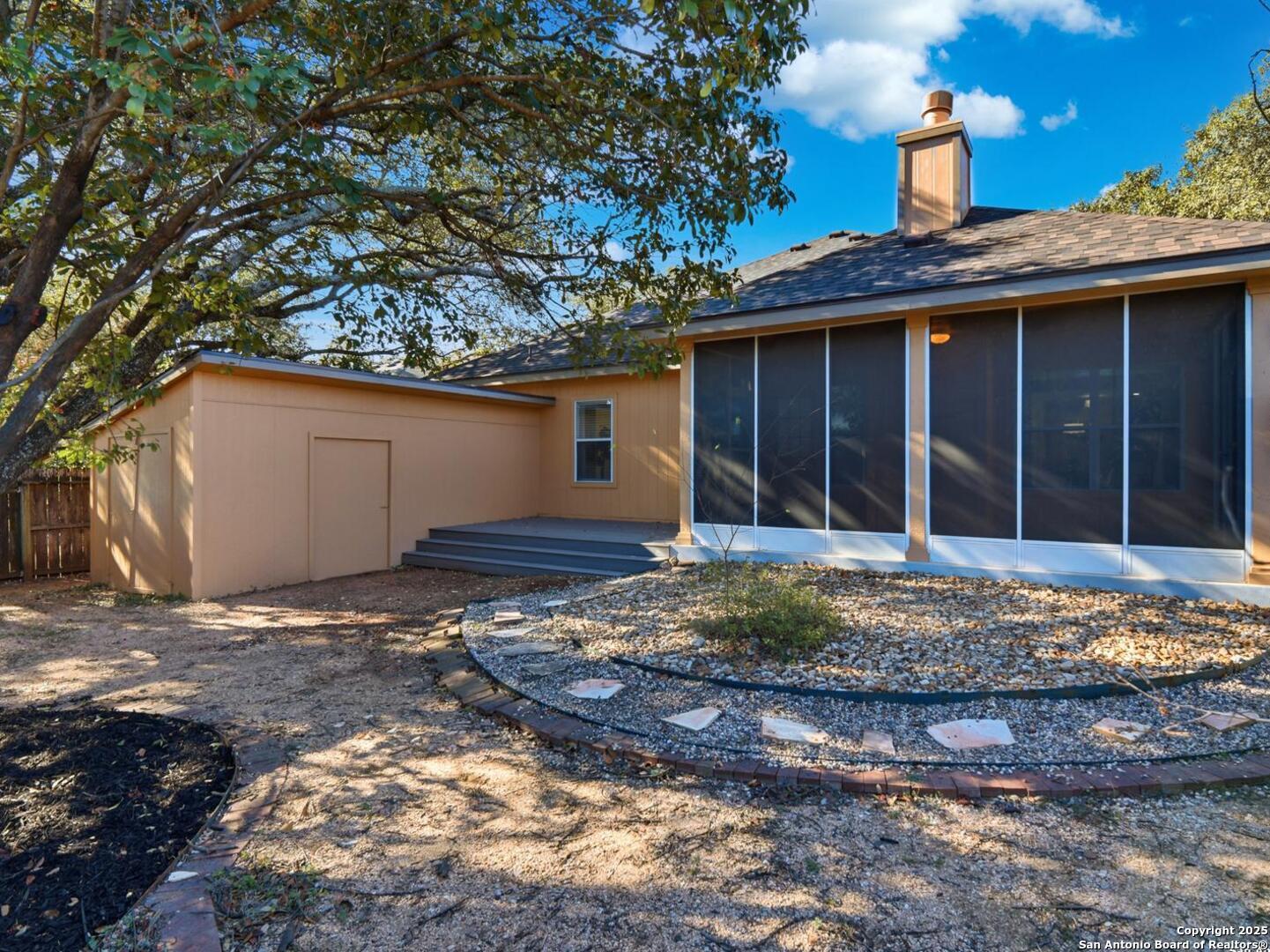 OPEN SAT JAN 3RD 12-2! Charming 4 Bedroom/2 Bath home nestled inside Loop 1604, just off of Thousand Oaks and Henderson Pass. Renovated, new flooring, painted interior and exterior, quartz countertops throughout, new fixtures, and so much more. The floor plan blends modern style with an open layout that is great for entertaining and family gatherings. Included is a formal living room and or dining room, which could double as a home office. The kitchen has plenty of cabinets for storage, white appliances, modern backsplash for a clean and neutral look. The living room features tall ceilings, many windows, and a fireplace. Included is an enclosed patio, a composite deck and extra storage. This home is situated on a corner lot!!! Perfect for a first time buyer! The community is gated, for added privacy.