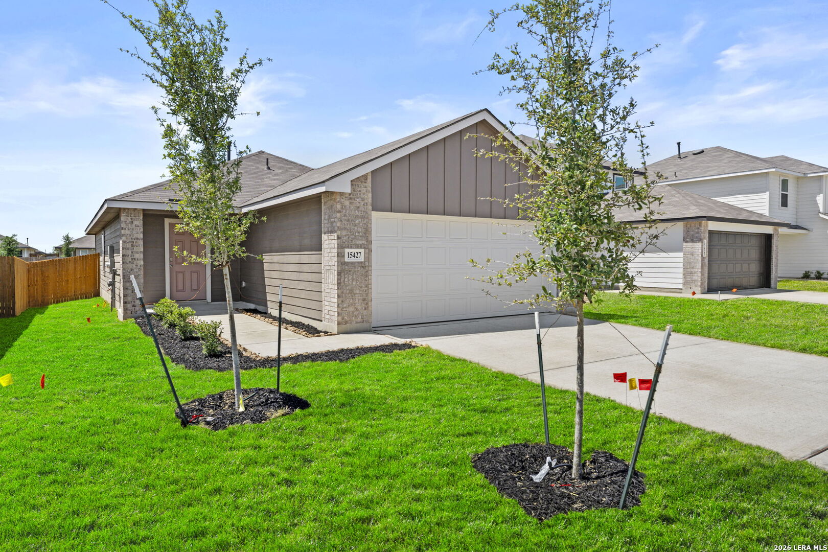 *Seller is willing to assist with closing costs or a rate buy-down through preferred lender with an acceptable offer. The Barton is a charming one-story home featured at Preserve at Medina in Von Ormy, TX. Featuring 2 classic front exteriors, this 3 bedroom, 2 bathroom home also offers 1281 square feet of living space and a 2-car garage. A front porch welcomes you into the home and opens to the gourmet kitchen which includes quartz counter tops, quality cabinets, stainless steel appliances and an open concept floorplan with the kitchen flowing seamlessly into the dining room and living room. The main bedroom has an attractive ensuite bathroom that features a quartz vanity countertop and quality cabinetry. Enjoy additional storage with a spacious walk-in closet located off of the primary bathroom. Your secondary bedrooms all feature quality carpet flooring and a closet, and can be used as bedrooms, offices, work out spaces or other bonus rooms. The possibilities are endless with The Barton floor plan. Additional features include sheet vinyl flooring in entry, living room, and all wet areas, quartz counter tops in all bathrooms and HOME IS CONNECTED base package. Using one central hub that talks to all the devices in your home, you can control the lights, thermostat and locks, all from your cellular device.