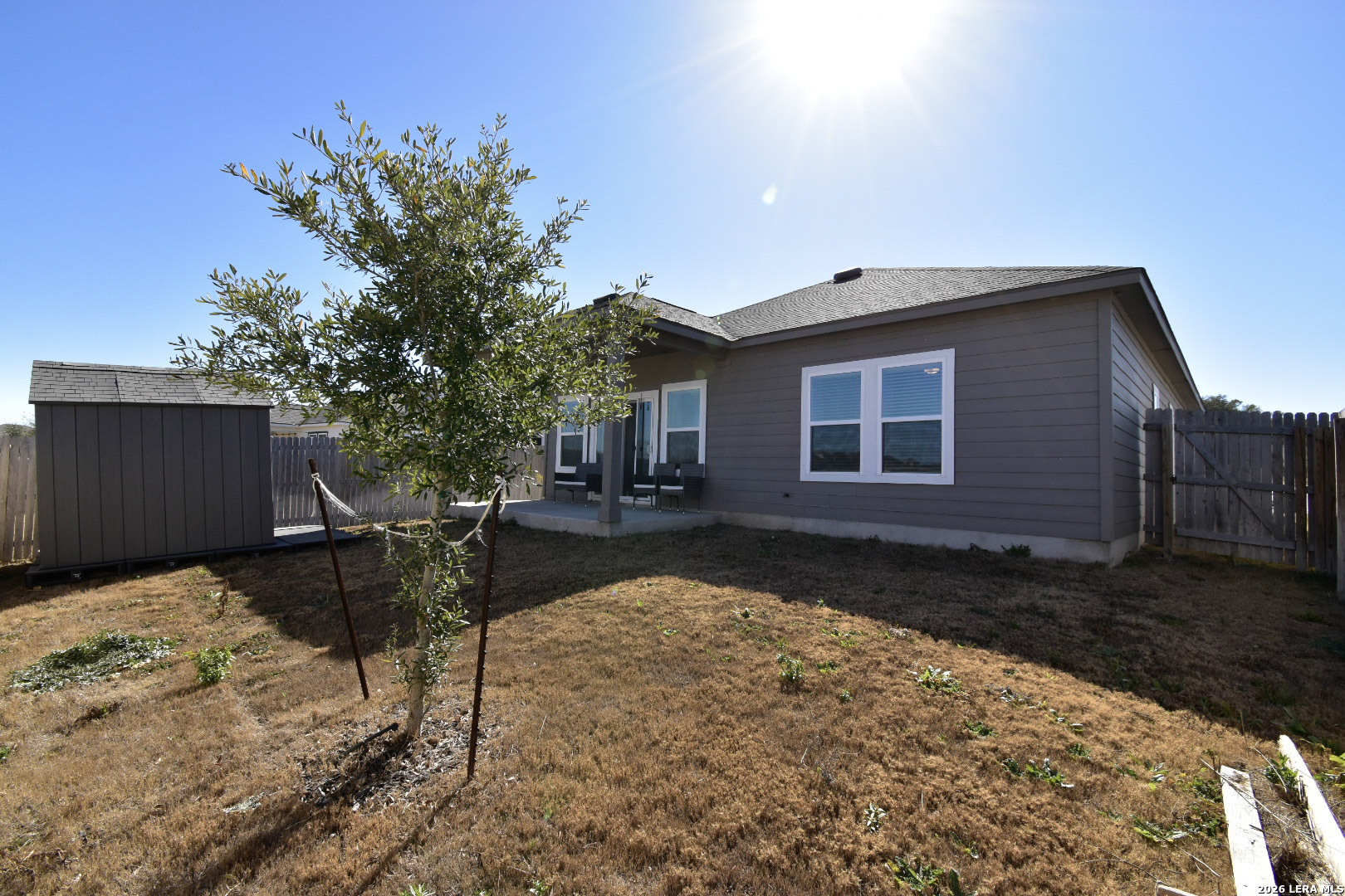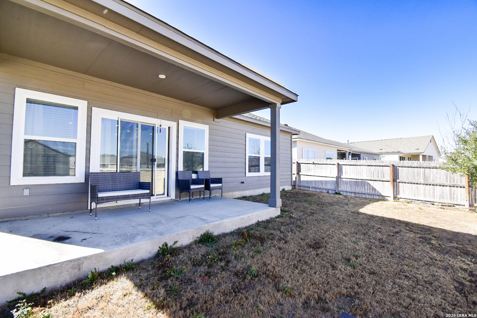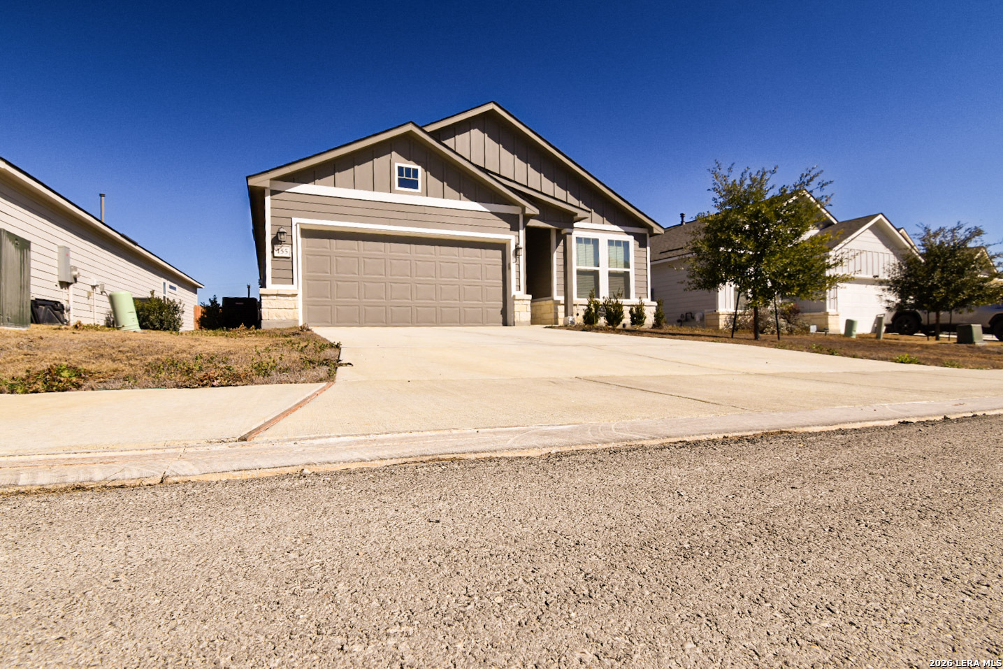 Welcome to 155 Connor Creek, a beautifully designed 2023 one-story home located in the highly desirable Hunters Ranch community in Medina County. This thoughtfully laid out 1,965 square foot residence offers four spacious bedrooms, two full bathrooms, an open-concept living, dining, and kitchen area ideal for everyday living and entertaining. The island kitchen features solid countertops, custom cabinetry, gas cooking, walk-in pantry, and seamless flow into the family room. For the kitchen and cooking enthusiasts, prepared to be wow'ed by the massive and very unique pantry! The private primary suite offers a generous walk-in closet, dual vanity, and oversized shower. Secondary bedrooms are well-separated for added comfort and flexibility. Enjoy a covered patio overlooking a fully sodded yard complete with irrigation system and privacy fencing. Everything in this home screams quality- from the uniquely designed layout, to the finished garage spaces, you will undoubtedly be impressed with the quality at a cost of such affordability. Energy-efficient features include HERS rating, radiant barrier, double pane windows, programmable thermostat, and 13-15 SEER HVAC. Hunters Ranch amenities include pool, clubhouse, park/playground, jogging trails, sports courts, and BBQ areas. Located within Medina Valley ISD and conveniently accessible to Potranco Rd, major employers, and growing retail corridors. Short sale - subject to lender approval. Home is being sold as-is. Buyer to verify all measurements, schools, and HOA information.