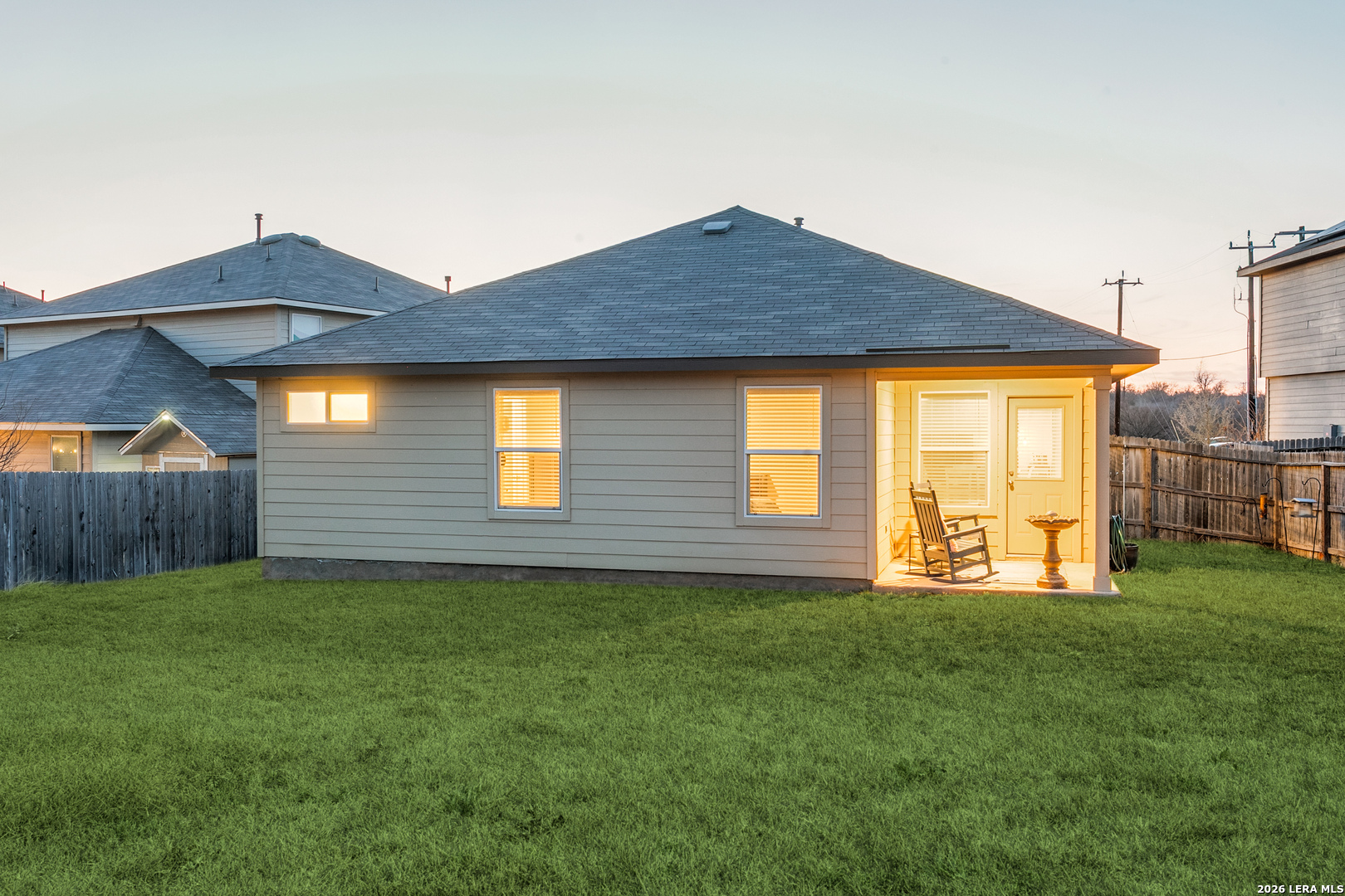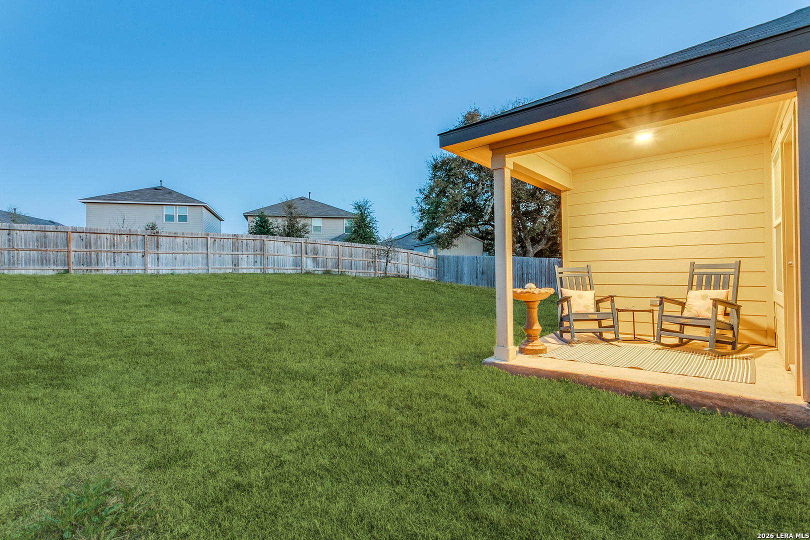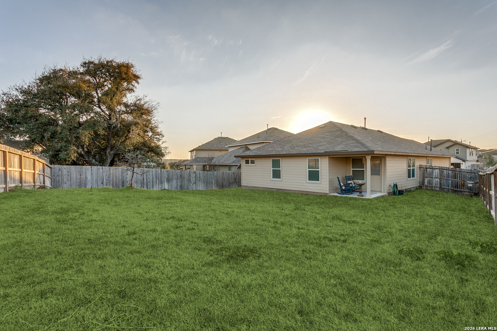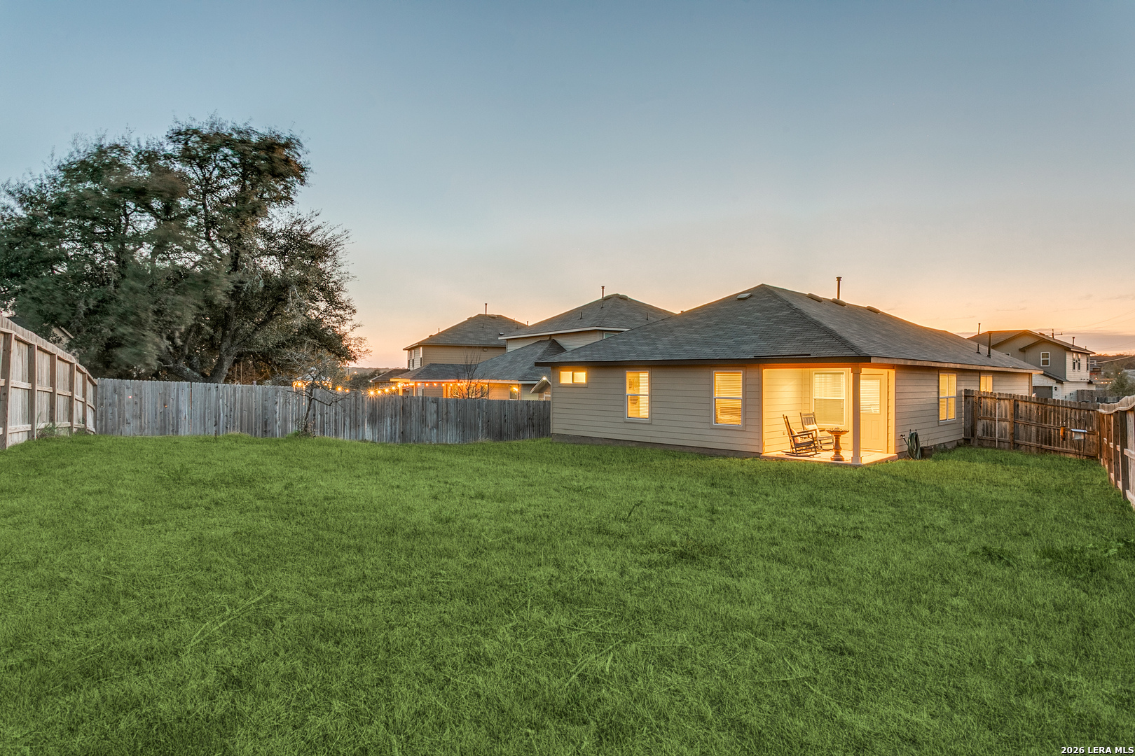This beautifully maintained single-story home in Redbird Ranch offers a well-designed layout with 4 bedrooms, 2 bathrooms, and 1,898 square feet of comfortable living space. The open-concept floor plan creates a natural flow between the living, dining, and kitchen areas, enhanced by high ceilings and luxury vinyl plank flooring throughout the main living spaces. The kitchen is both functional and inviting, featuring an oversized island with breakfast bar seating, granite countertops, subway tile backsplash, stainless steel appliances, and gas cooking. The primary suite is privately positioned at the back of the home and includes a spacious walk-in closet and an ensuite bath with dual vanities, a garden tub, separate walk-in shower, and private water closet. Secondary bedrooms are well-sized and offer flexibility for a variety of needs. Additional features include a dedicated laundry room, attached 2-car garage, water softener, refrigerator, full sprinkler system, and ceiling fans in select areas to enhance comfort. The covered patio overlooks a generously sized backyard with ample space for outdoor enjoyment, entertaining, or personal customization. Located within Medina Valley ISD with convenient access to Potranco Rd and SH-211, the home is near shopping, dining, and major employers including Lackland Air Force Base. Redbird Ranch offers a variety of community amenities including pools, parks, playgrounds, sports courts, and walking and biking trails. The home also includes the remaining builder 10-year structural warranty, providing added peace of mind.