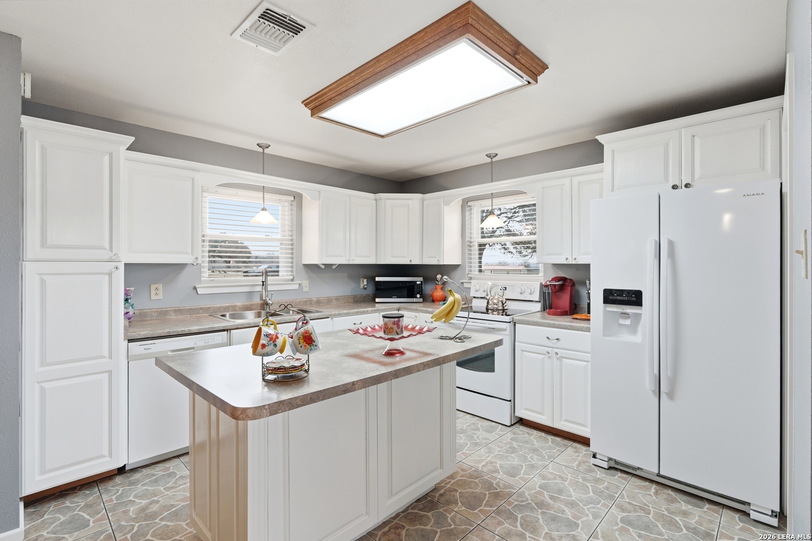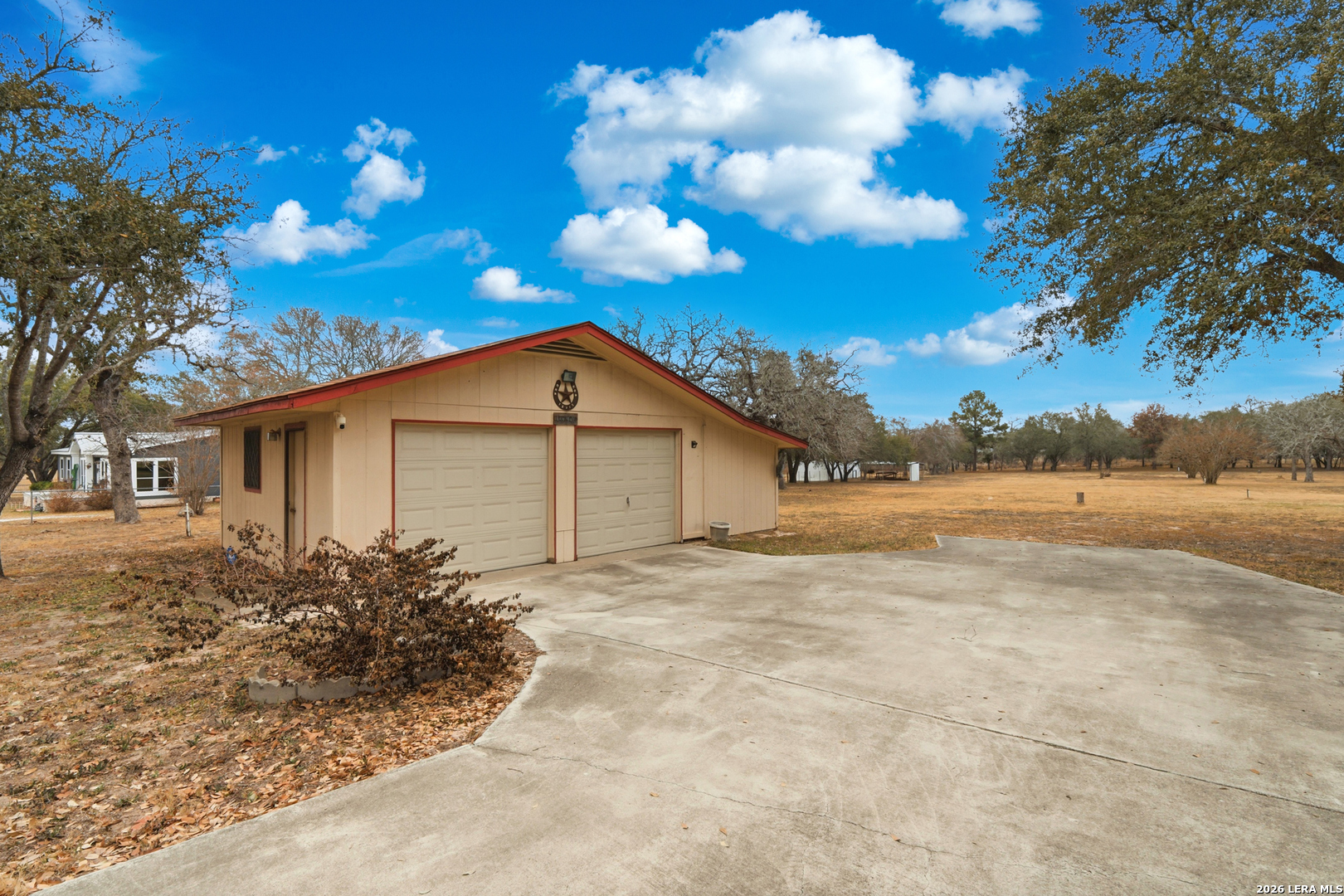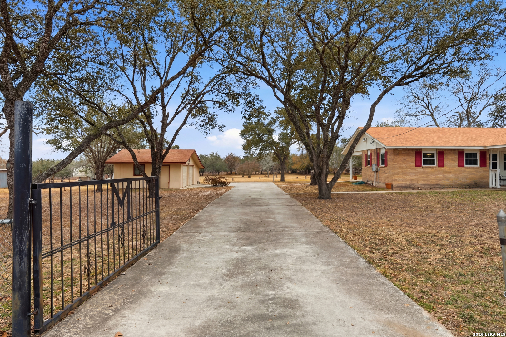 Discover the perfect blend of charm, comfort, and natural beauty in this 1,309 sq. ft. brick home featuring 3 bedrooms and 1.5 baths. Situated on a sprawling 2.765 acre mature tree lined lot, this property offers space, privacy, and tranquility just minutes from town. Recent updates include fresh interior paint, new flooring, and a beautifully tiled walk in shower. The detached garage includes an attached workshop, plus an additional flex space with window unit climate control, ideal for a home office, gym, or hobby room. Enjoy a gorgeous expansive backyard perfect for relaxing or entertaining, surrounded by mature shade trees and enhanced by pecan trees. Additional features include, concrete driveway with decorative gate, and no HOA. Located only minutes from the highly sought after La Vernia ISD and local amenities. Whether you are seeking peaceful country living, room to grow, or a versatile investment opportunity, this property offers endless possibilities. Do not miss your chance to make this unique retreat your own.