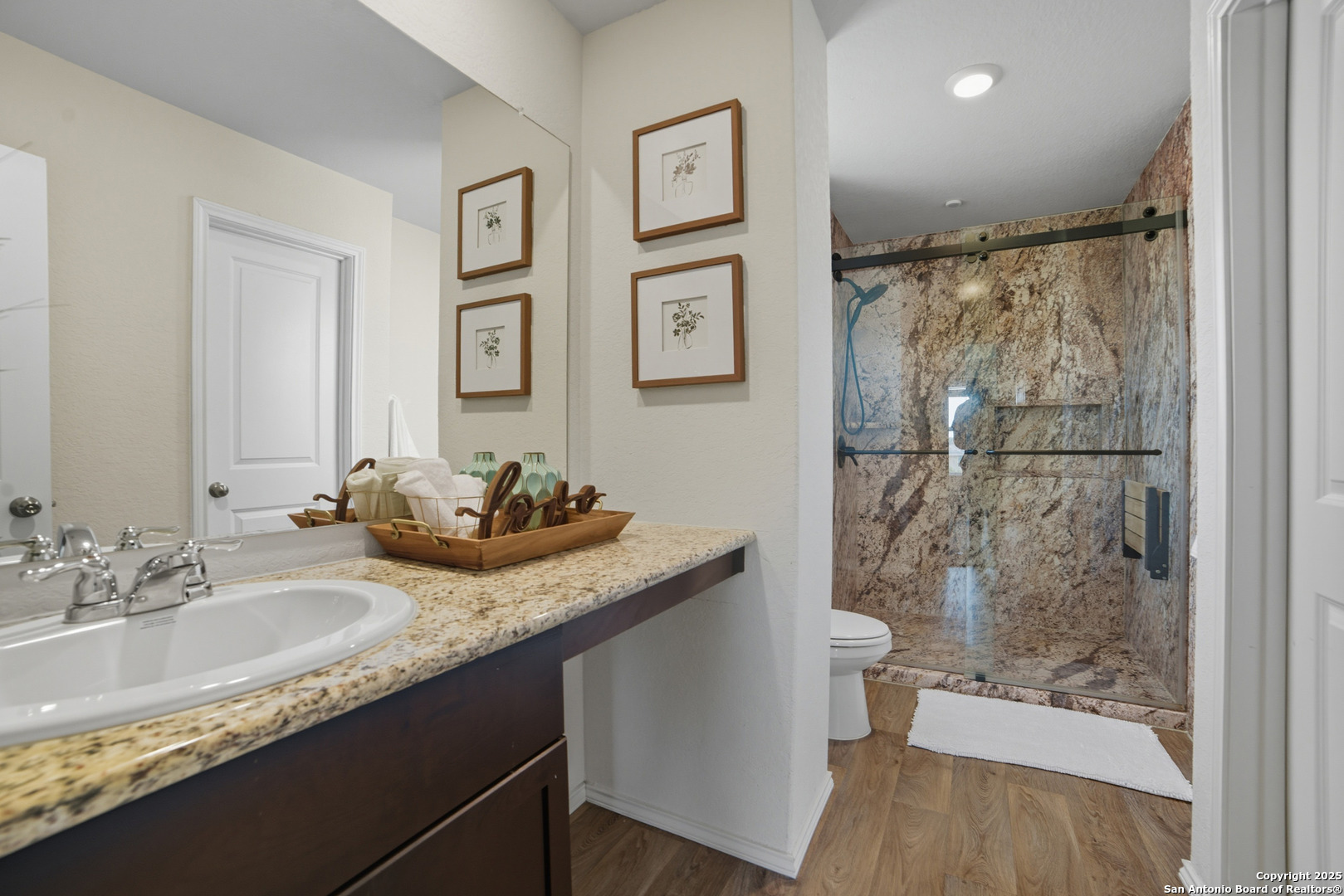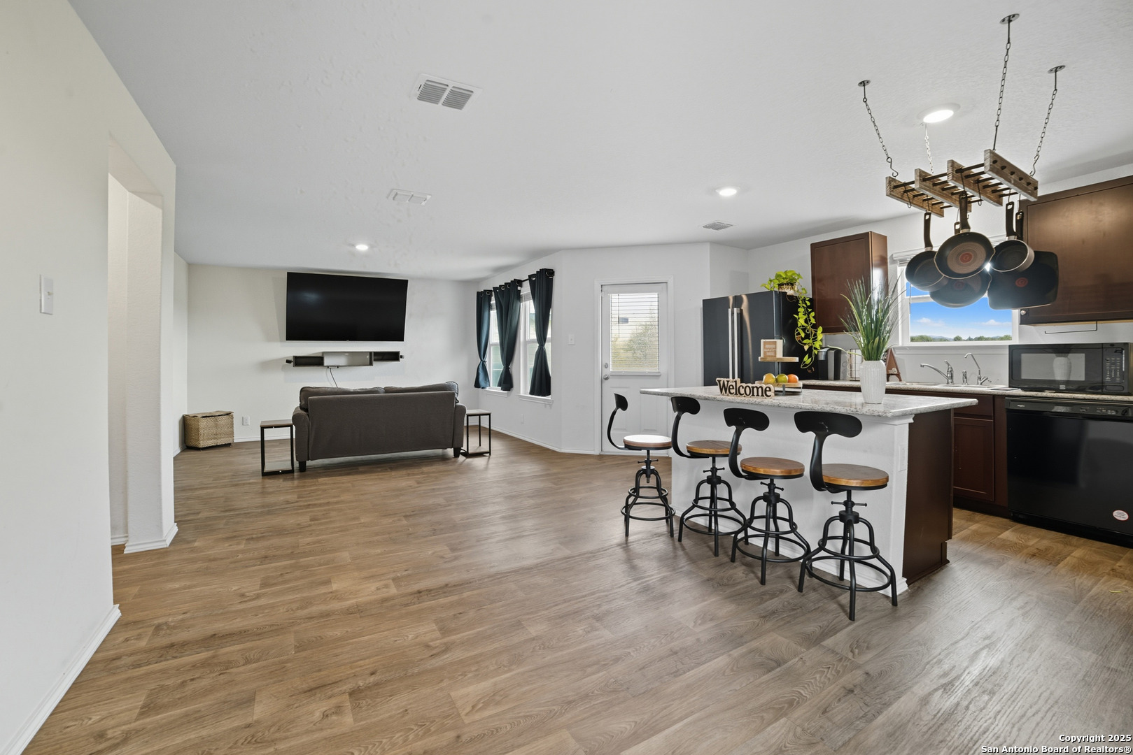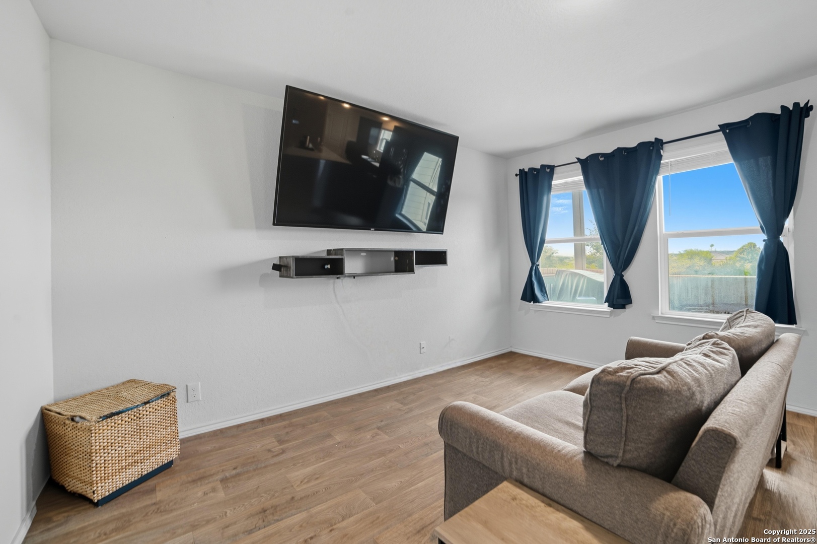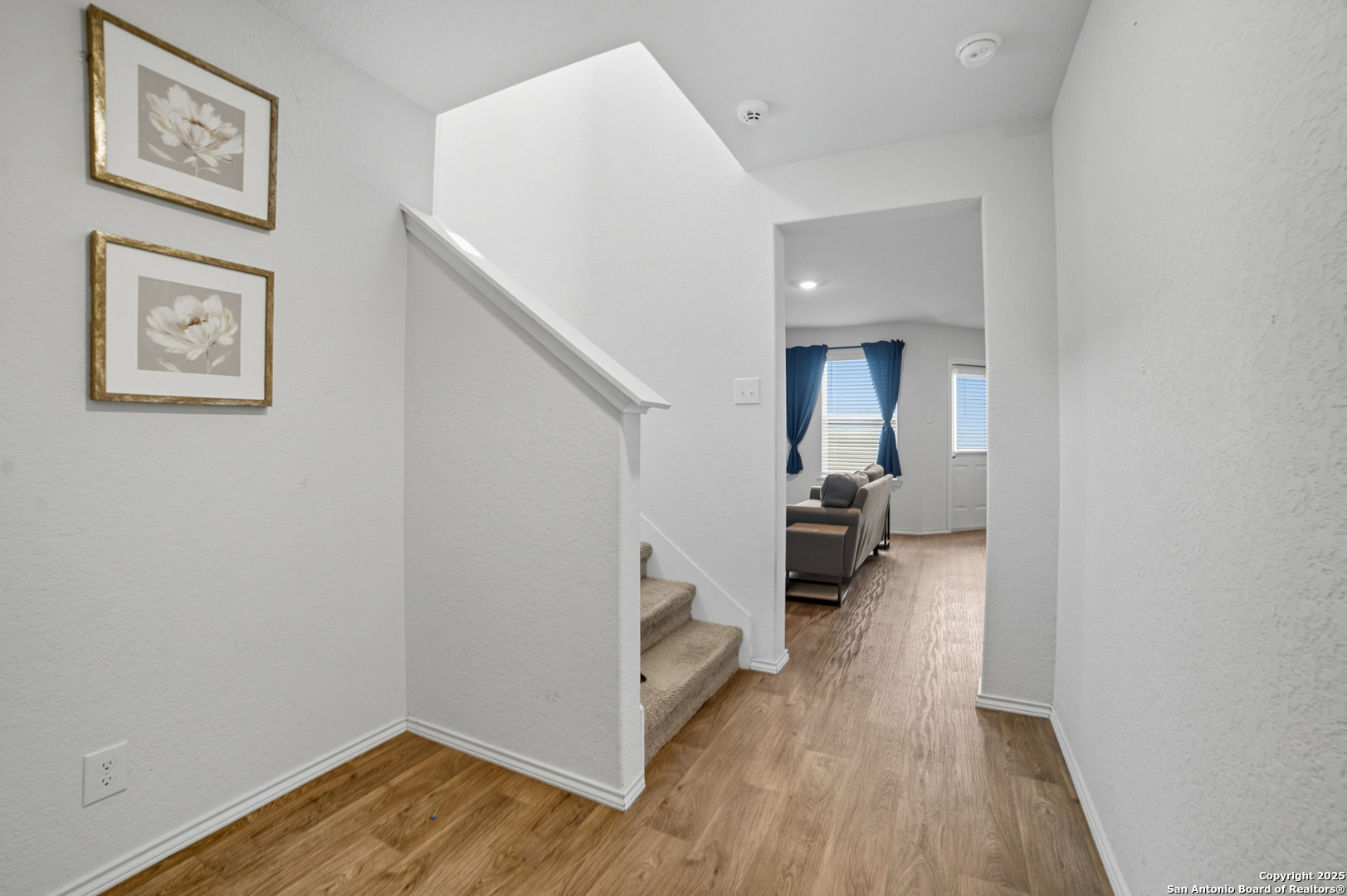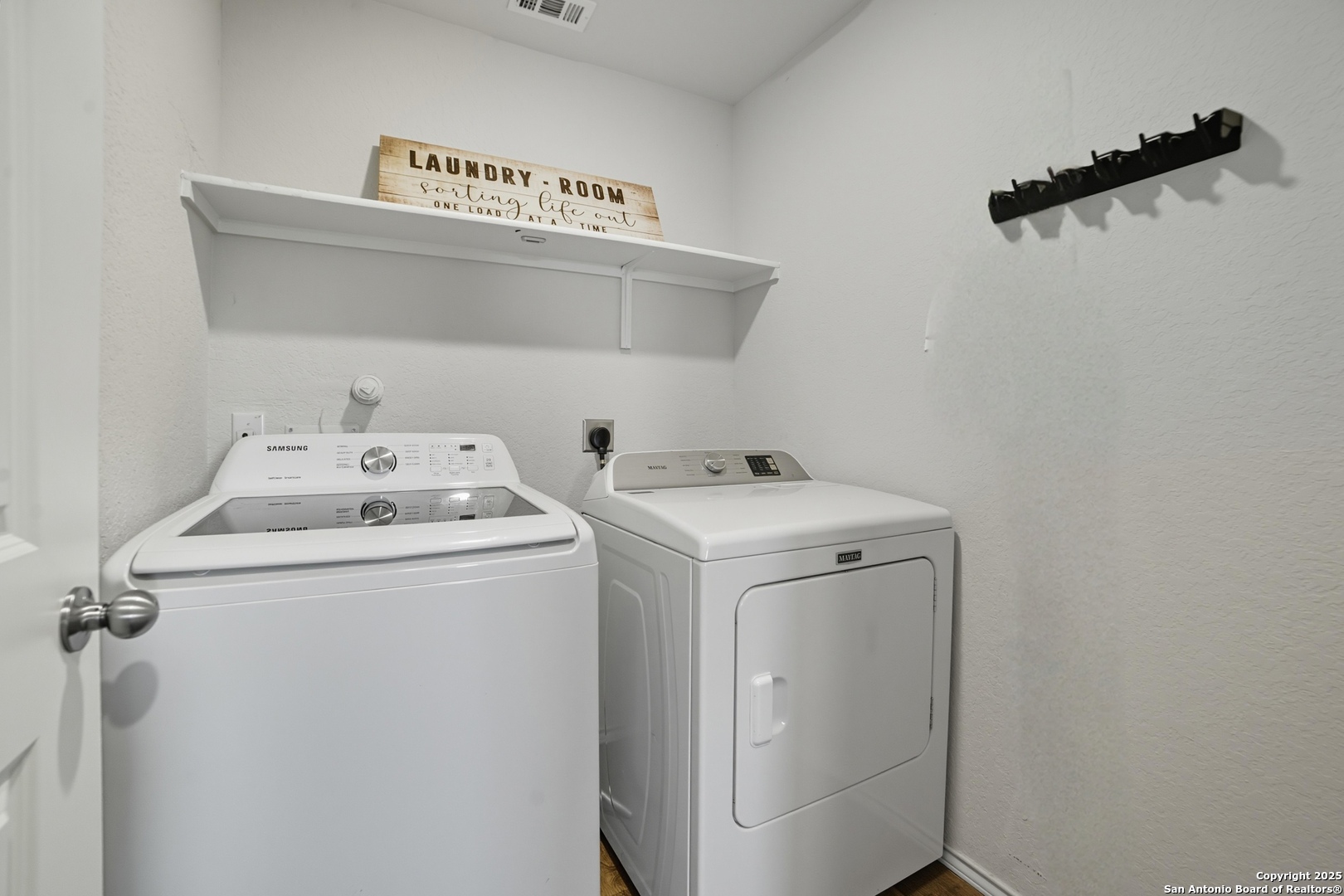 This charming two-story home offers 1,625 sq. ft. with 3 bedrooms, 2.5 bathrooms, and a smart, family-friendly layout. The open living area flows into the kitchen and dining space, complete with a large island, granite countertops, and access to a covered patio and backyard. A utility room connects to the garage, and extra storage is available under the stairs. Upstairs features a spacious loft/game room, a private primary suite, two secondary bedrooms, and a full bath. Smart home technology allows you to control lights, thermostat, and locks from your phone. Located in Redbird Ranch, just 20 minutes from Lackland AFB, the community includes two pools, park, and recreation area, on-site elementary school, lifestyle Director for events and activities. This home combines comfort, convenience, and community living in one of San Antonio's sought-after neighborhoods.