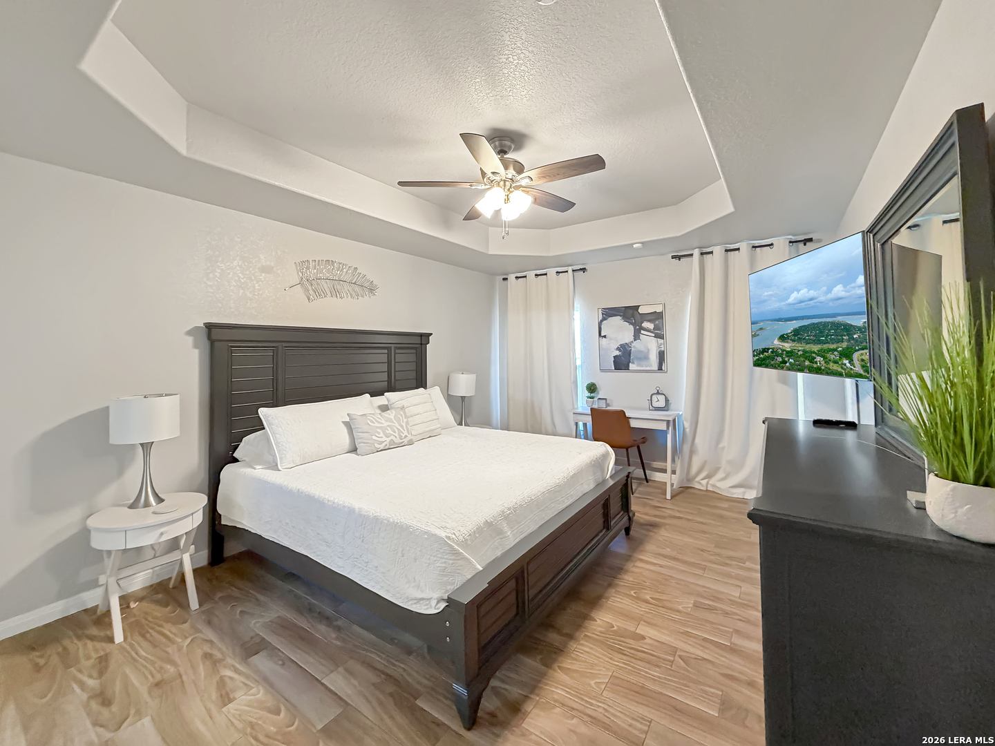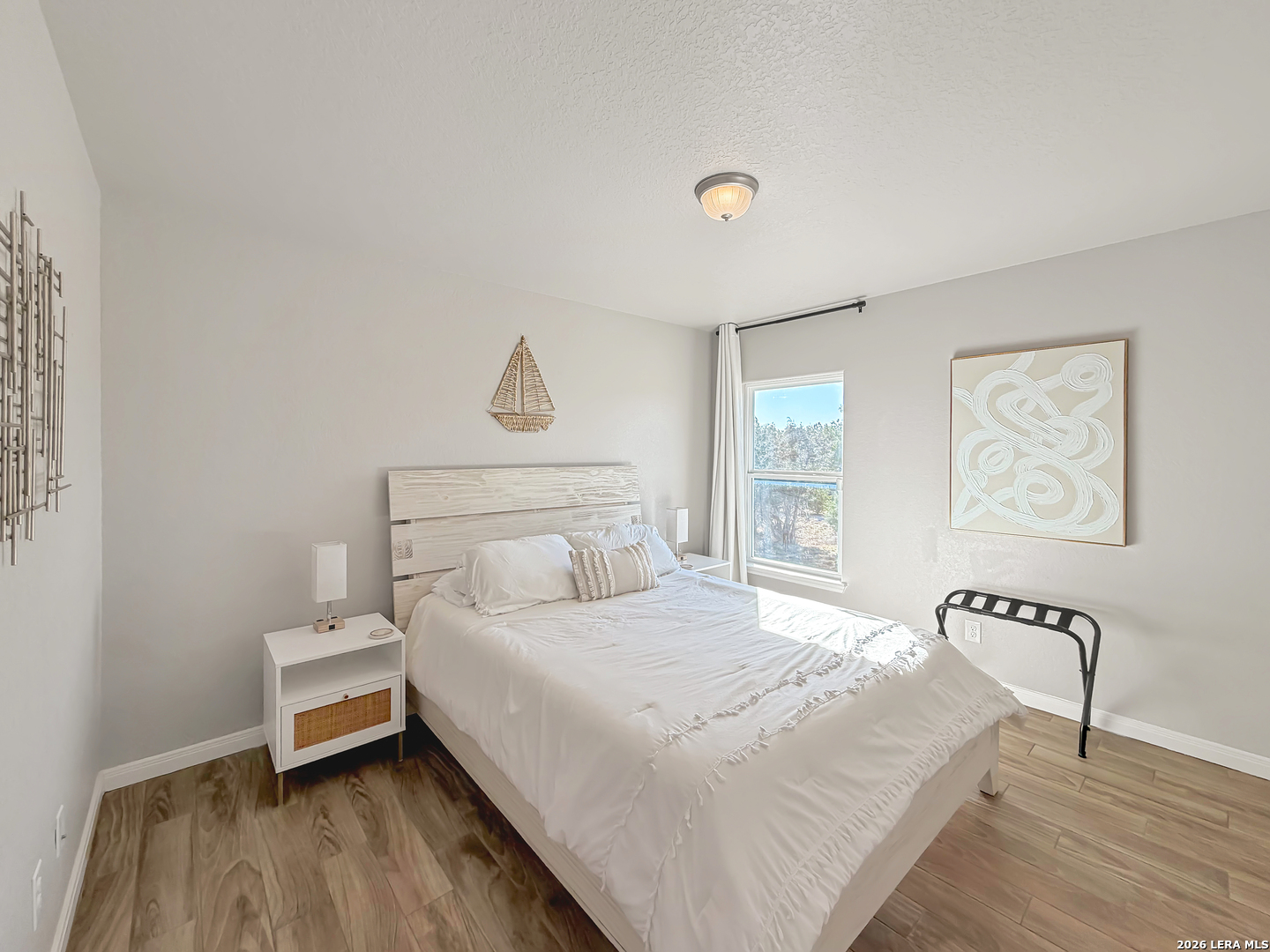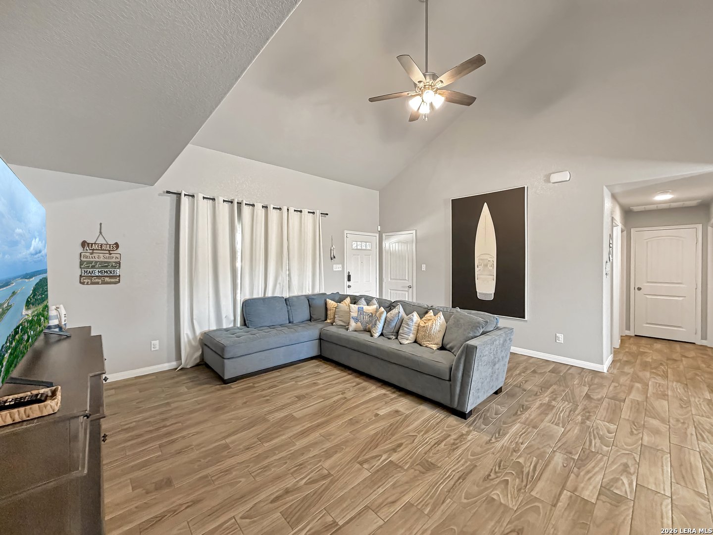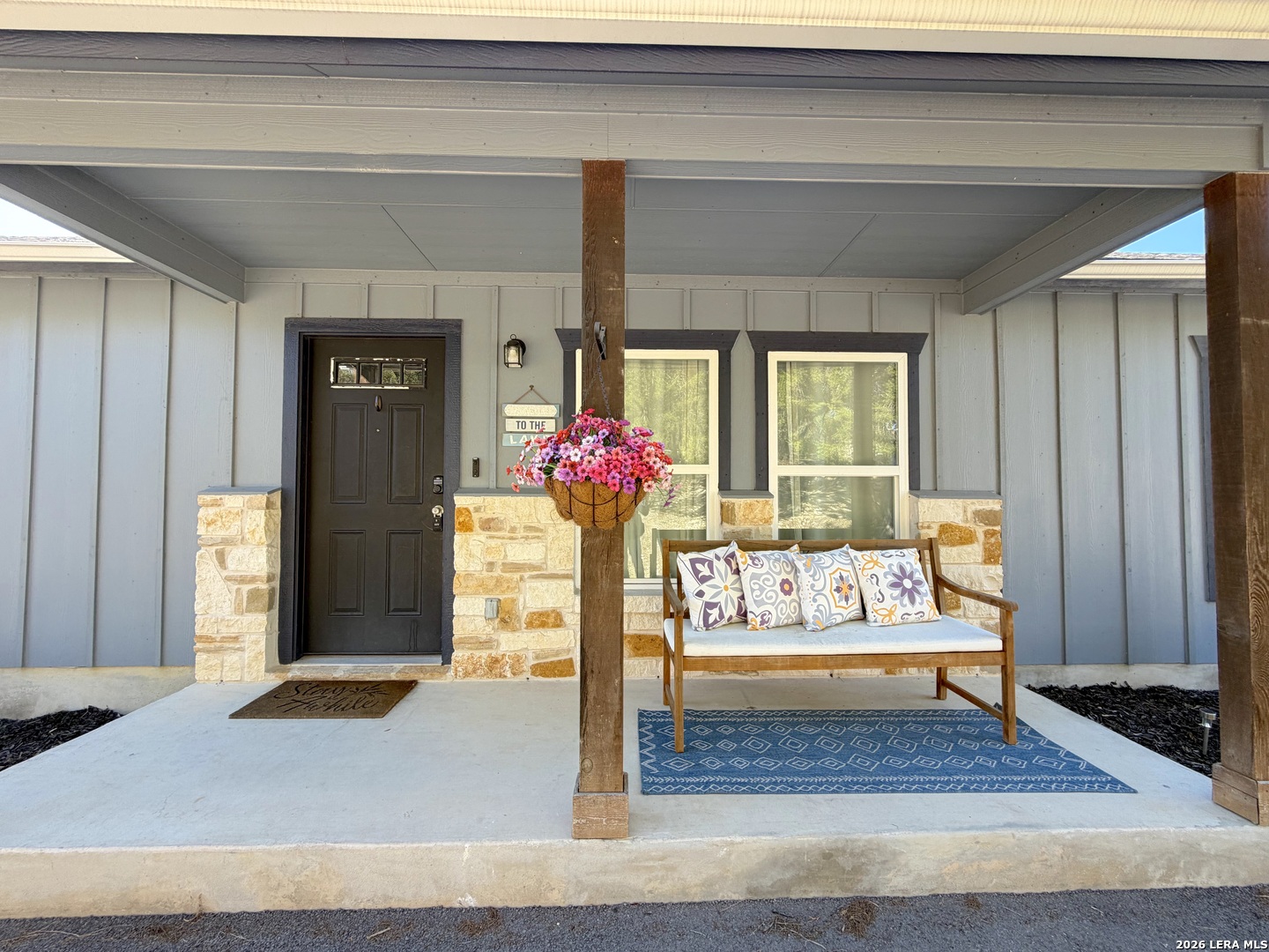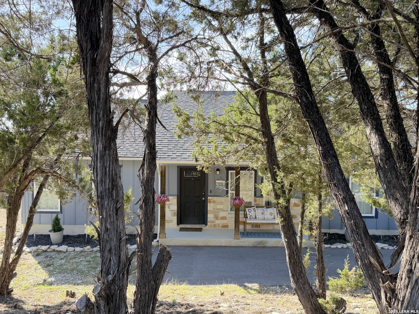 Experience effortless Hill Country living in this like-new 3-bedroom, 2-bath home on the desirable south side of Canyon Lake. Thoughtfully designed with an open-concept floor plan, this home offers seamless flow between the living, dining, and kitchen areas-ideal for both everyday comfort and entertaining. The spacious kitchen serves as the heart of the home, featuring generous counter space and an inviting layout that keeps you connected to family and guests. The private primary suite is strategically positioned on the opposite side of the secondary bedrooms, creating a peaceful retreat. A striking tray ceiling adds architectural character, while the en-suite bath includes dual vanities and a large walk-in closet for exceptional functionality. Step outside to a covered back porch overlooking a beautifully designed Xeriscape yard that provides privacy and low-maintenance living. The property backs to a scenic 34-acre ranch, offering a serene backdrop and added tranquility. Residents enjoy neighborhood amenities including a community pool, playground and clubhouse. Marina is only minutes down the road. Furnishings are available to remain for an additional fee, creating a convenient turnkey opportunity if desired.