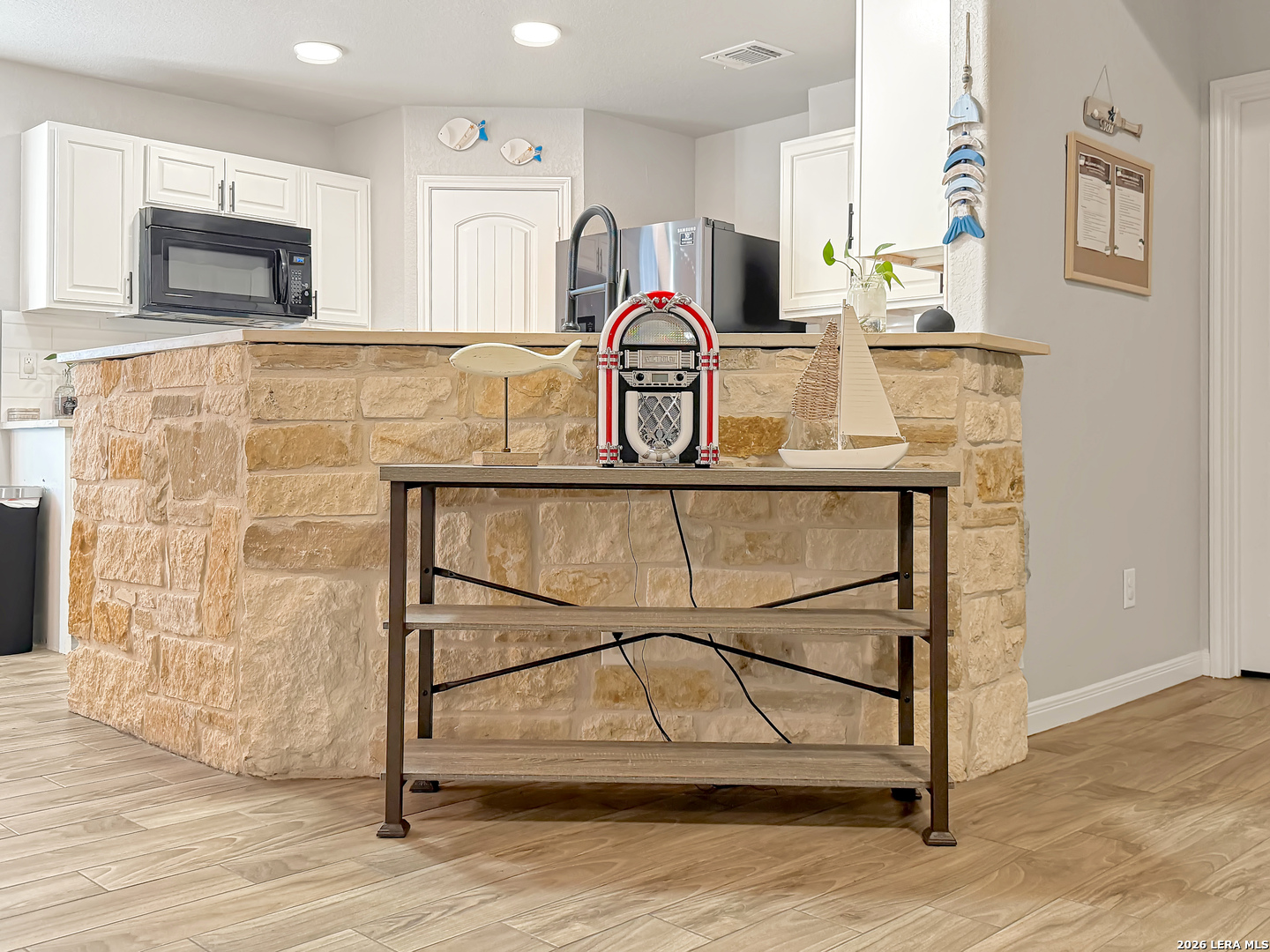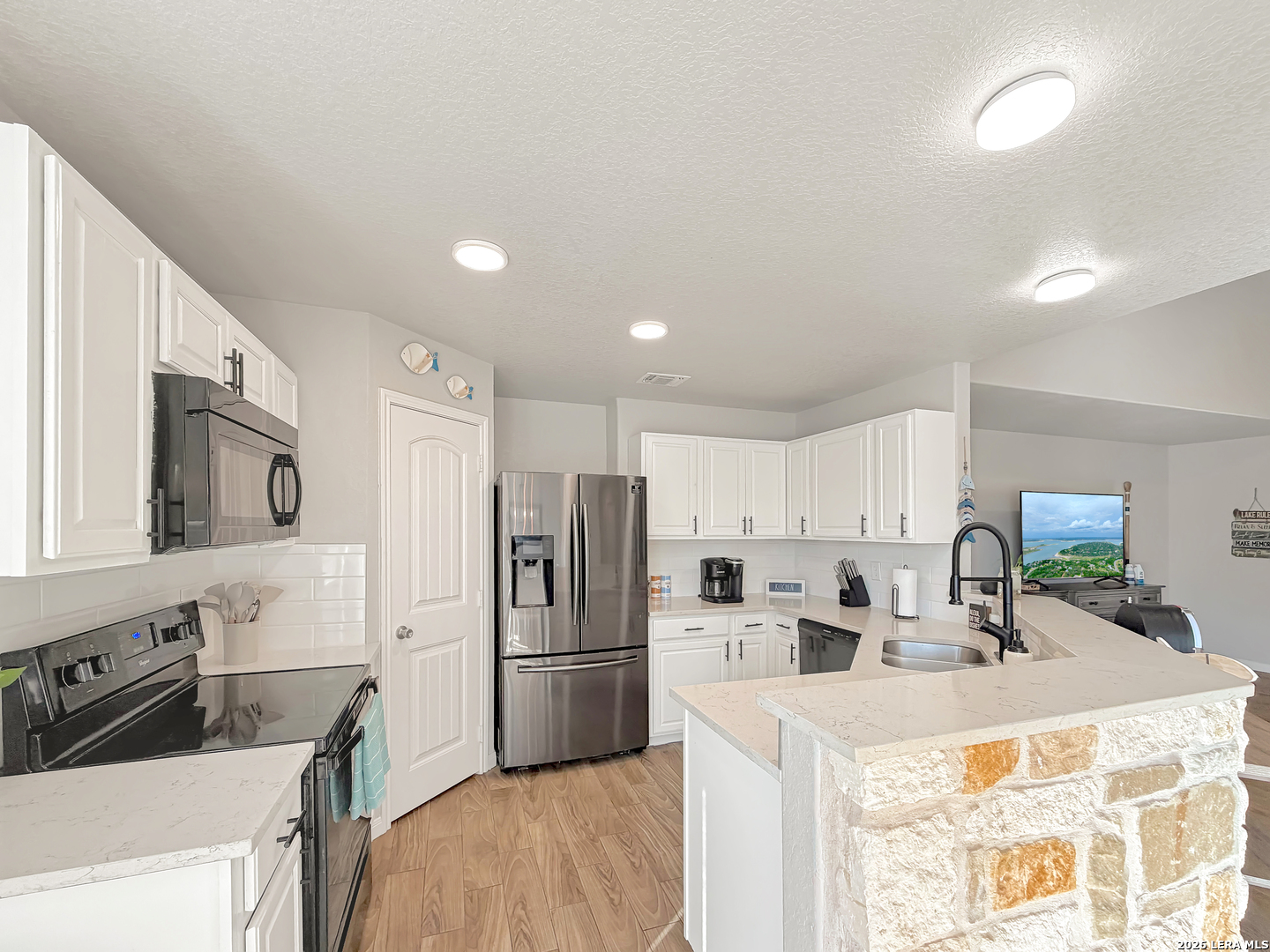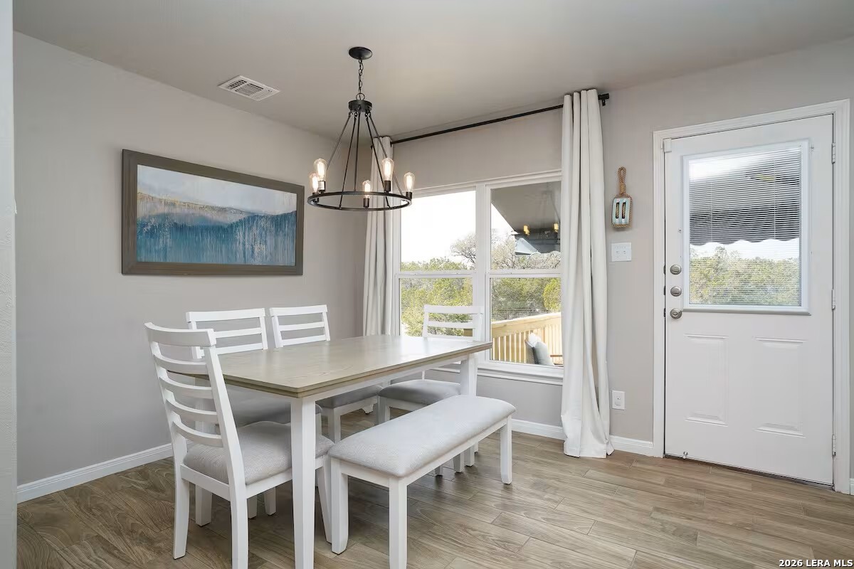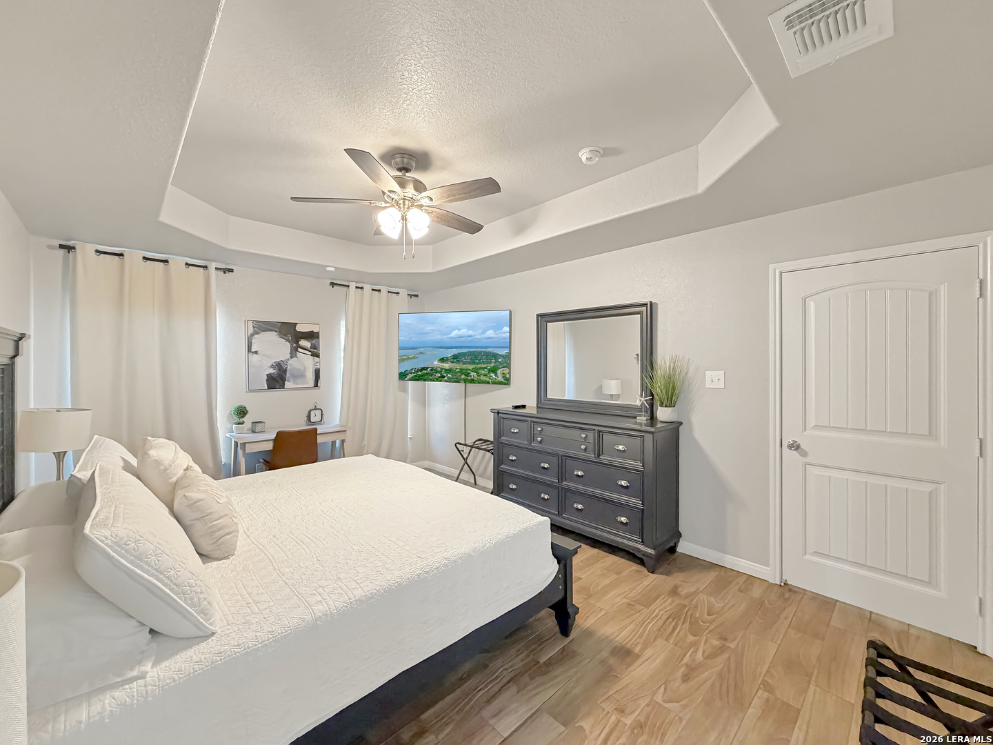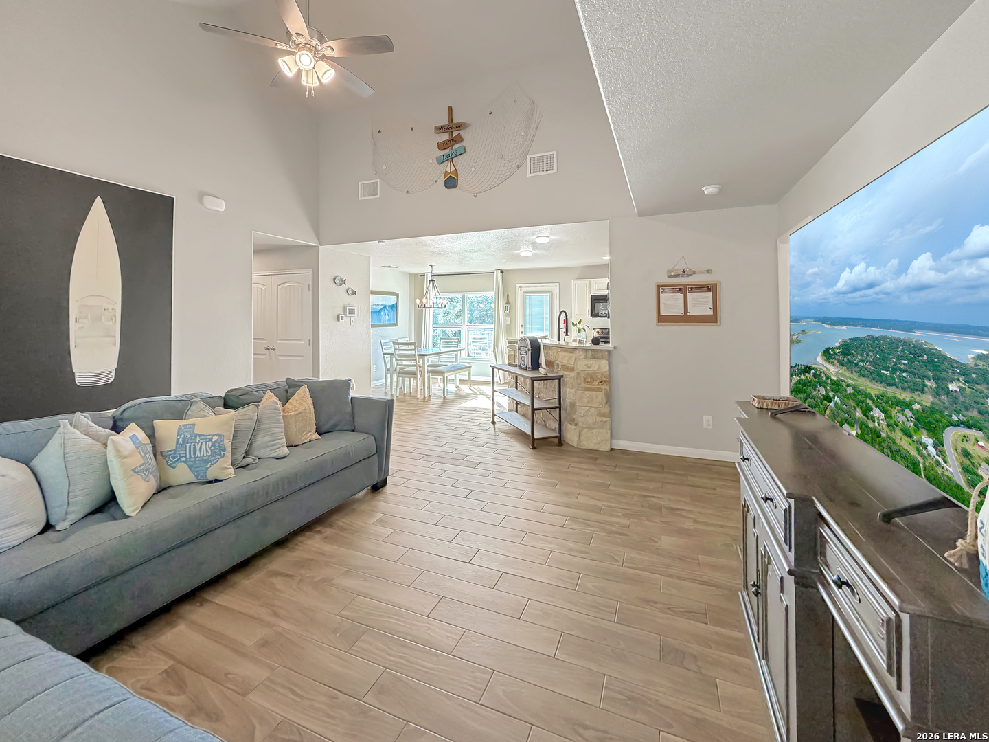 Experience effortless Hill Country living in this like-new 3-bedroom, 2-bath home on the desirable south side of Canyon Lake. Thoughtfully designed with an open-concept floor plan, this home offers seamless flow between the living, dining, and kitchen areas-ideal for both everyday comfort and entertaining. The spacious kitchen serves as the heart of the home, featuring generous counter space and an inviting layout that keeps you connected to family and guests. The private primary suite is strategically positioned on the opposite side of the secondary bedrooms, creating a peaceful retreat. A striking tray ceiling adds architectural character, while the en-suite bath includes dual vanities and a large walk-in closet for exceptional functionality. Step outside to a covered back porch overlooking a beautifully designed Xeriscape yard that provides privacy and low-maintenance living. The property backs to a scenic 34-acre ranch, offering a serene backdrop and added tranquility. Residents enjoy neighborhood amenities including a community pool, playground and clubhouse. Marina is only minutes down the road. Furnishings are available to remain for an additional fee, creating a convenient turnkey opportunity if desired.