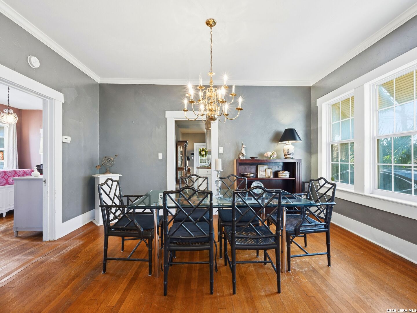 Charming cottage-style home that boasts relaxation with its expansive and inviting front porch. Once inside, you'll see hardwood floors, a central brick fireplace, and eye sights to the open floor plan. The kitchen features gas cooking and adjoins the dining room and a second room for either a 2nd dining space or a living space. An additional dwelling attached to the garage is a flex space for your imagination, workshop, crafting, etc. Central location to shopping, dining, schools, and more!