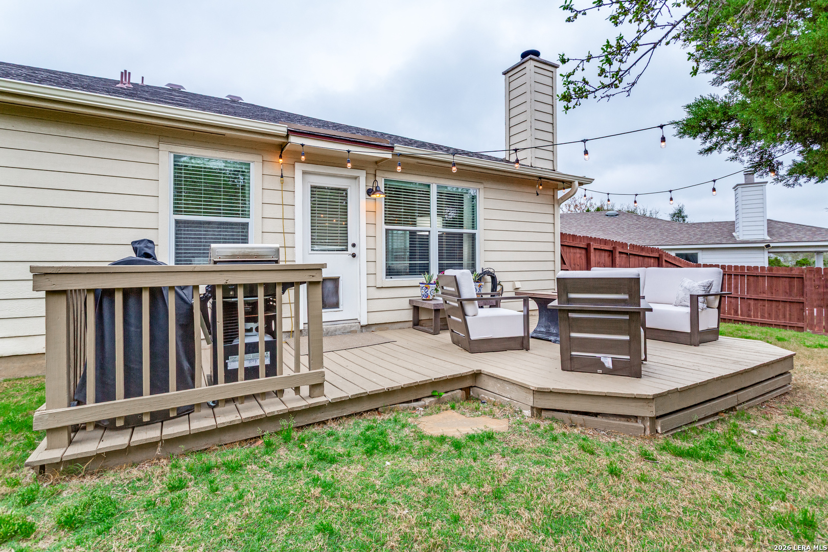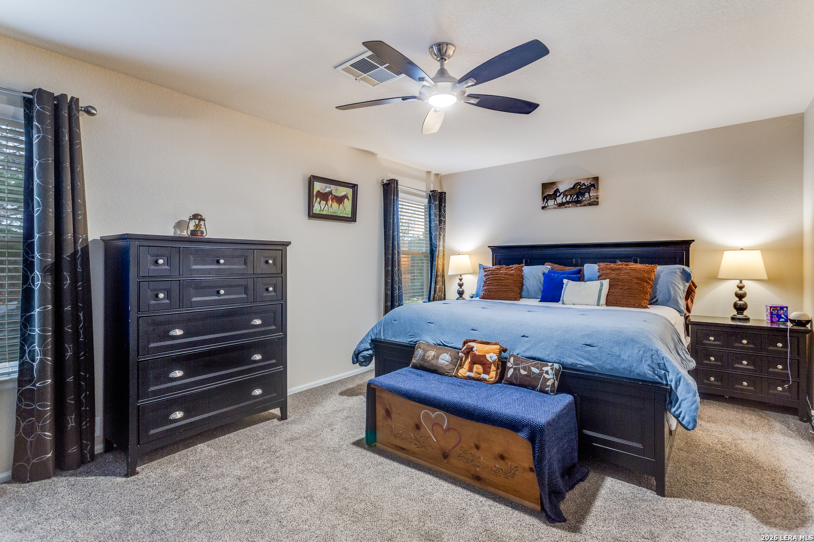 This lovely home is situated on a quiet cul-de-sac backing to a greenbelt. With features such as a spacious family room with a corner fireplace open to the kitchen, abundant mocha custom cabinets, and smooth countertops. The master suite is downstairs with a large bath with his and her vanities and separate garden tub and shower. Upstairs offers a large game room/loft and 3 spacious bedrooms. Additional highlights include an office downstairs, a large wood deck with wrought iron fence to the green belt, insulated garage doors, 2 month old roof, and it is move-in ready!