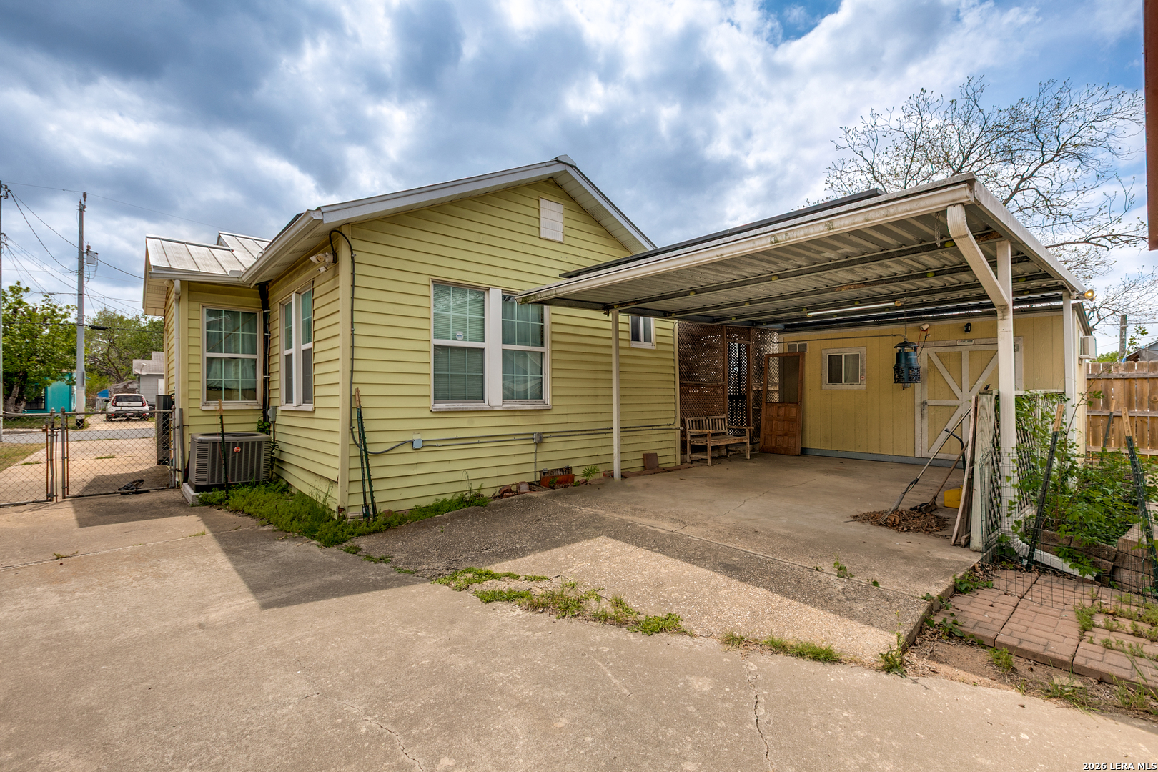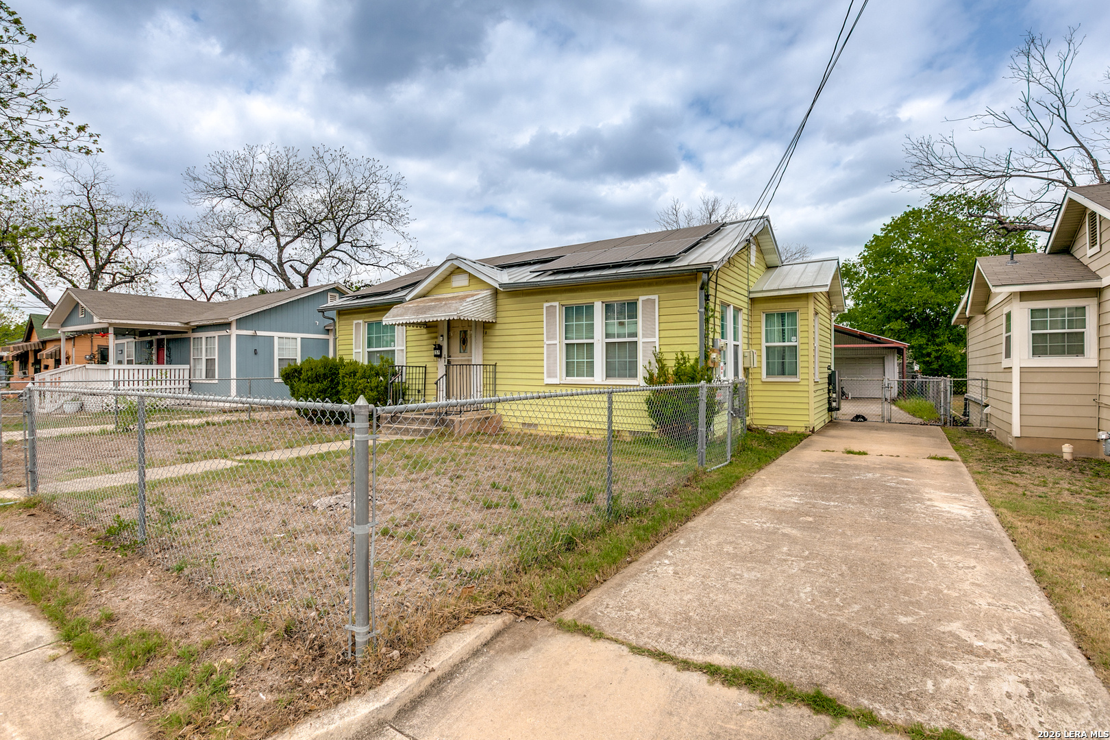 This one-story fixer-upper is full of character and opportunity, perfect for investors adding to their portfolio or buyers ready to make it their own. Featuring 3 bedrooms and 1 bath, this home still showcases its original charm with beautiful hardwood floors and unique details throughout. The layout includes an enclosed sunroom, ideal for additional living space, plus extra storage for added convenience. Situated on a spacious lot, the property offers both a two-car garage and an additional two-car carport-plenty of room for parking and projects. The home also includes solar panels, offering added energy efficiency and long-term savings potential. Located just minutes from downtown San Antonio and less than 10 minutes to the iconic River Walk, this home offers unbeatable convenience with easy access to IH-35, I-37, and Hwy 90. Whether you're looking to renovate, invest, or create your dream home, this property is packed with possibilities. Don't miss your chance to bring this hidden gem back to life! Don't miss out, schedule a showing today!