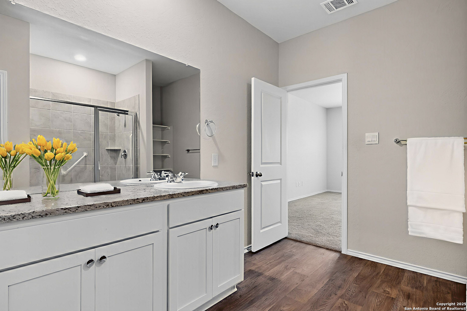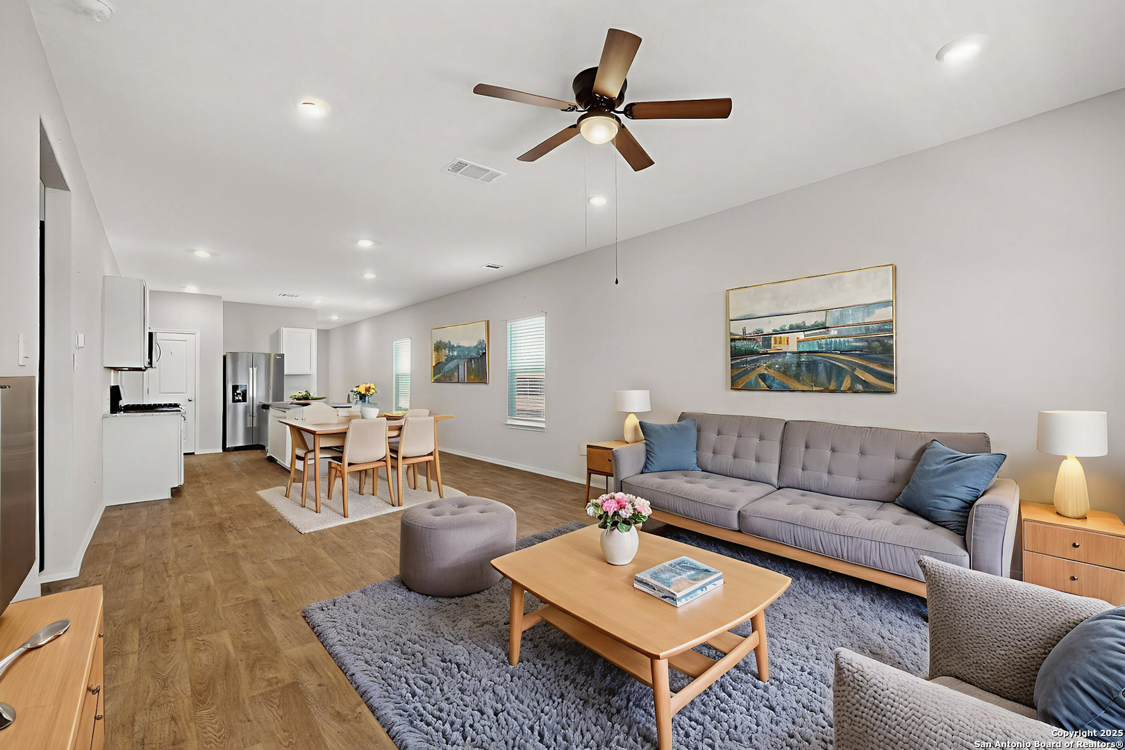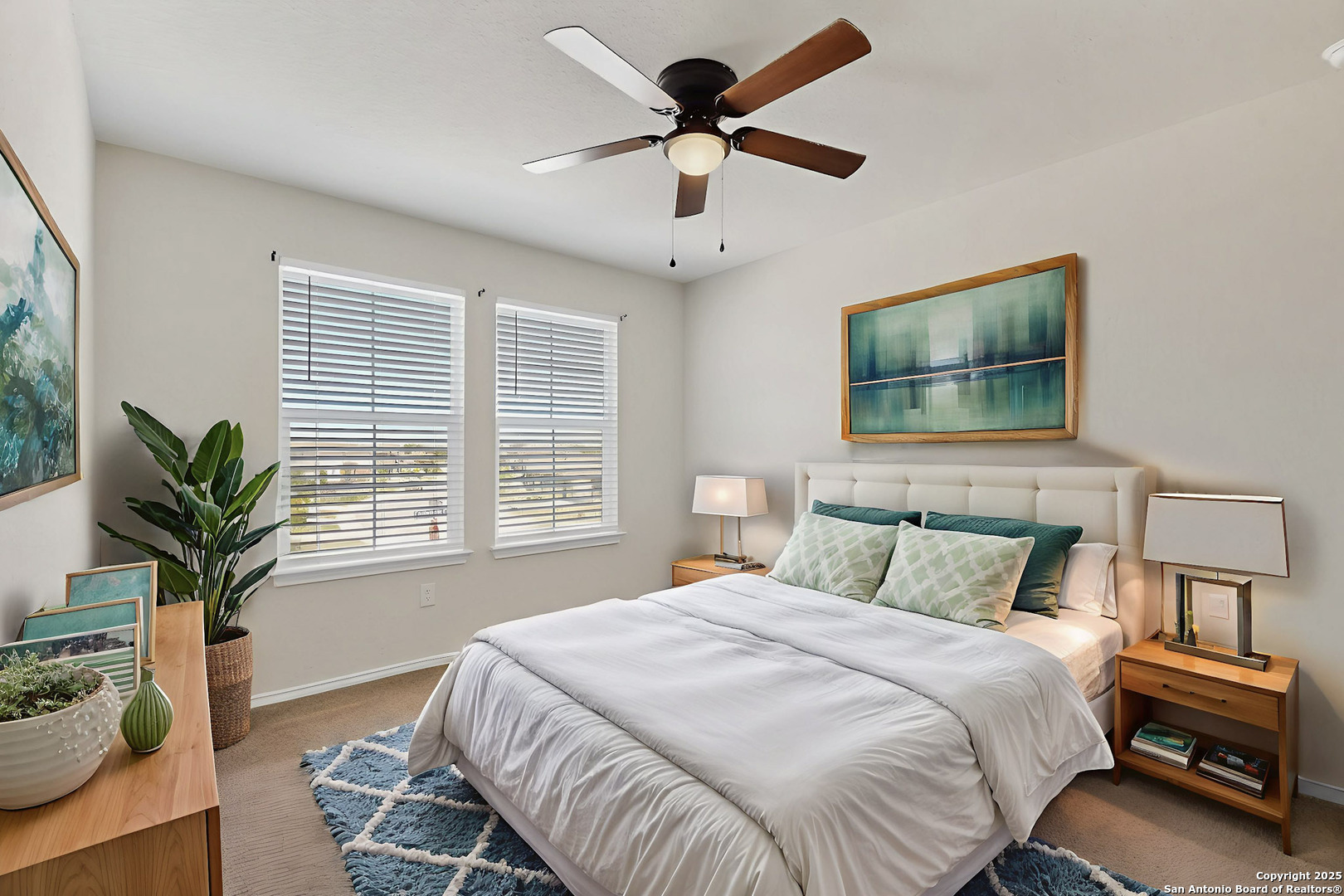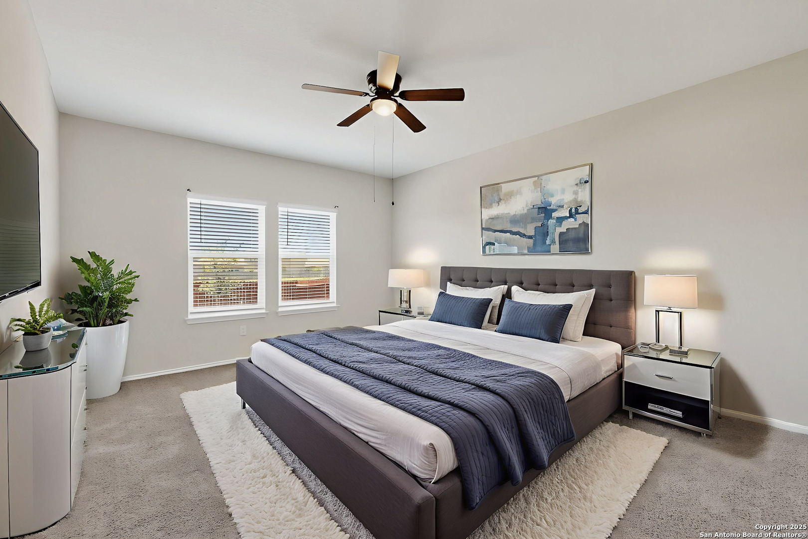 Motivated Seller! Ready To Negotiate Price and Terms! Stunning Two-Story, 2-year old home on a corner Lot, with a 10-year builder's warranty. This open floor plan seamlessly connects the kitchen, dining, and family room. The gourmet kitchen has a large center island, sleek granite countertops, and top-of-the-line stainless steel appliances. The primary suite is located downstairs, offering a peaceful retreat with a large walk-in closet and a luxurious ensuite bathroom featuring a massive walk-in shower, equipped with grab bars. Upstairs, there is a loft, three generously sized bedrooms, and a second full bath. The versatile loft area is perfect for movie nights, game time, or a home office. The backyard is complete with irrigation and a newly painted fence. Additional upgrades throughout the home ensure modern comfort and style. This neighborhood also offers a great outdoor play area, including a cabana and water splash pad. Conveniently situated near major freeways, shopping, dining options and Lackland AFB. Don't miss the opportunity to make this stunning house with all the extras your new home.