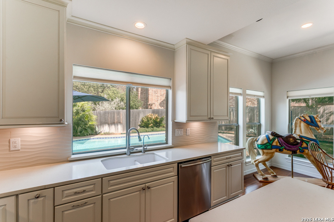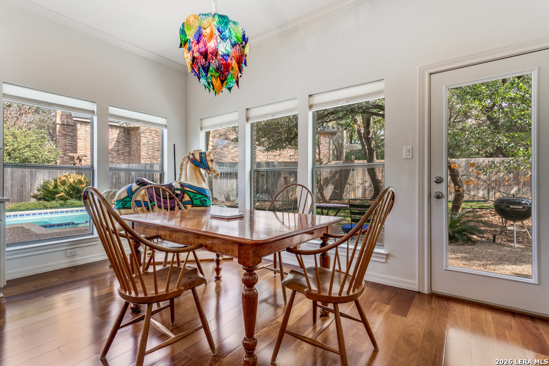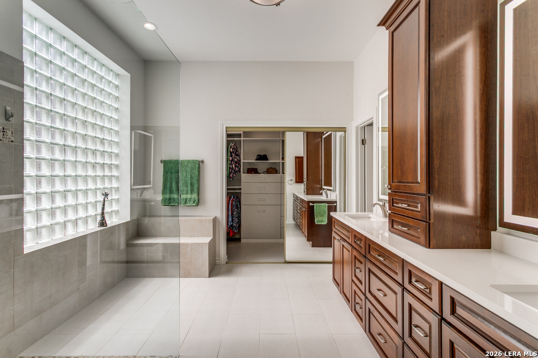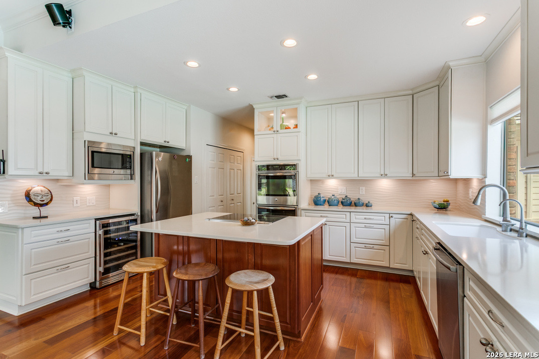 OPEN SATURDAY 2-28 11AM-3PM. Elegant curb appeal with majestic oaks on expansive corner lot, this one has it all. The kitchen is a DREAM with high-end appliances to include double ovens, induction cooktop with retractable down-draft and walls of glass overlooking pool and gorgeous oak-canopied yard. Stunning Cumaru flooring (Brazilian teak) flows seamlessly through the kitchen, breakfast room and formal dining room. The primary suite is down, with a wall of glass for more relaxing views of the gorgeous oaks. Updated primary bath features a luxurious walk-in shower, his and her vanities and a walk-in closet refurbished by California Closets. A private study with French doors is just off the show-stopping foyer with marble and soaring glass, bringing in the natural beauty of the towering oaks. Upstairs you will find an exceptional layout with four spacious secondary bedrooms, perfectly separated from each other to offer privacy. Two large bathrooms, each with double vanities, service the secondary bedrooms. The large game room completes the second floor and the open space offers wonderful flexibility. A former parade home, the architect took full advantage of the unique corner lot to create a curved driveway approaching a rear-entry garage. A glassed breezeway connects the garage to the home and features a second half bath and expansive counter with sink and beverage fridge. This makes a great cabana off the pool, a hobby room, or whatever you want it to be! The sparkling pool. The majestic oaks. The dream kitchen. Room for the family to really spread out. Luxurious updates and immaculate condition, to include newer roof and zoned HVAC systems. EMERGENCY BACK-UP WHOLE HOUSE GENERATOR PLUMBED TO GAS!!! A rare find inside Loop 1604.