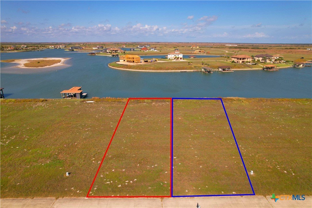 2 - WATERFRONT LOTS NEXT TO EACH OTHER, ON CHATEAU WAY! $75K EA! Red outline is Lot 158. Purple outline is Lot 159. Pool, boat slips by pool for easy family pick up and drop off. Fishing piers on ICW! Faux beach adjacent to pool! Splash pad next to pool! BB ball court! Play ground! BBQ pits by pool area. Bathrooms and showers by pool and common rental club house! Pocket parks sprinkled around the neighborhood allows off water lots to have access to water for fishing and enjoying water views across canals! All you need in POC for a relaxing weekend, or retirement location! 2100 SF on these waterfront lots. Check builder for price per sf construction and boat house building costs. POC water and sewer lines are in place. Just pay hook up fee. Electricity is underground from Victoria Electric Co-Op. Invest in POC! Buy 1, or 2 of these Waterfront lots!