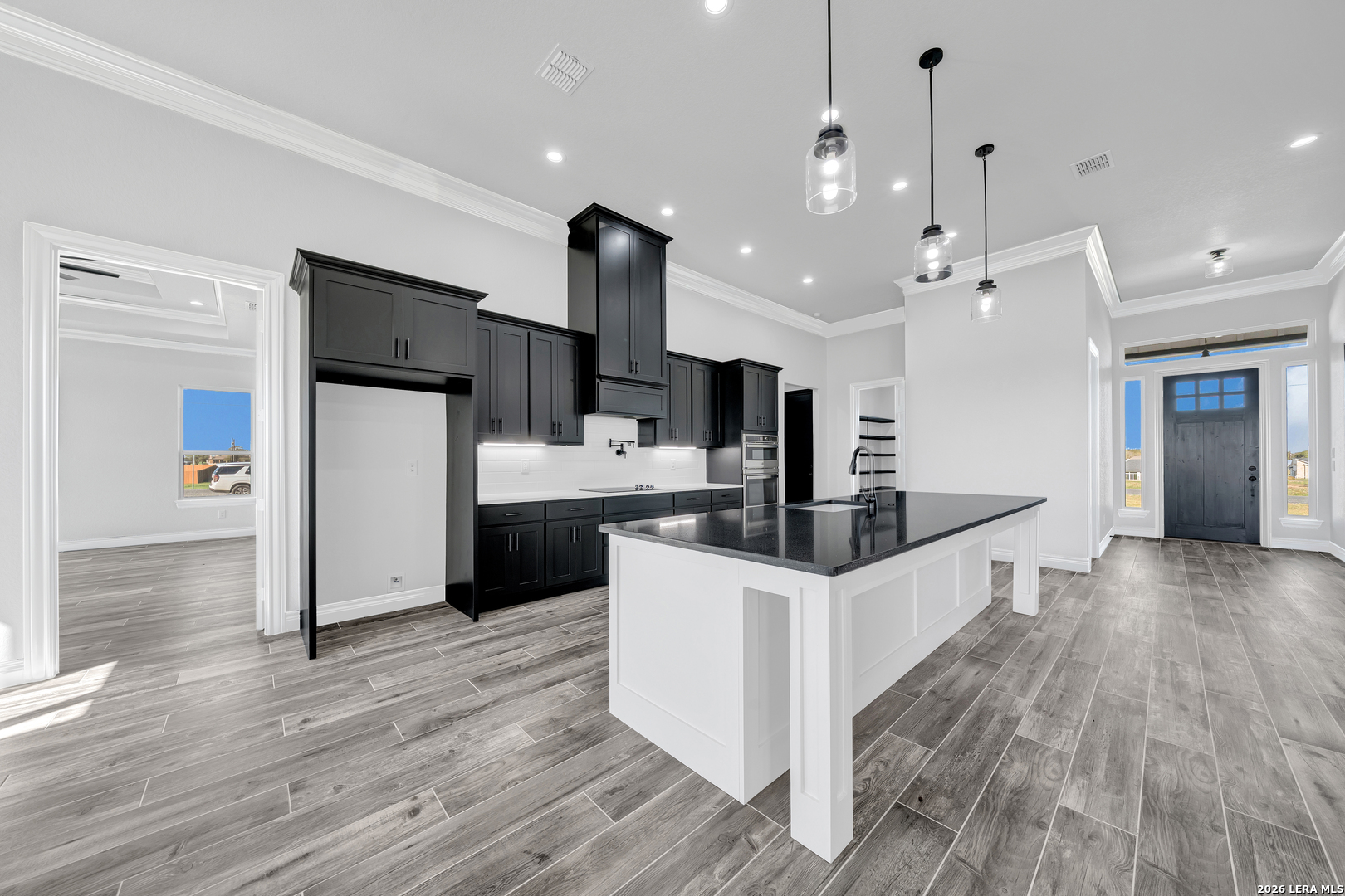 Welcome to this thoughtfully designed home nestled on a serene 1-acre lot in La Vernia. This 4-bedroom, 3.5-bath residence offers an open-concept layout filled with natural light and modern finishes throughout. The floor plan includes a private office, a guest suite with its own full bath, and a Jack-and-Jill bathroom connecting two secondary bedrooms-perfect for family living or hosting overnight guests. The primary suite is a standout feature, offering an oversized walk-in shower, spacious bedroom, and an impressive walk-in closet with direct access to the laundry room for added convenience. At the center of the home, the gourmet kitchen shines with a large island, custom cabinetry, pot filler, and a built-in wine and beverage fridge. The living room provides a cozy focal point with its wood-burning fireplace, creating a warm and welcoming gathering space. Step outside to enjoy the expansive back porch overlooking peaceful country views-an ideal spot for morning coffee or evening relaxation. With its thoughtful layout and high-quality finishes, this home delivers comfort, style, and the quiet charm of Texas country living. Come experience it for yourself!