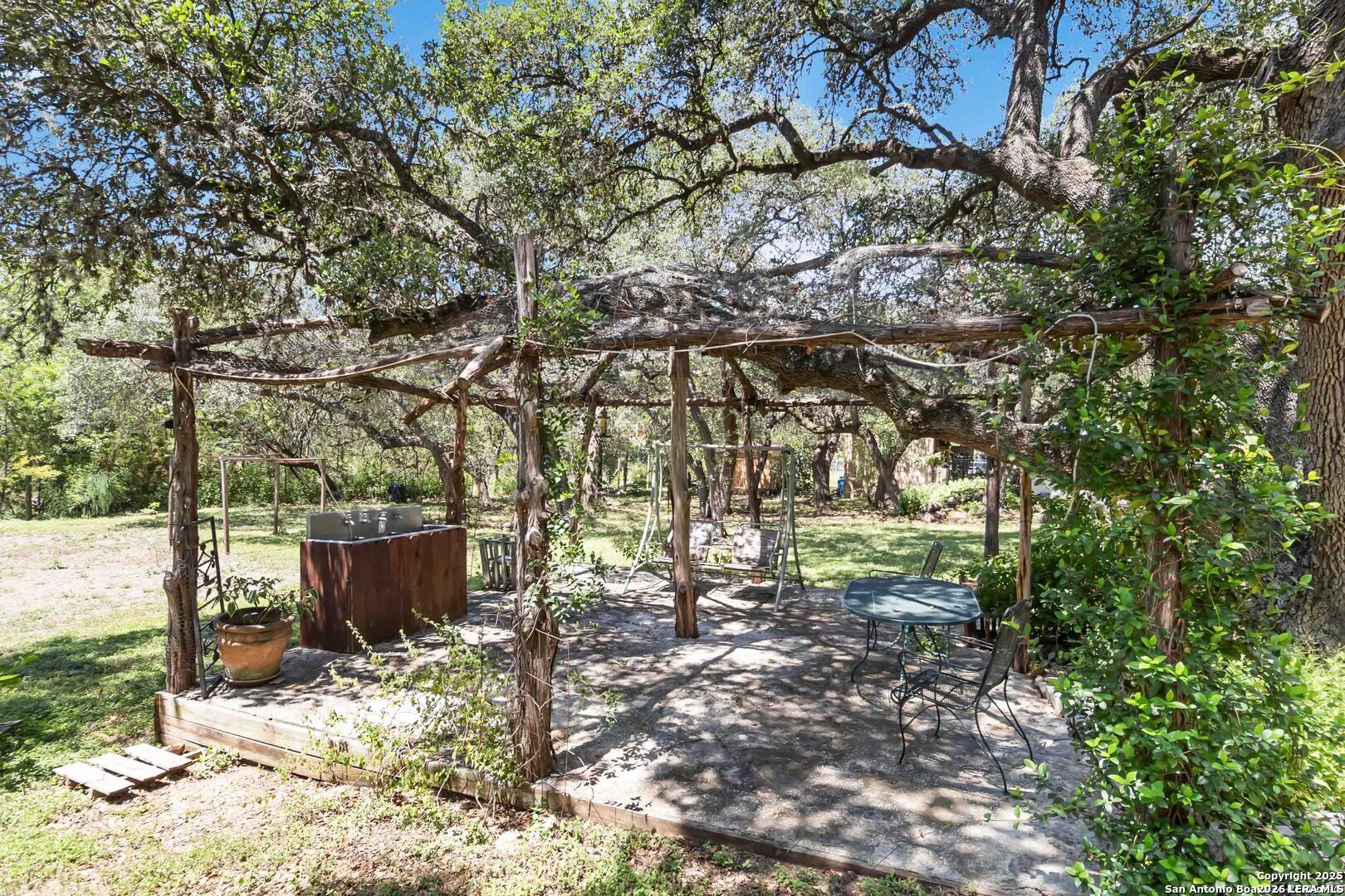 Charming Canyon Lake Home Near the Water! This beautifully maintained 3-bedroom, 1.5-bath home offers 1,344 sq. ft. of spacious living with two living areas-just 5 minutes from Comal Park and the boat ramp! Nestled on nearly an acre (0.96 acres), the property is ideally located between San Antonio and Austin, only 15 miles to New Braunfels and close to all the Hill Country's best attractions. Enjoy evenings by the fireplace, a gas stove and water heater, and peace of mind with two new HVAC units and a new water heater. The outdoor space is equally inviting, with a covered front porch, tranquil backyard sitting area, and fully fenced yard featuring lemon, peach, and orange trees. A gazebo with sink and countertop makes entertaining a breeze. Additional highlights include under-house storage and a 2-car garage with laundry area. Don't miss this rare find in Canyon Lake Forest-schedule your showing today!