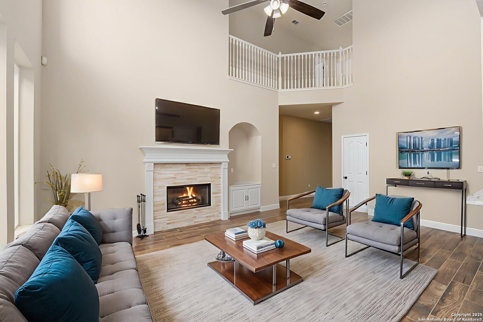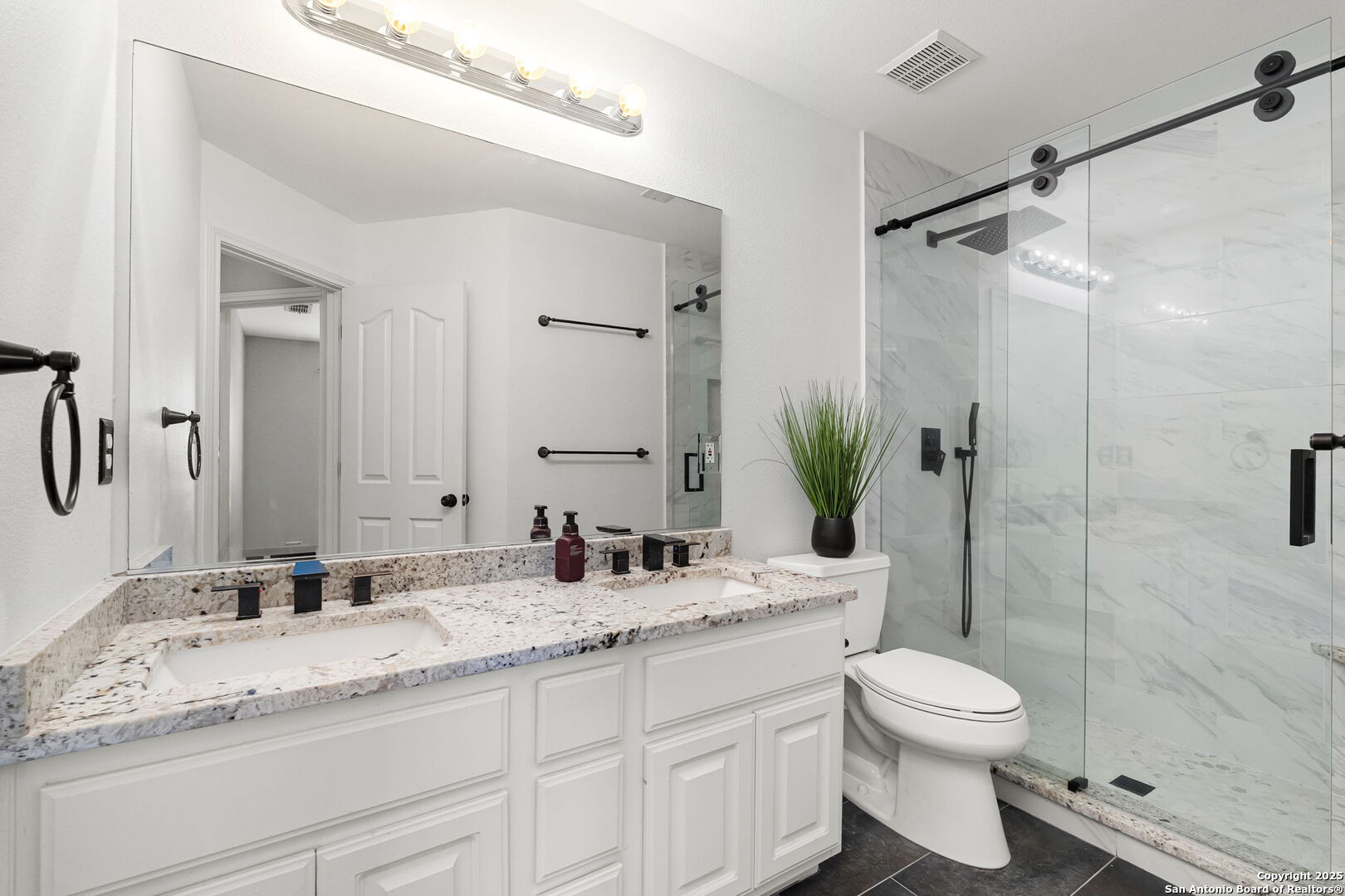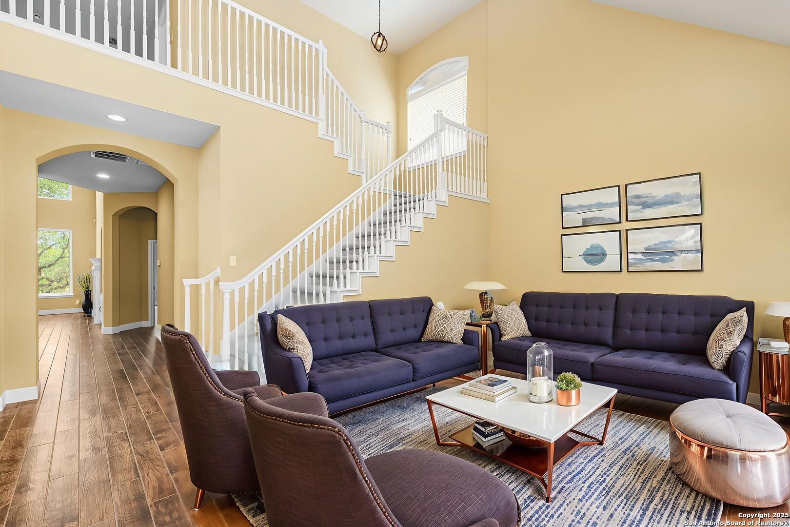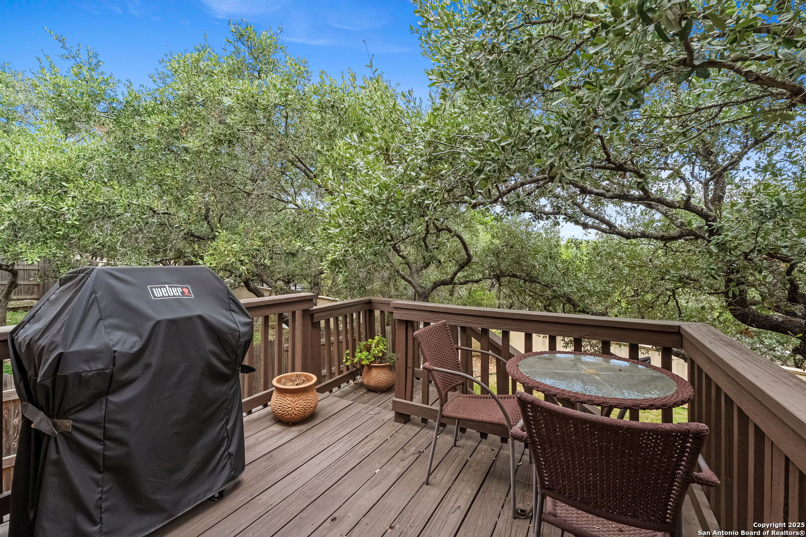 Luxury awaits within this newly updated, stunning 4-bedroom, 2.5-bathroom home! Situated in the highly sought-after North Central San Antonio area, this home features a spacious floor plan, high ceilings, granite countertops in the kitchen and bathrooms, newly tiled showers and all the finest finishes. The living space is illuminated by large picture windows that allow the natural light to flow in, as well as a beautiful fireplace. Fit for any home chef, the kitchen offers ample cabinetry, an exquisite gas stove top inlay, and a coffee bar area. The first level is ceramic tile and the second level has a beautiful engineered hardwood floor with ample space for relaxation, the primary bedroom is the ideal space to unwind, along with the spa-like en suite bathroom with a soaking garden tub. Three additional bedrooms complete this home and allow new owners to use the space as desired. Ideal for hosting outdoor events, the backyard is home to mature shaded trees and ample grassy space. Many upgrades were completed to this home, including new ac units, a water heater, a water softener, new appliances, bathrooms updated, and the home and deck repainted. Come and see all this fantastic home has to offer, and make this dream home yours today!
