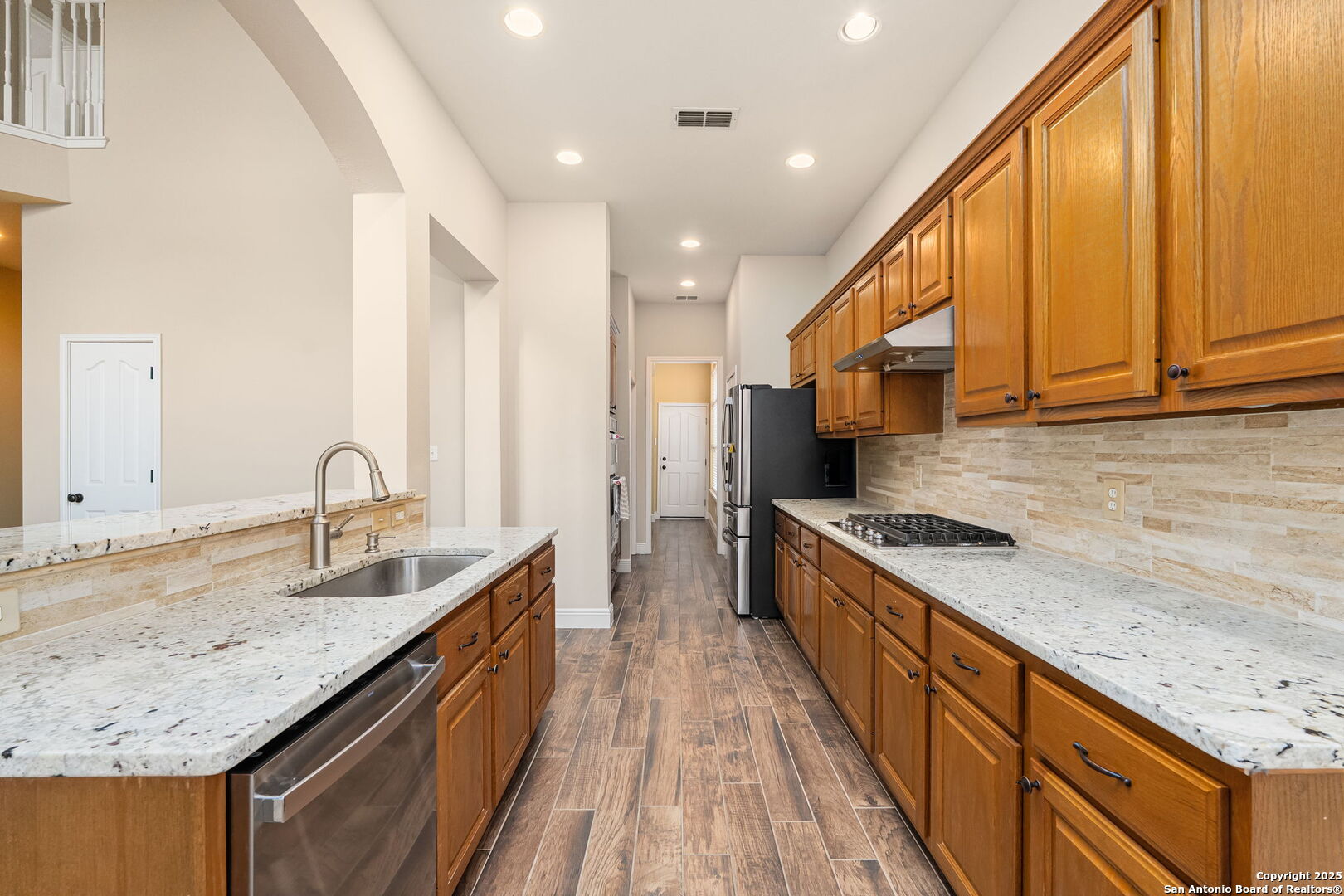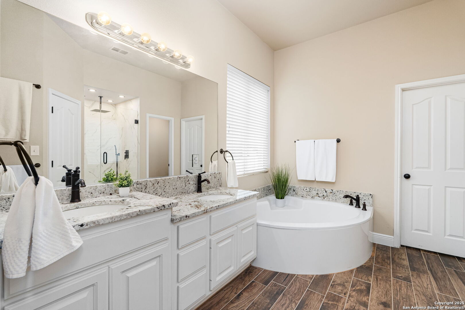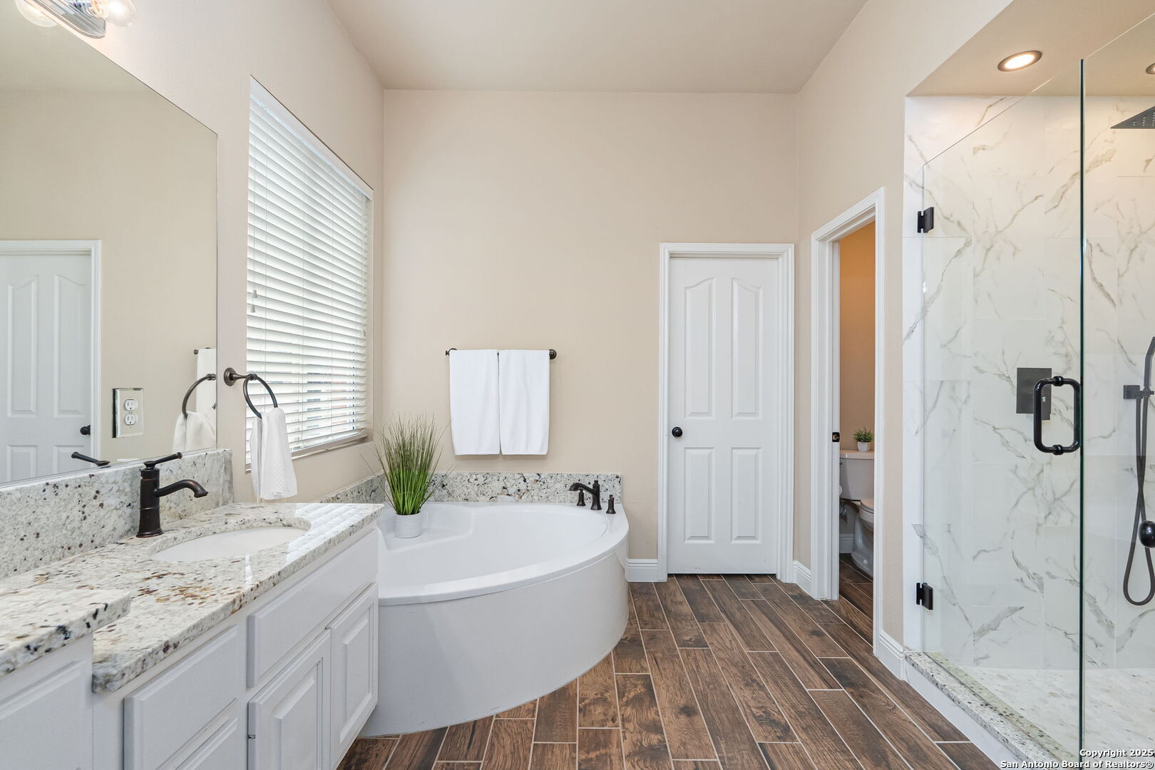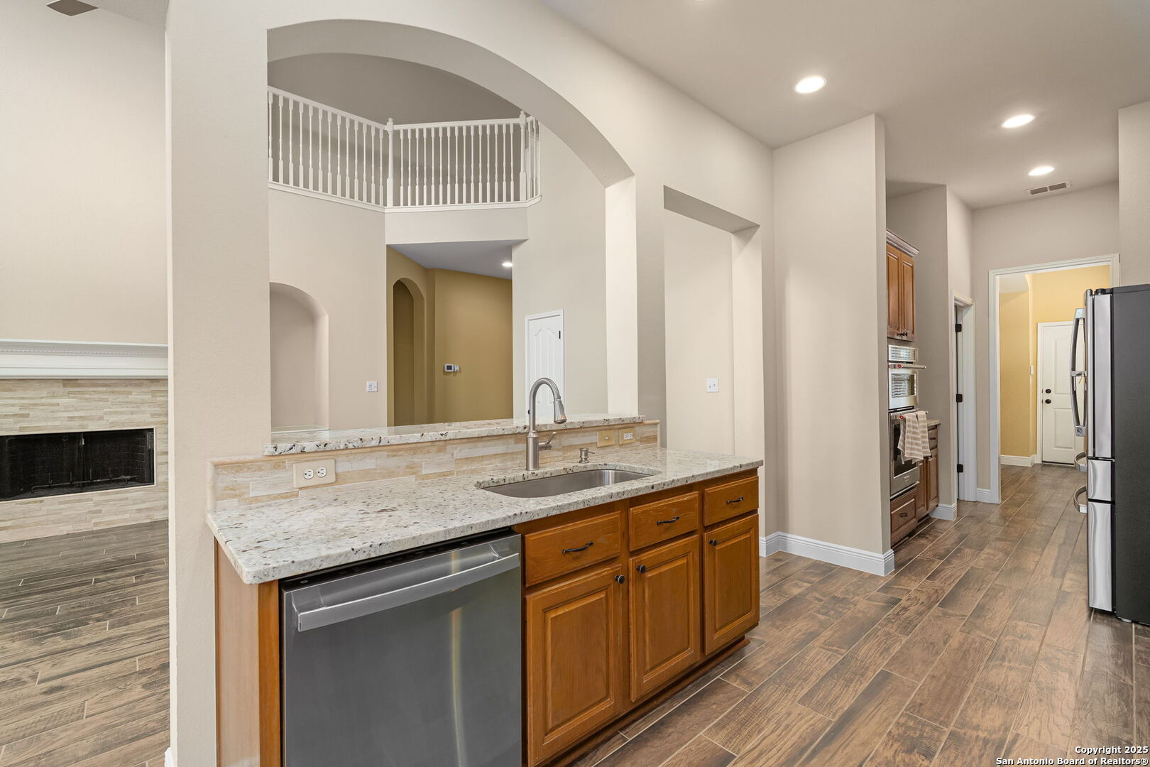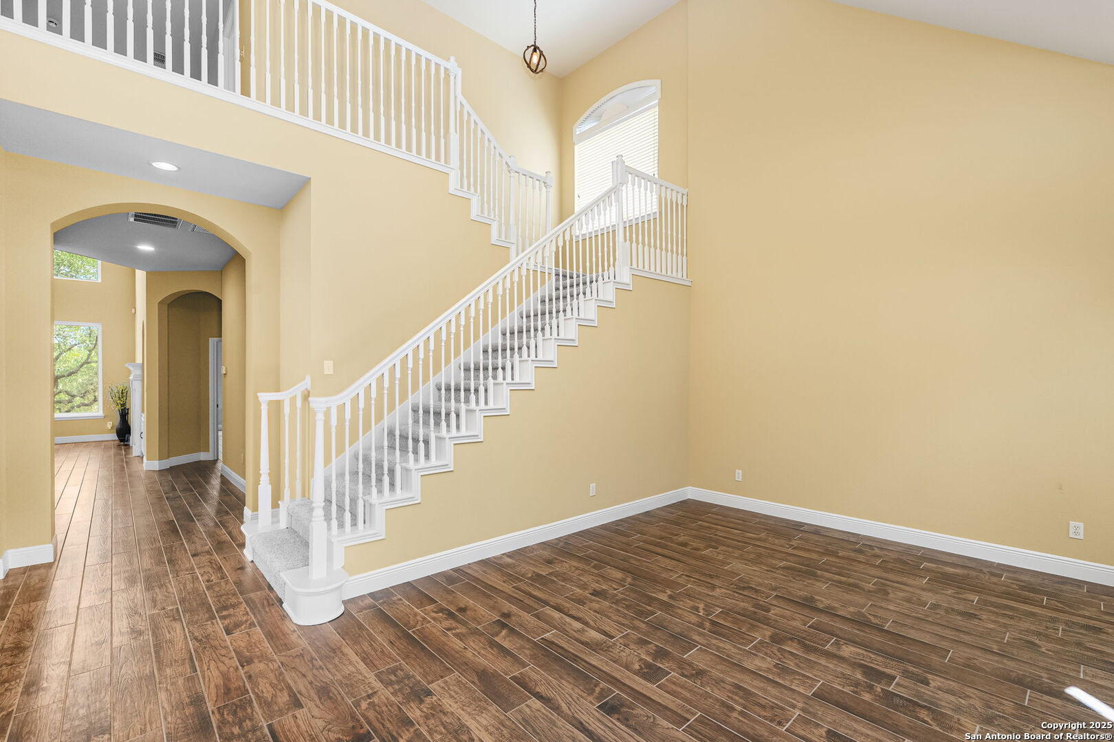 Luxury awaits within this newly updated, stunning 4-bedroom, 2.5-bathroom home! Situated in the highly sought-after North Central San Antonio area, this home features a spacious floor plan, high ceilings, granite countertops in the kitchen and bathrooms, newly tiled showers and all the finest finishes. The living space is illuminated by large picture windows that allow the natural light to flow in, as well as a beautiful fireplace. Fit for any home chef, the kitchen offers ample cabinetry, an exquisite gas stove top inlay, and a coffee bar area. The first level is ceramic tile and the second level has a beautiful engineered hardwood floor with ample space for relaxation, the primary bedroom is the ideal space to unwind, along with the spa-like en suite bathroom with a soaking garden tub. Three additional bedrooms complete this home and allow new owners to use the space as desired. Ideal for hosting outdoor events, the backyard is home to mature shaded trees and ample grassy space. Many upgrades were completed to this home, including new ac units, a water heater, a water softener, new appliances, bathrooms updated, and the home and deck repainted. Come and see all this fantastic home has to offer, and make this dream home yours today!